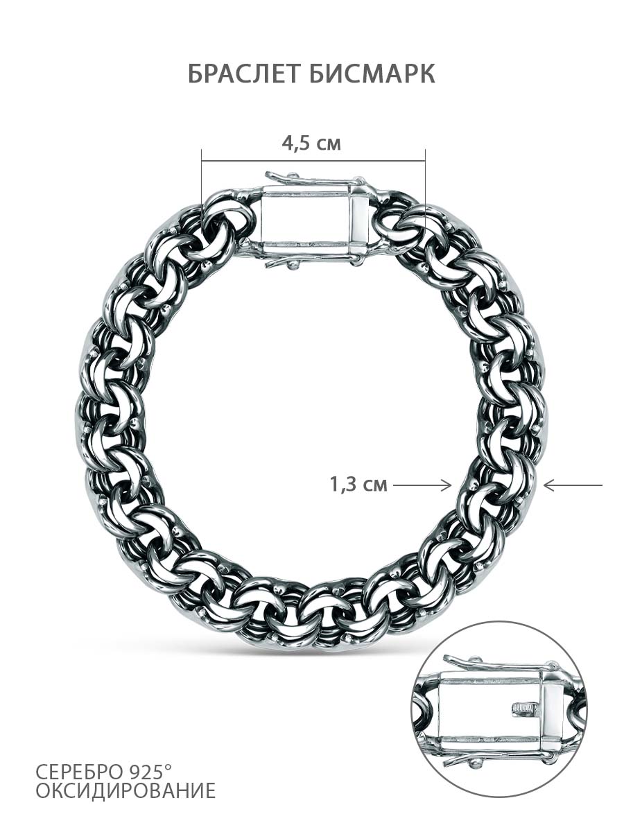 Браслет из чернёного серебра  - Бисмарк, 22 см