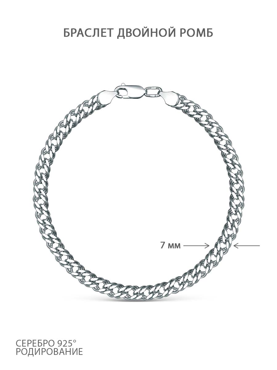 Браслет из серебра родированный - Двойной Ромб, 21 см 81120050121р дв.Ромб