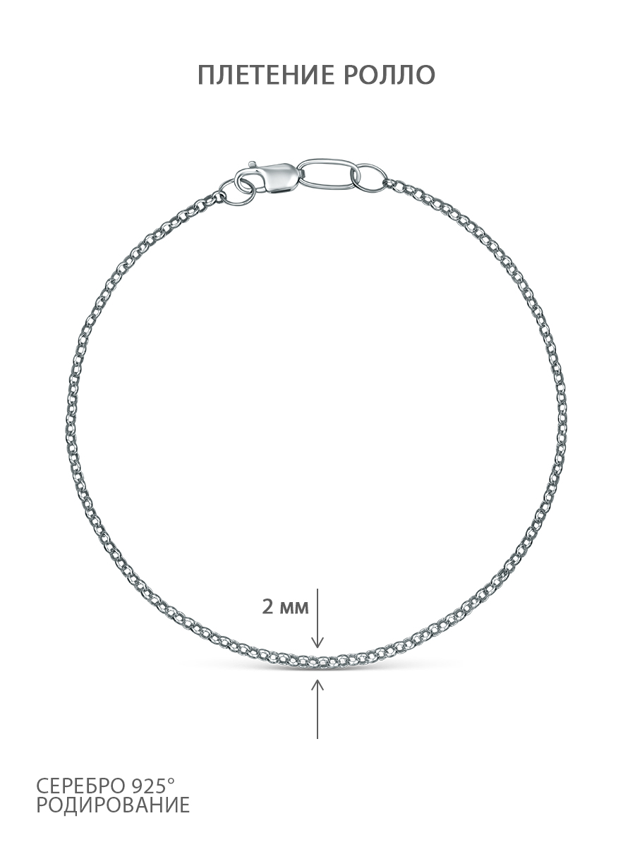 Браслет из серебра родированный - Ролло, 18 см 81060340018ролло