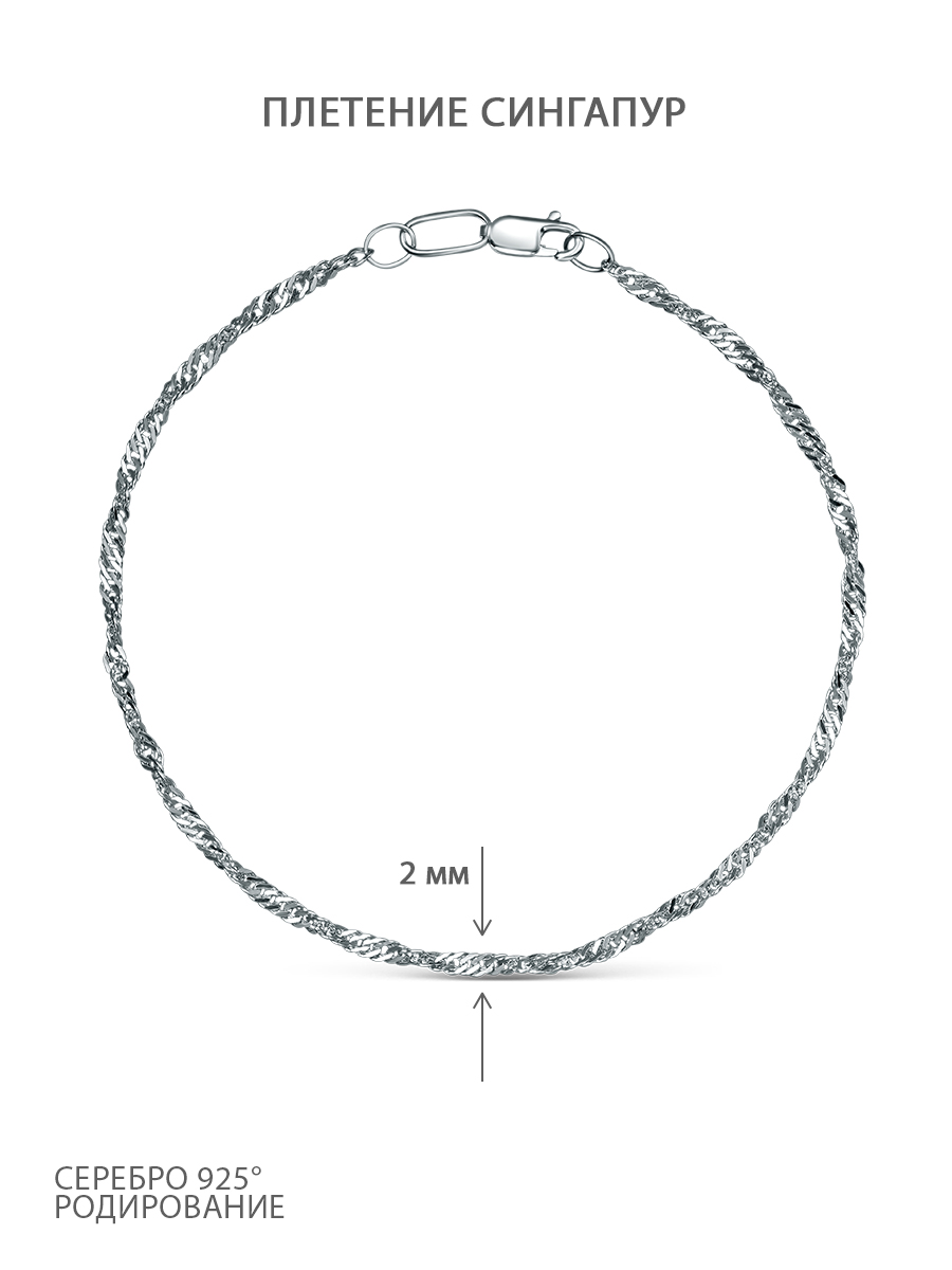 Браслет из серебра родированный - Сингапур, 18 см 81035022718