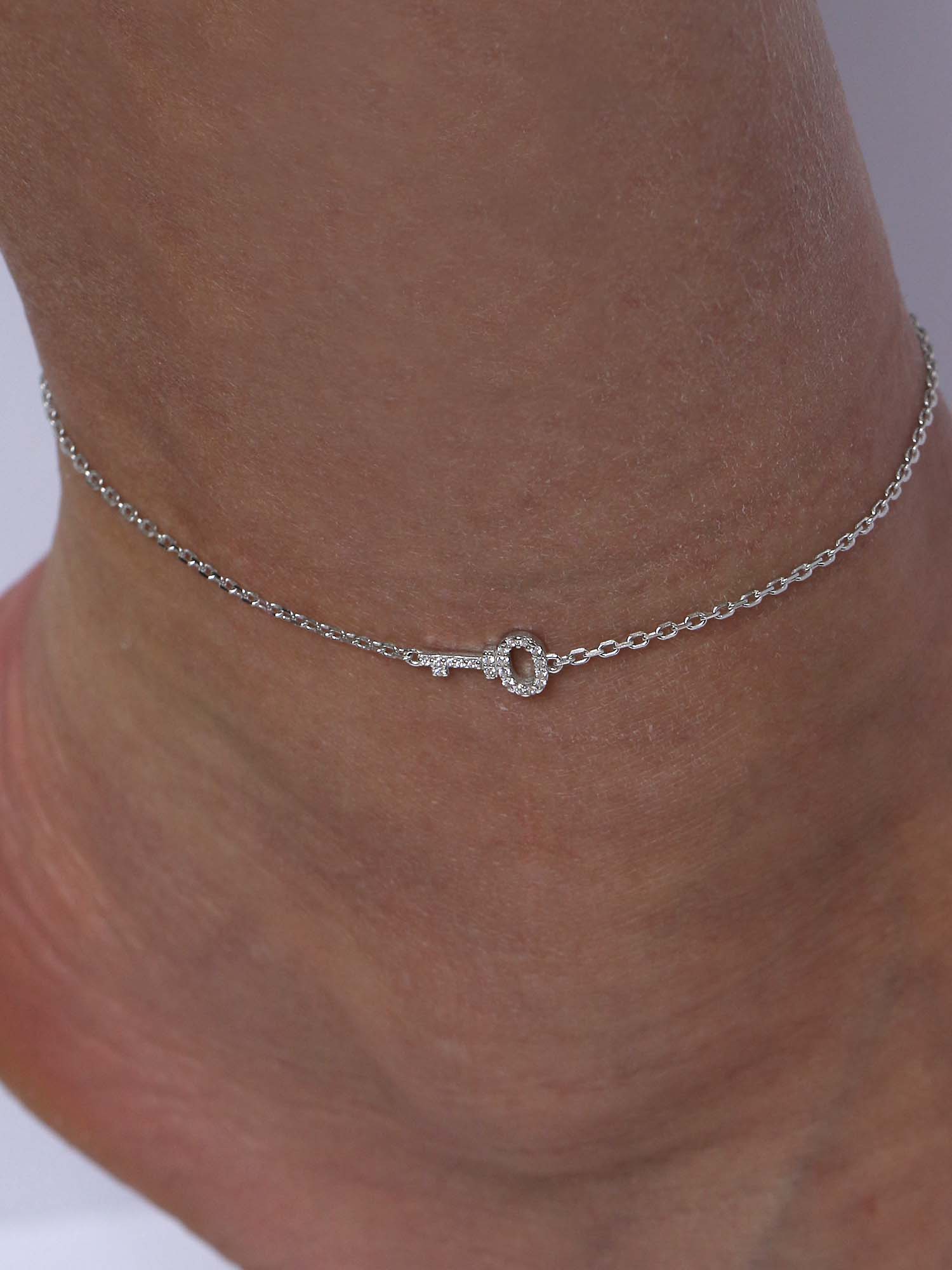 Браслет из серебра с фианитами родированный - Ключик