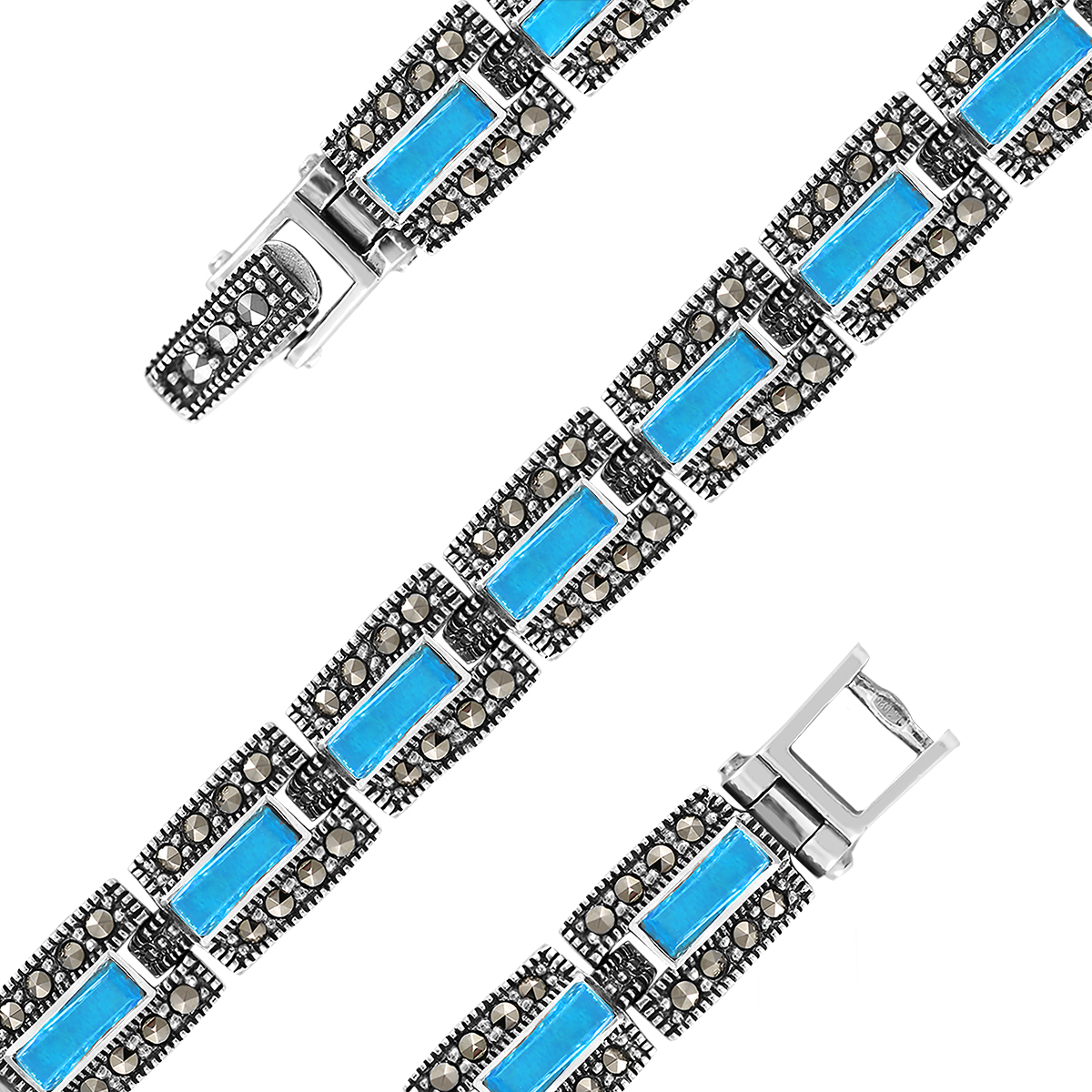 Браслет из серебра с синт.бирюзой и марказитами родированный