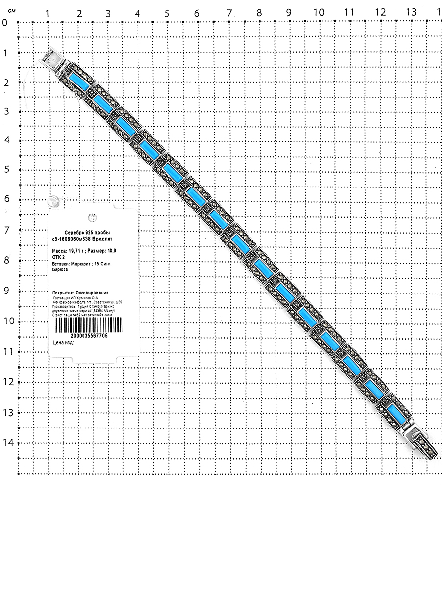 Браслет из серебра с синт.бирюзой и марказитами родированный сб-1606060м638