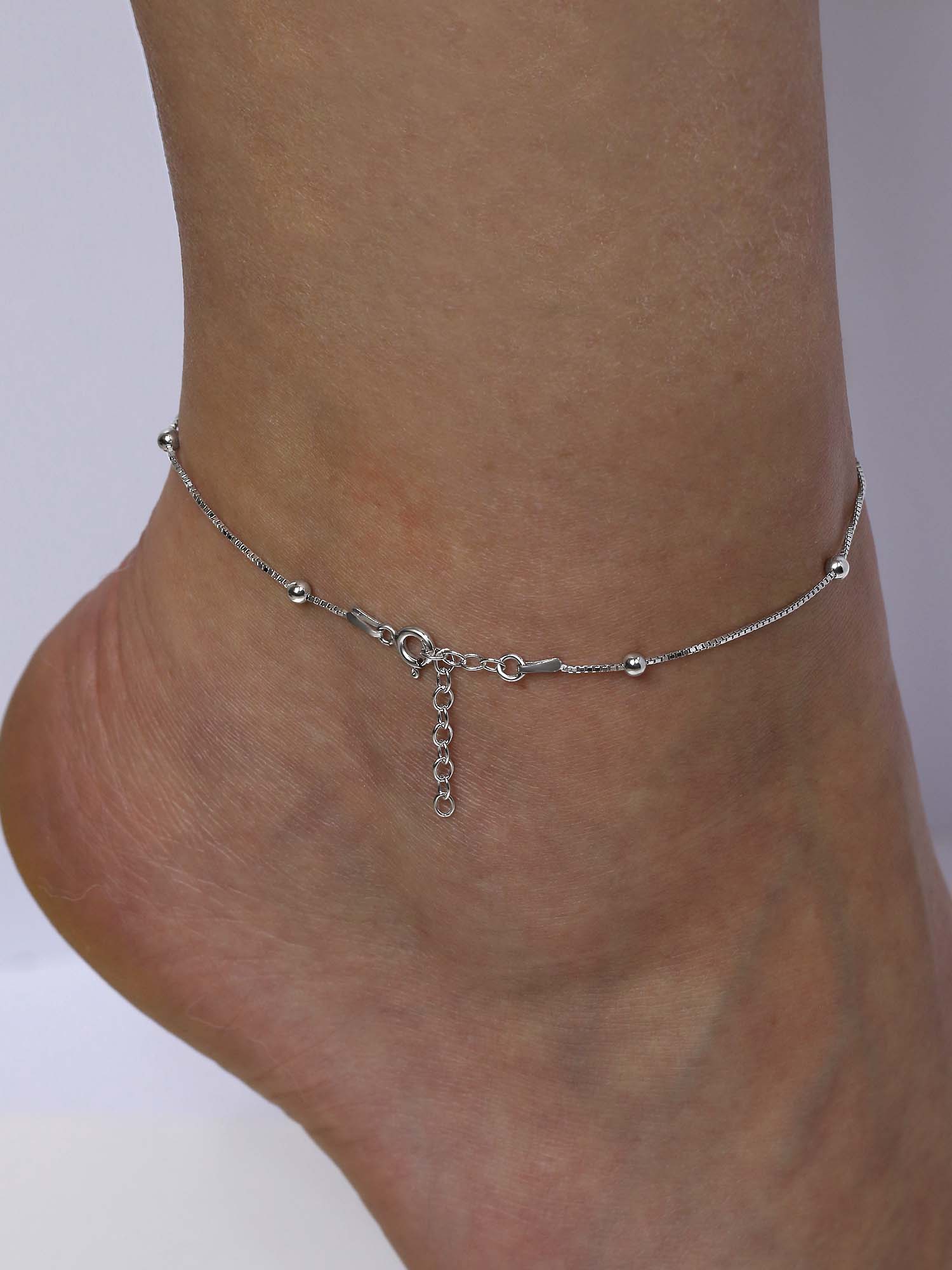 Браслет на ногу из серебра родированный - 23 см