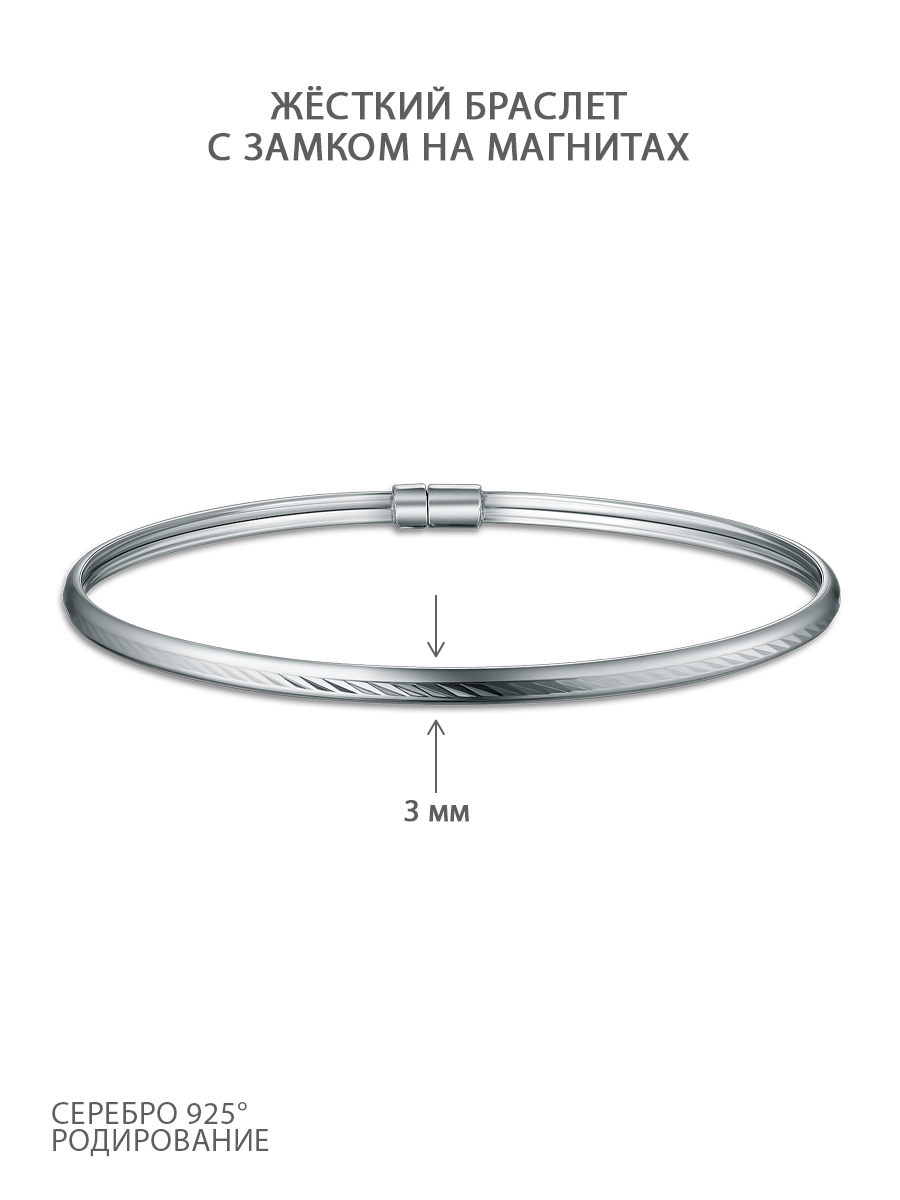 Браслет жесткий из серебра с замком на магнитах родированный 20-14-1011