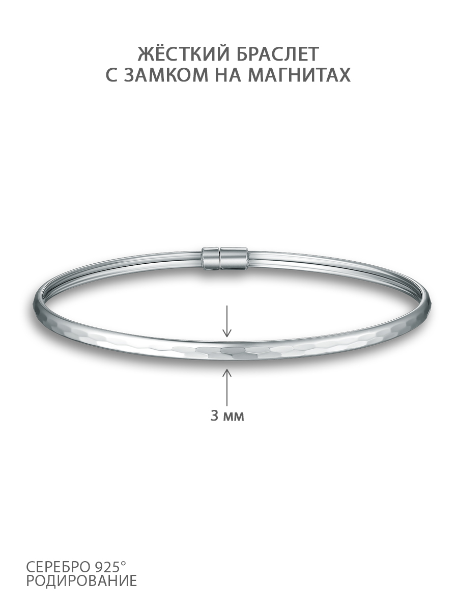 Браслет жесткий из серебра с замком на магнитах родированный 20-14-1010