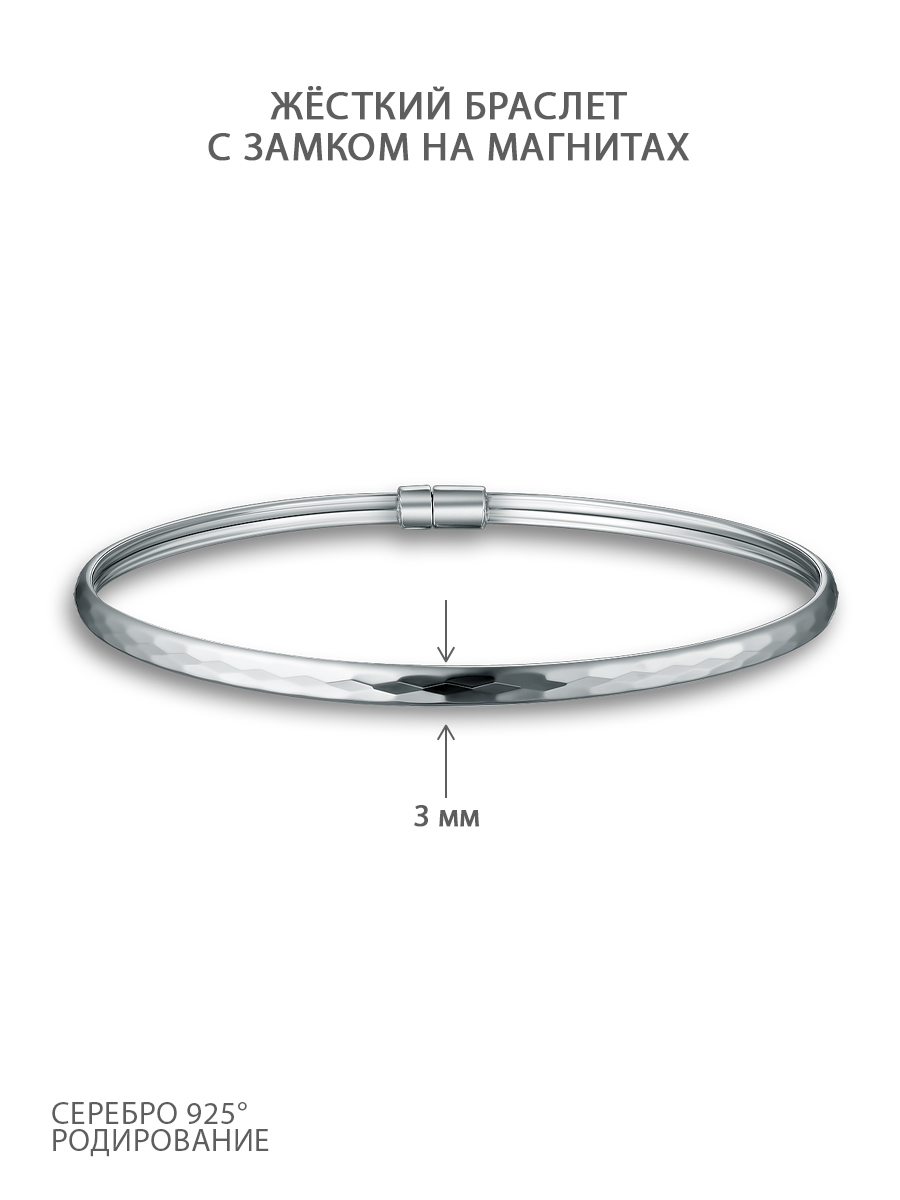 Браслет жесткий из серебра с замком на магнитах родированный 20-14-1013