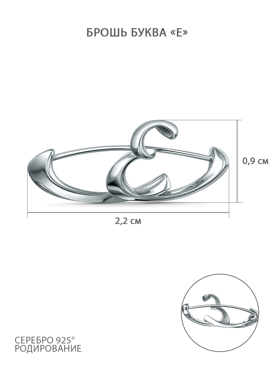 Брошь из серебра родированная - Буква "Е" с5-484-3р