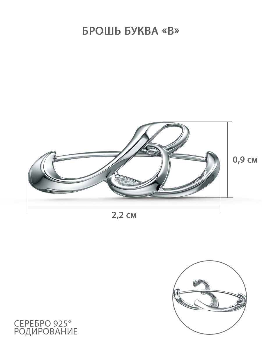 Брошь из серебра родированная - Буква "В" с5-484-2р
