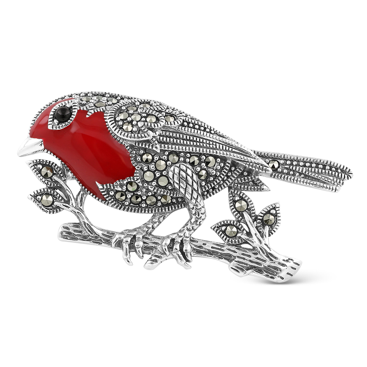 Брошь-кулон из чернёного серебра с нат.ониксом, эмалью и марказитами