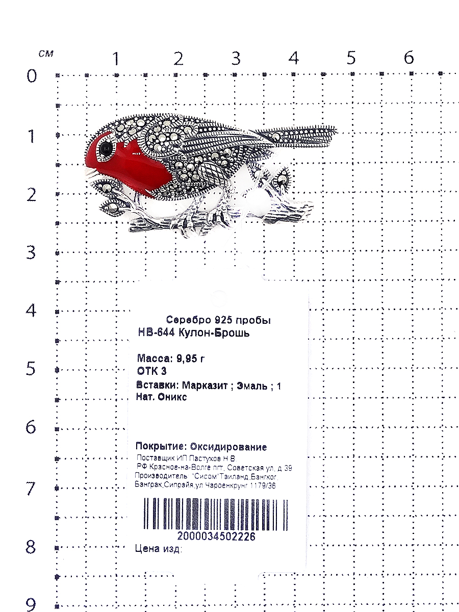 Брошь-кулон из чернёного серебра с нат.ониксом, эмалью и марказитами HB-644