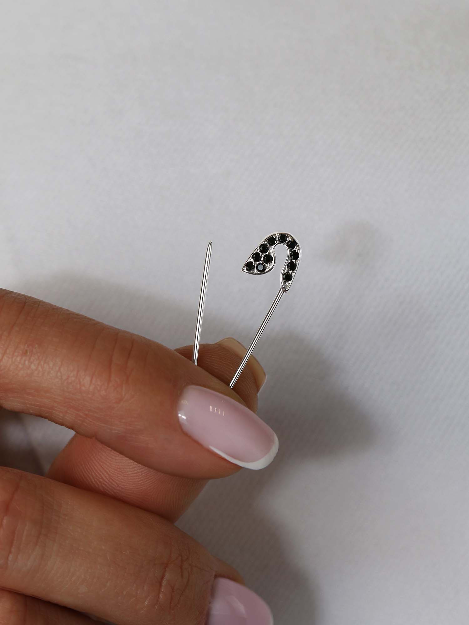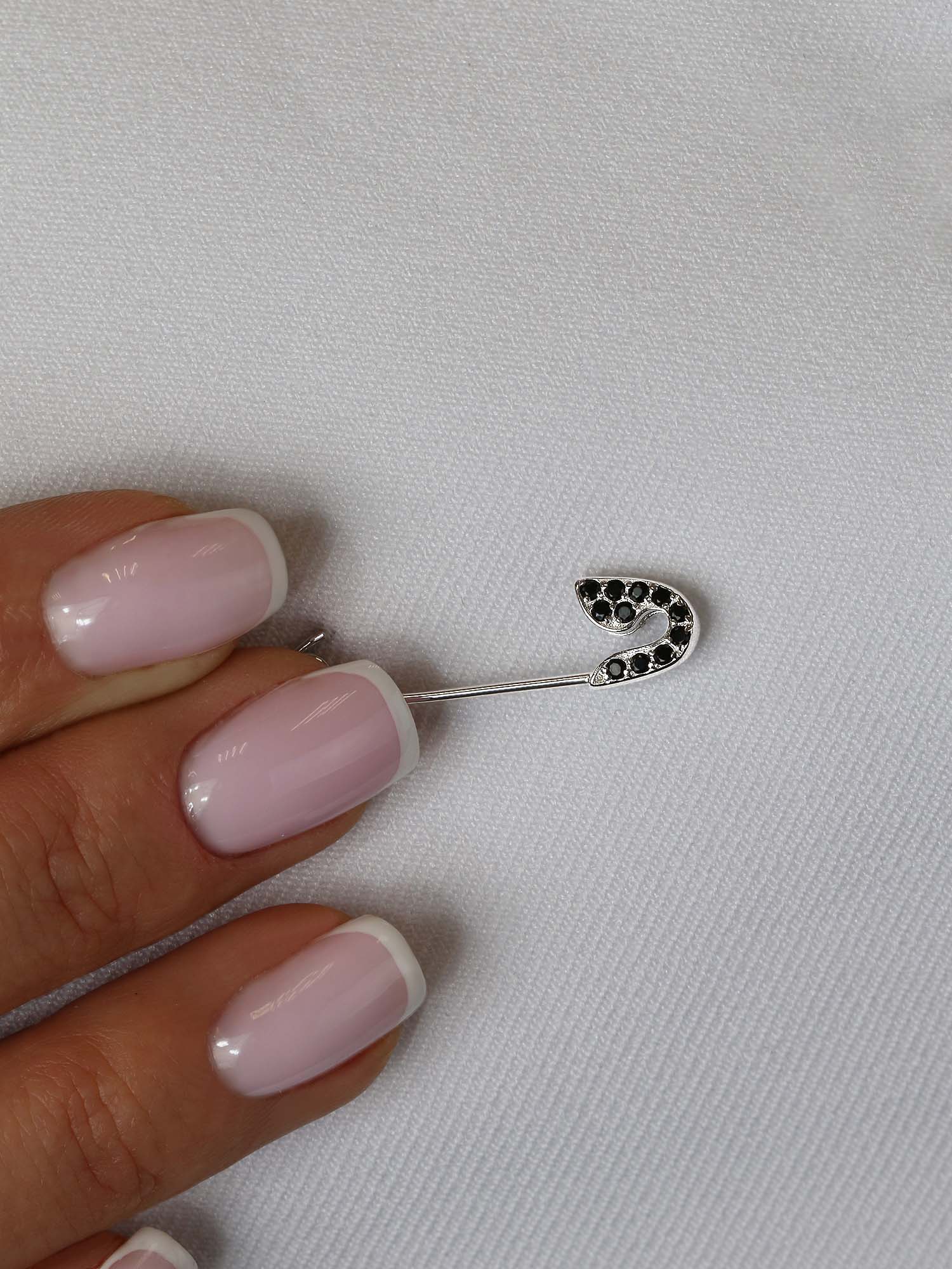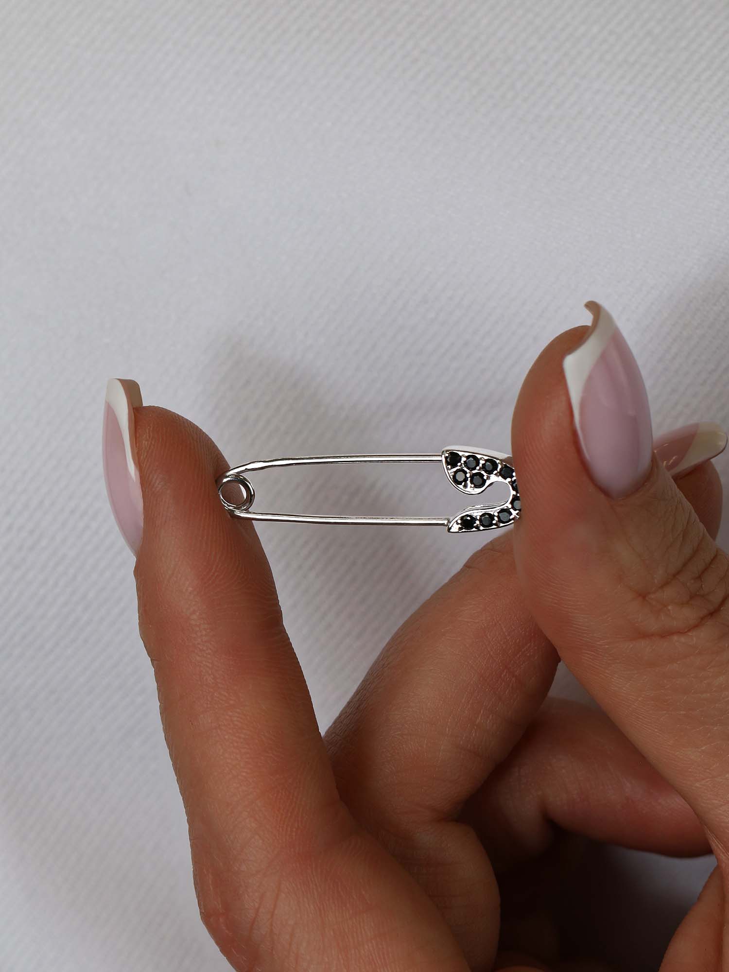 Булавка из серебра с чёрной шпинелью родированная