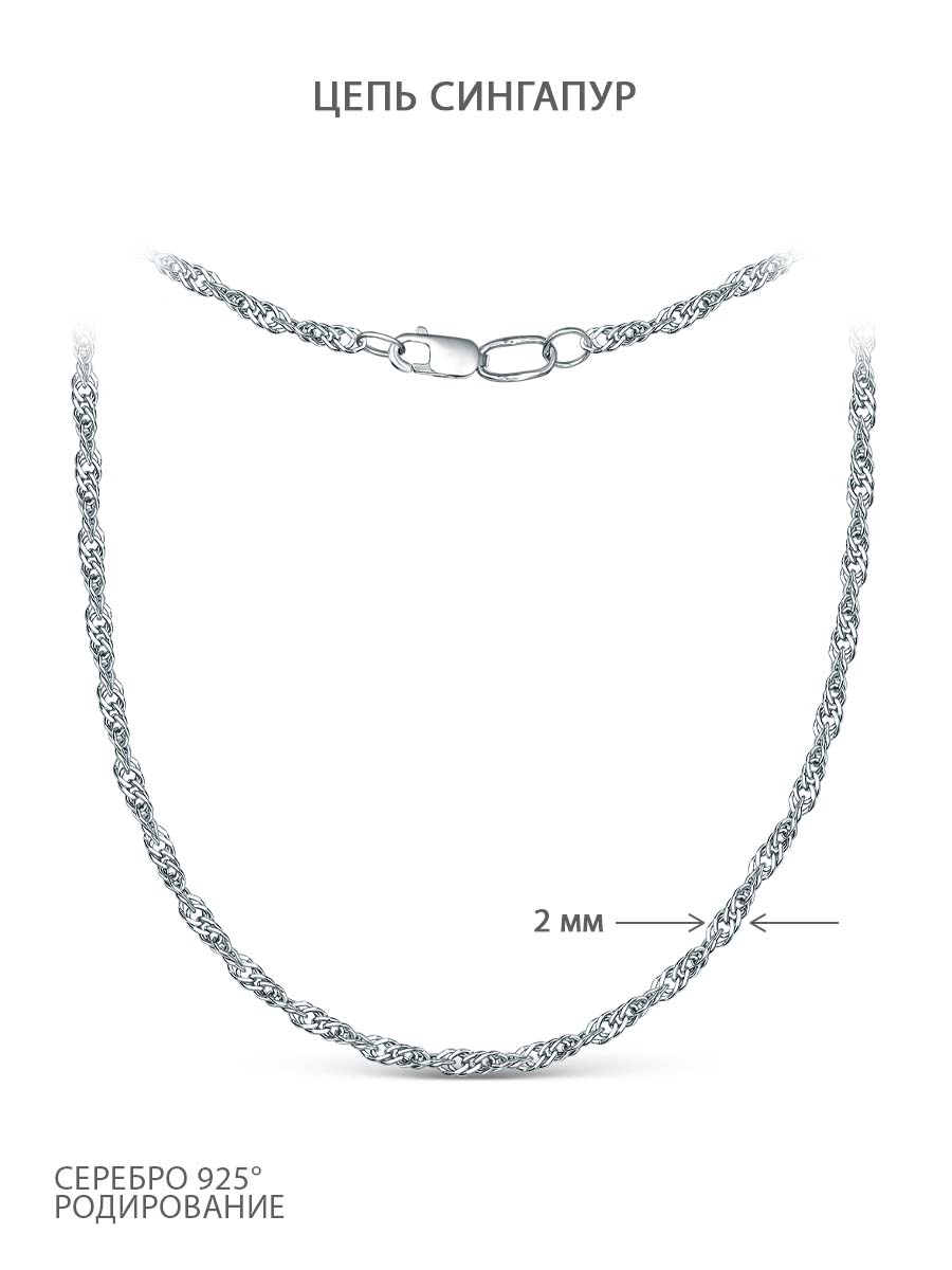 Цепь из серебра родированная - Сингапур, 50 см