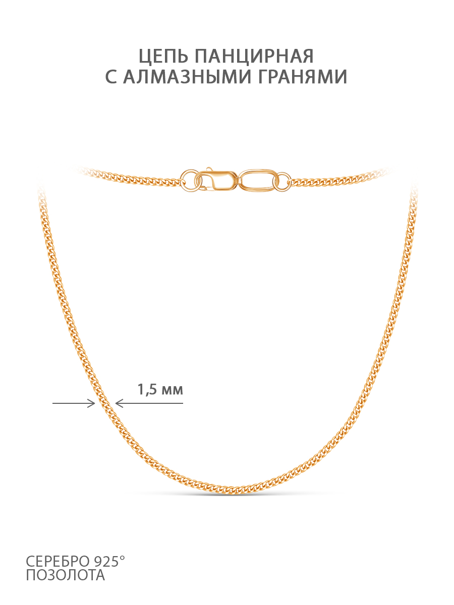 Цепь из золочёного серебра - Панцирная, 55 см V1045010155