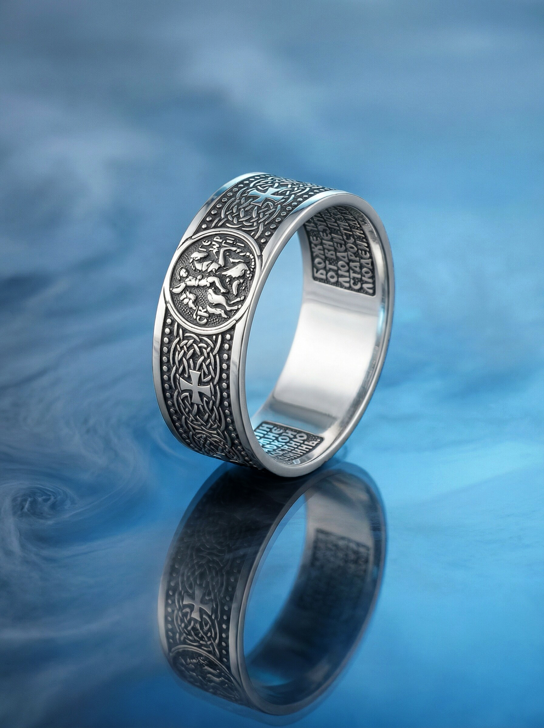 Кольцо из чернёного серебра - Георгий Победоносец, молитва водителя