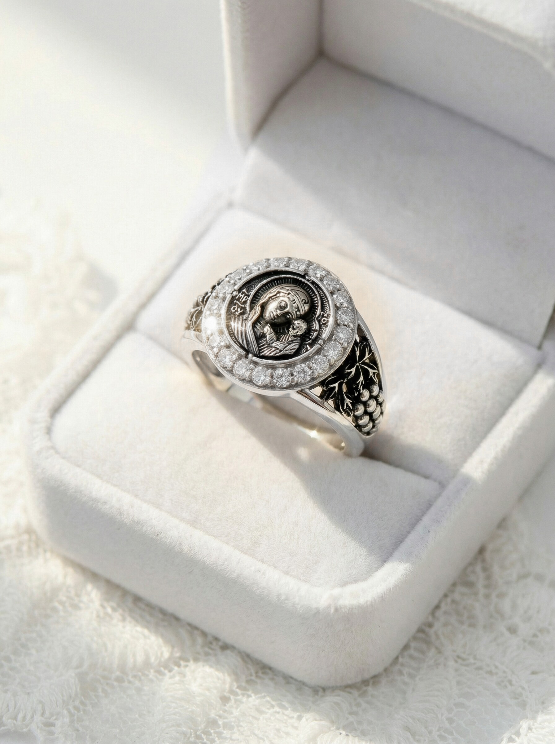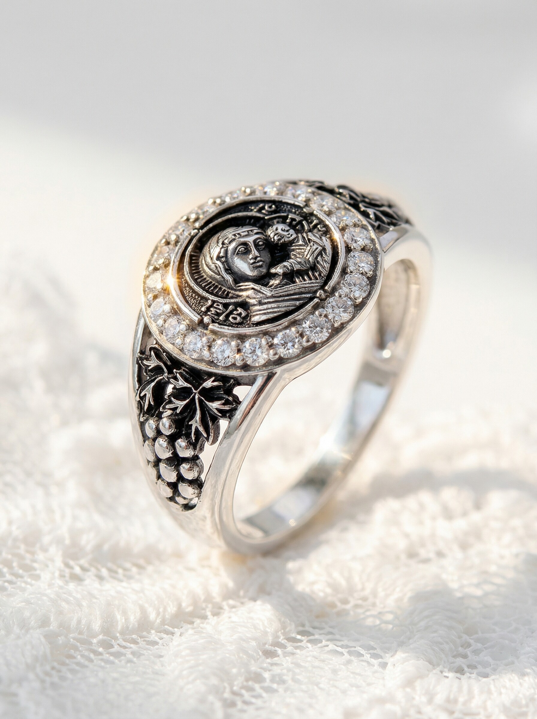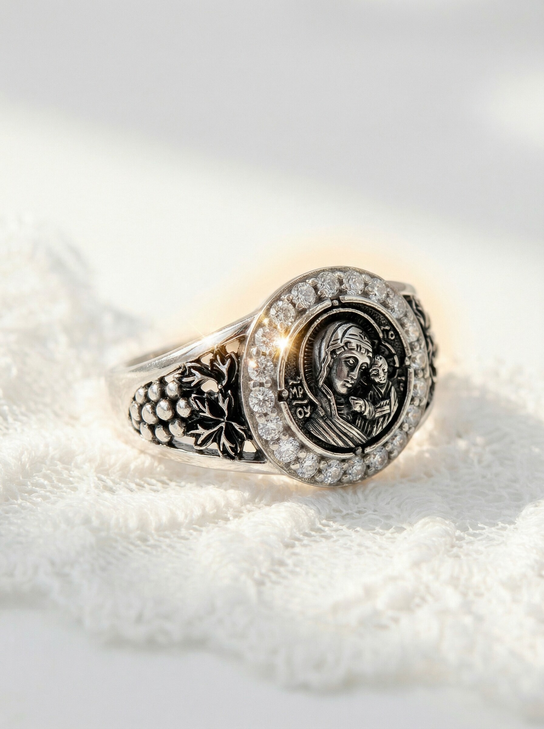 Кольцо из чернёного серебра с фианитами - Казанская БМ