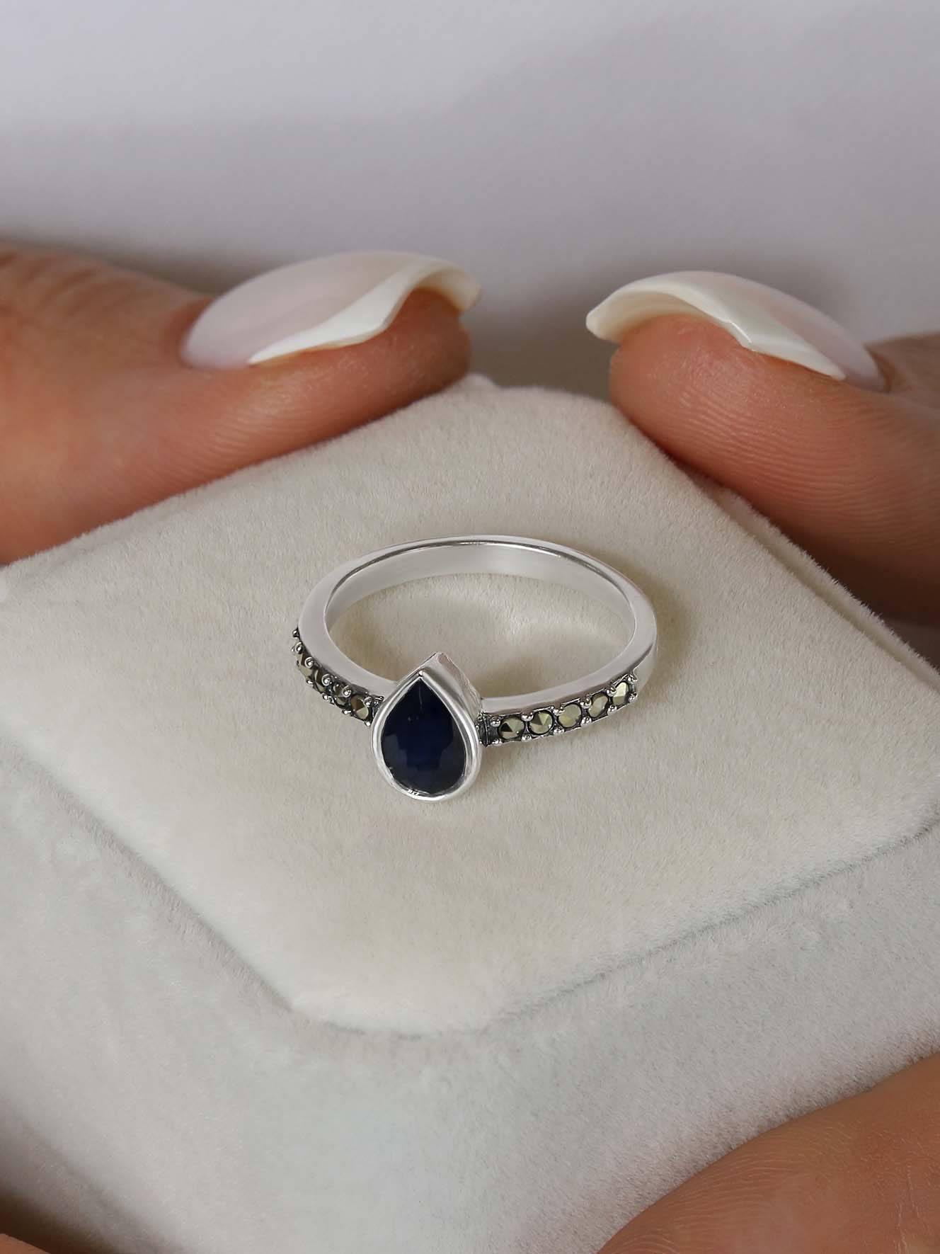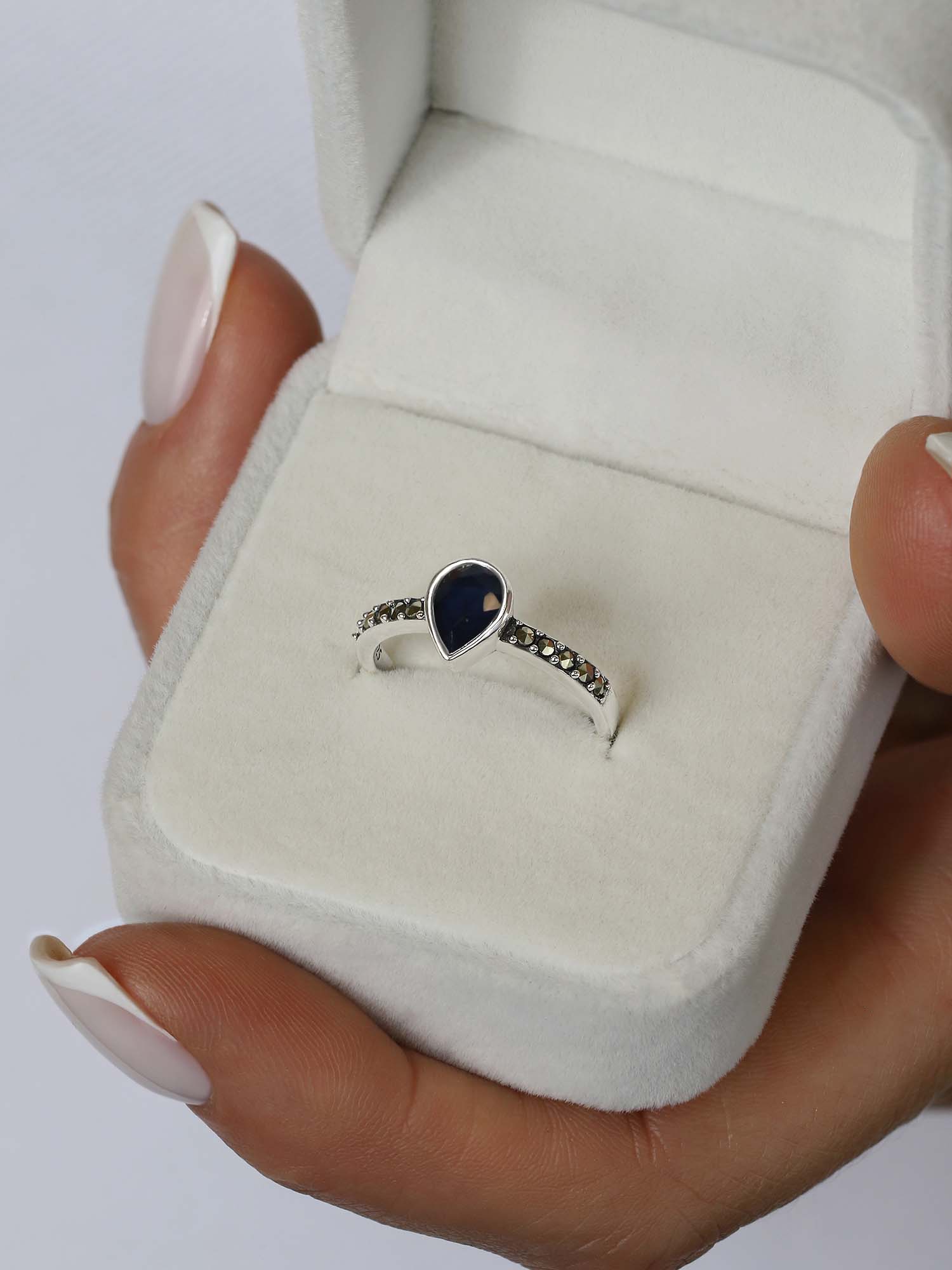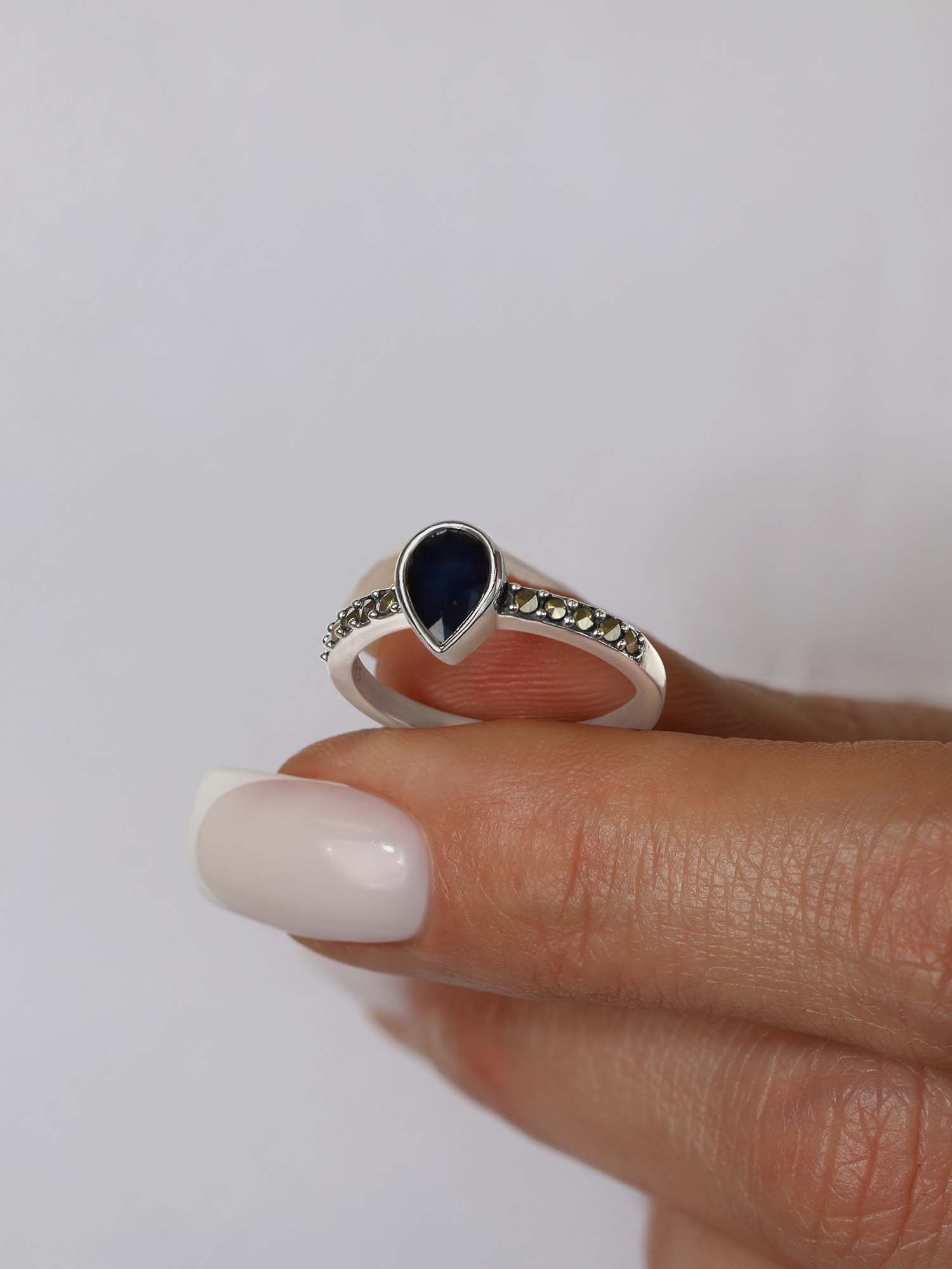 Кольцо из чернёного серебра с сапфиром и марказитами
