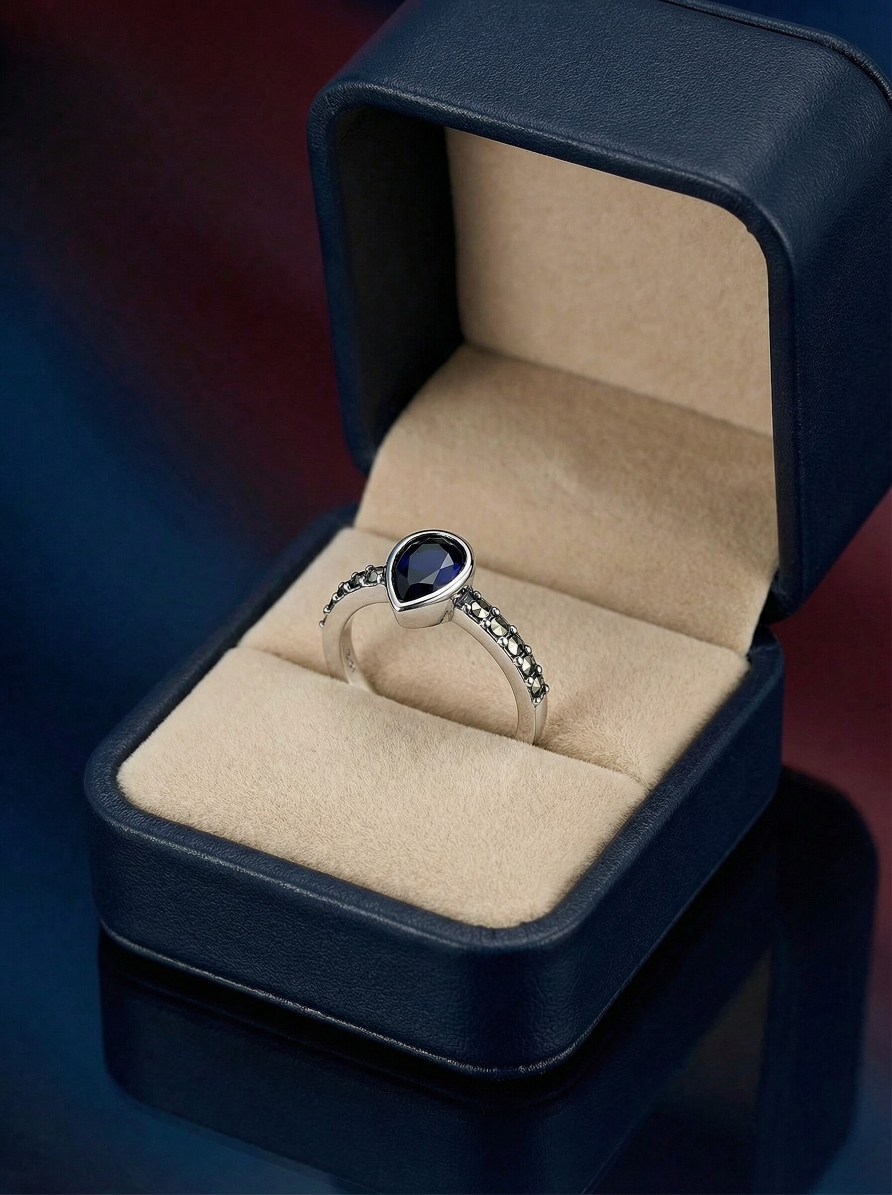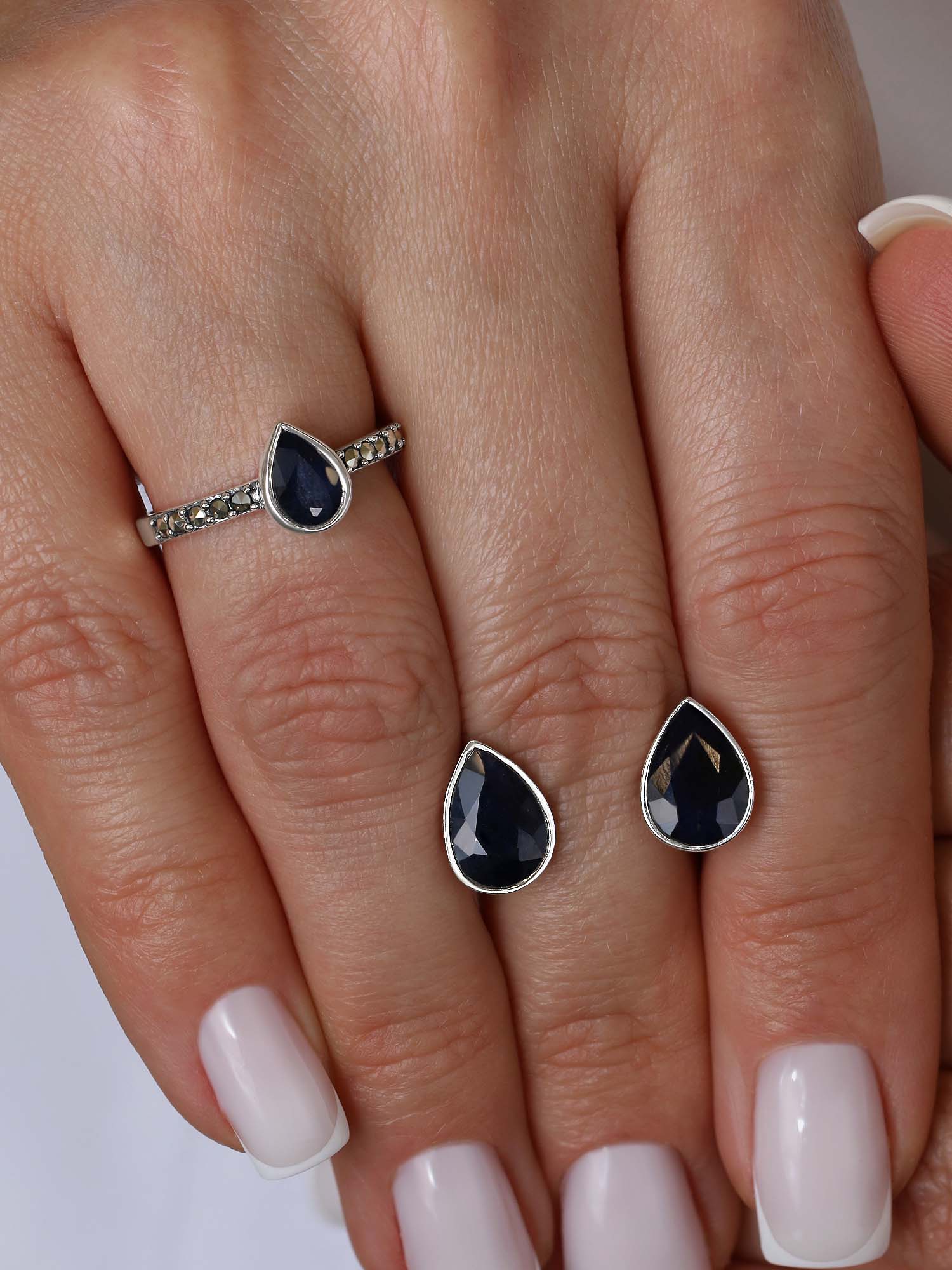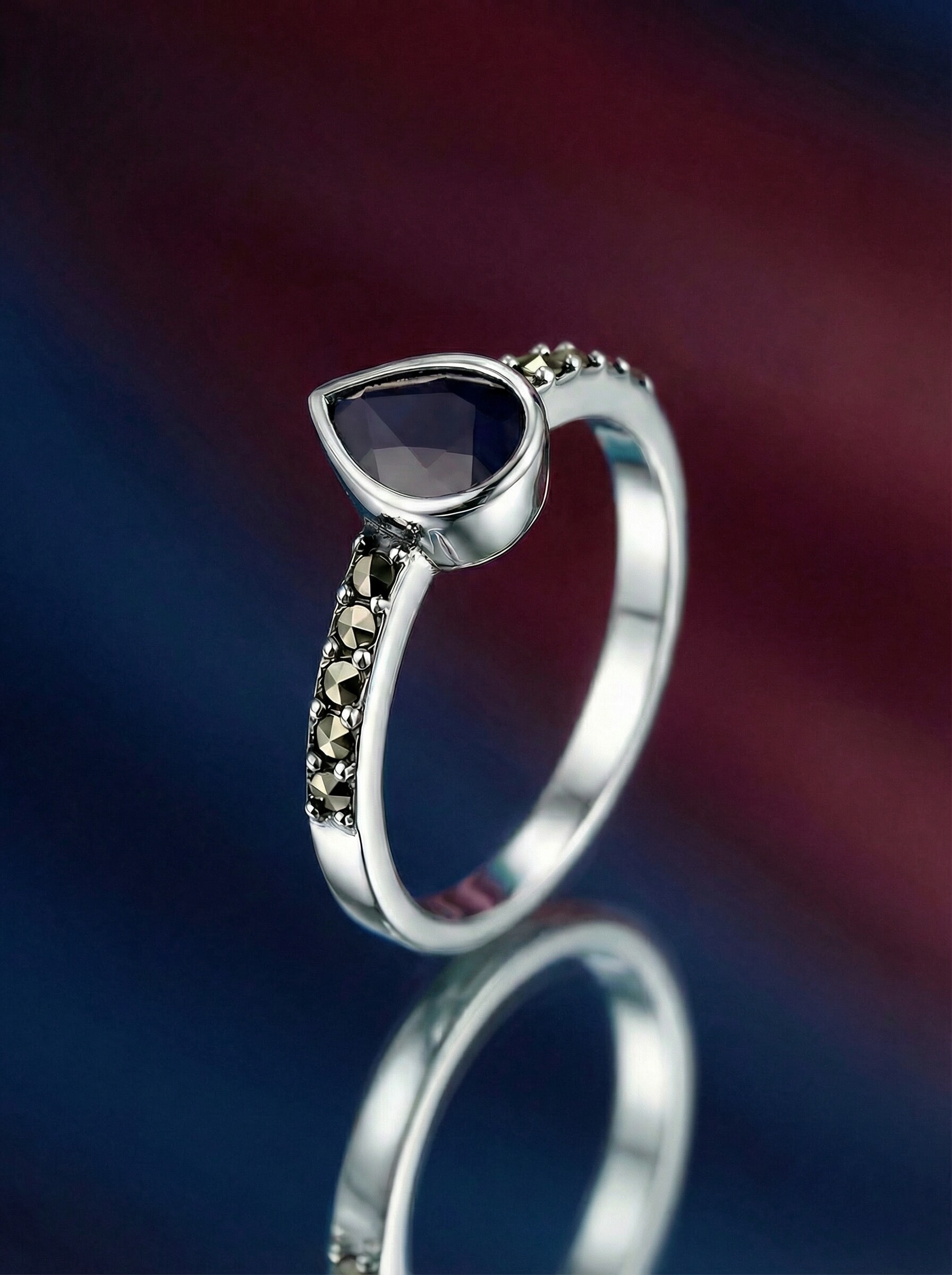 Кольцо из чернёного серебра с сапфиром и марказитами