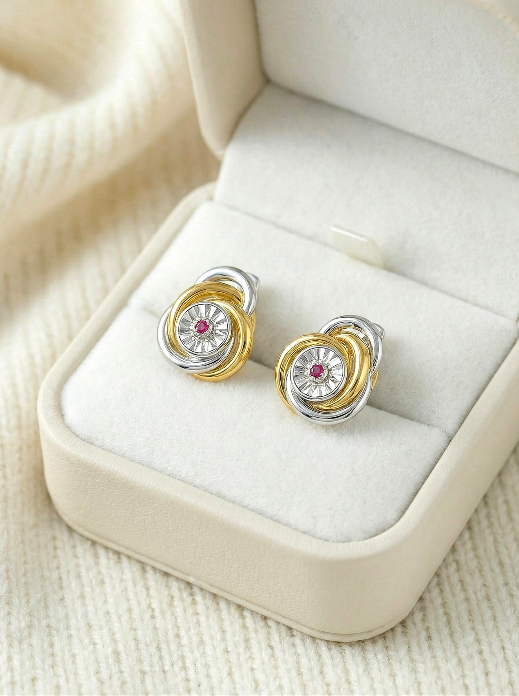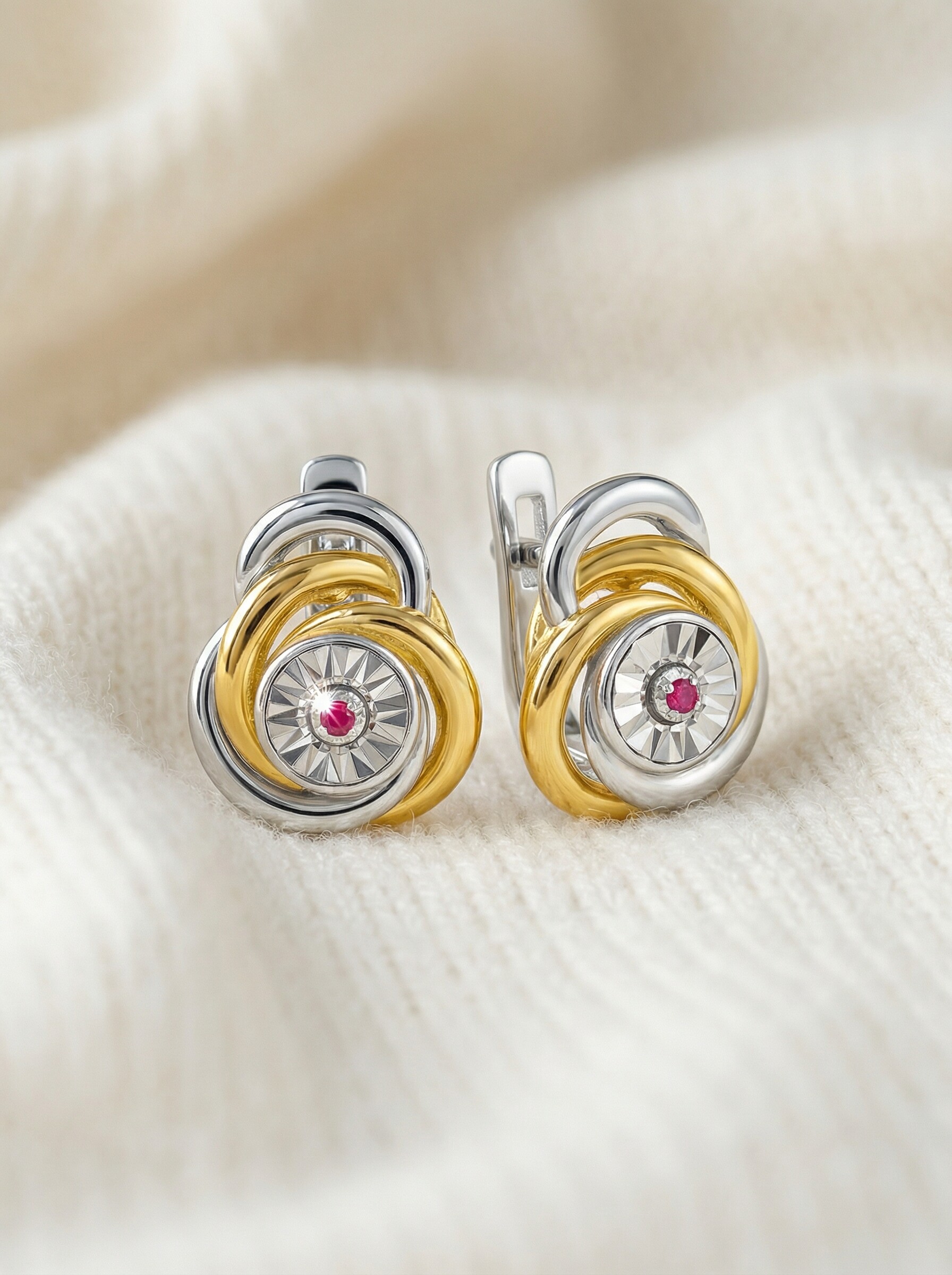 Серьги из родированного серебра с рубином и лимонным золочением 925 пробы SE01991RU/G