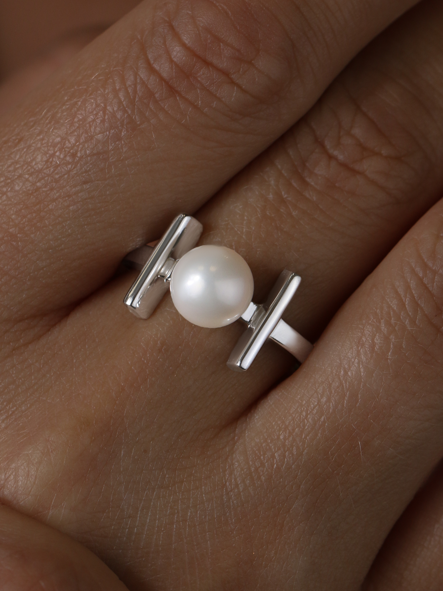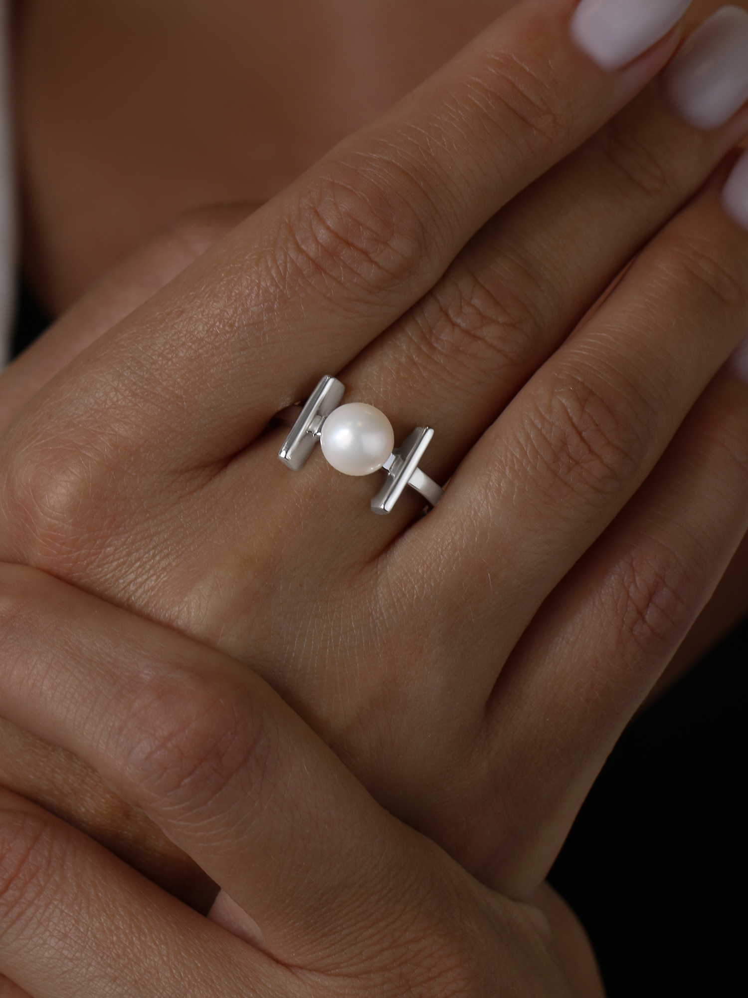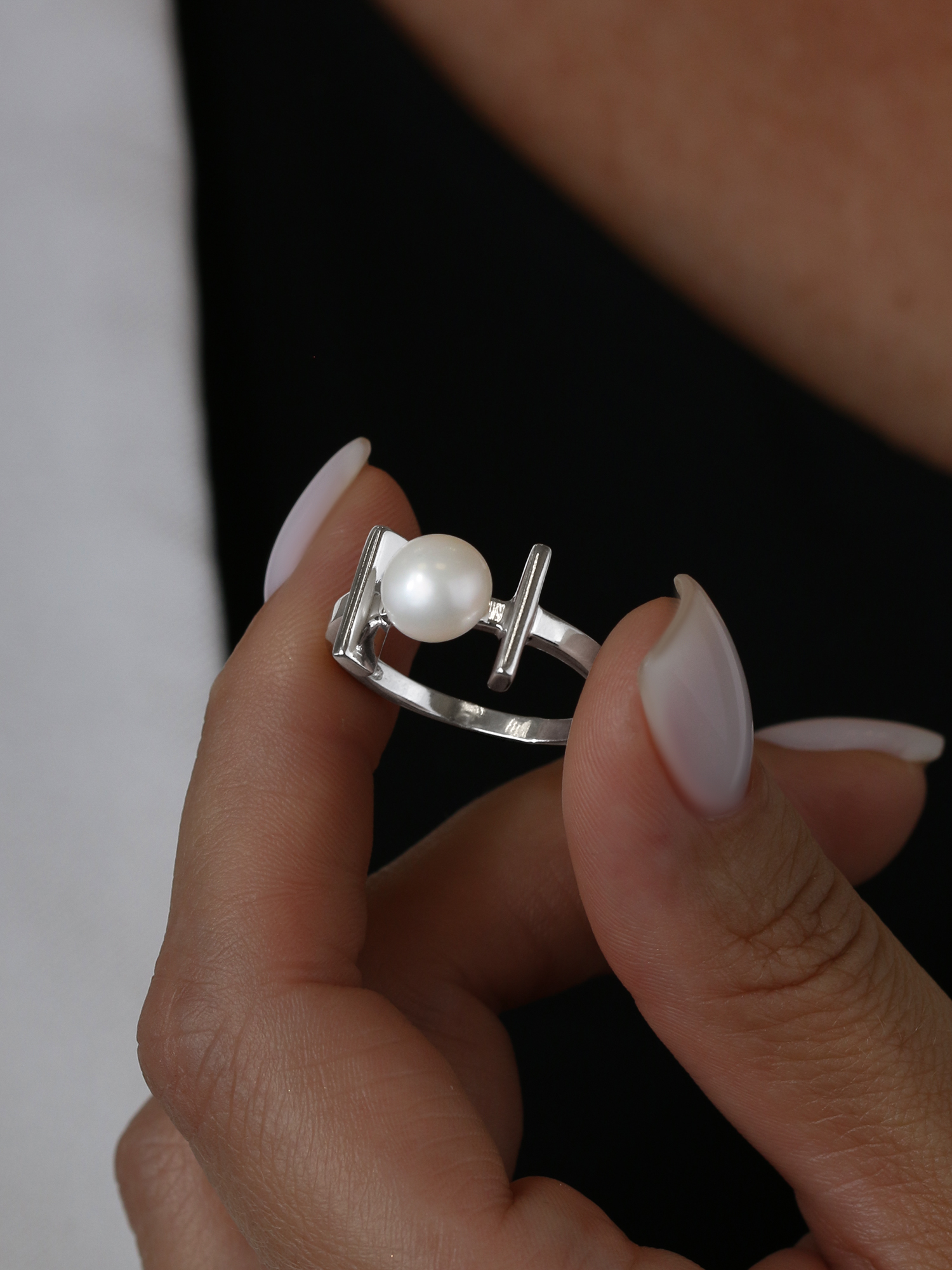 Кольцо из серебра c культивированным жемчугом родированное