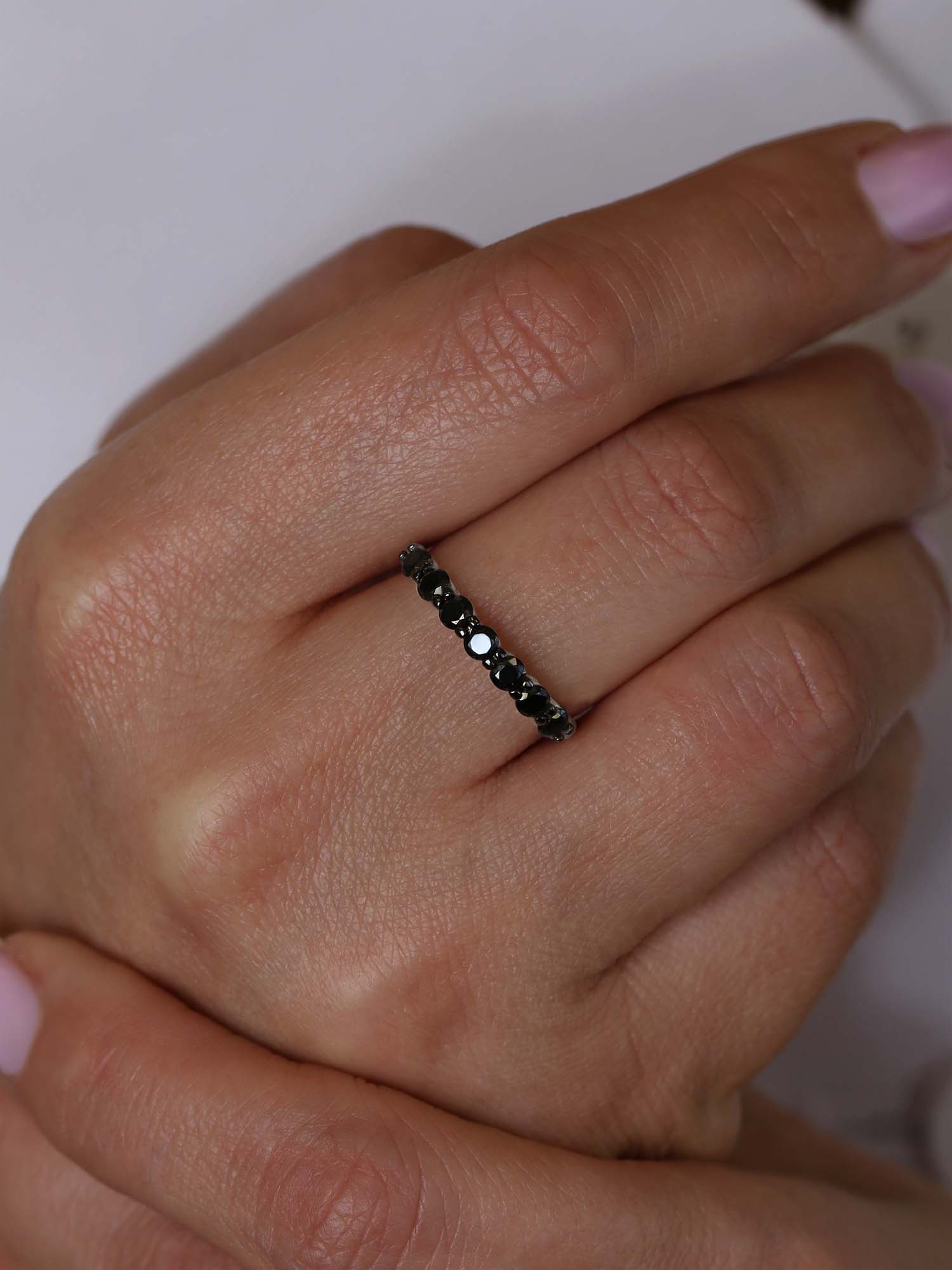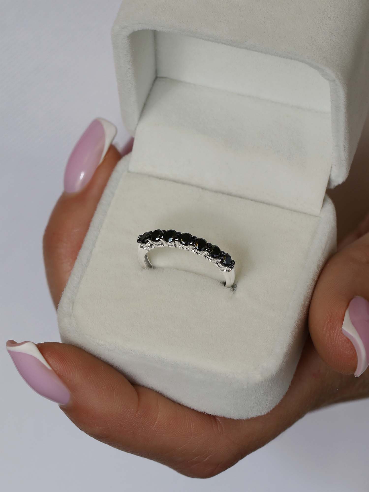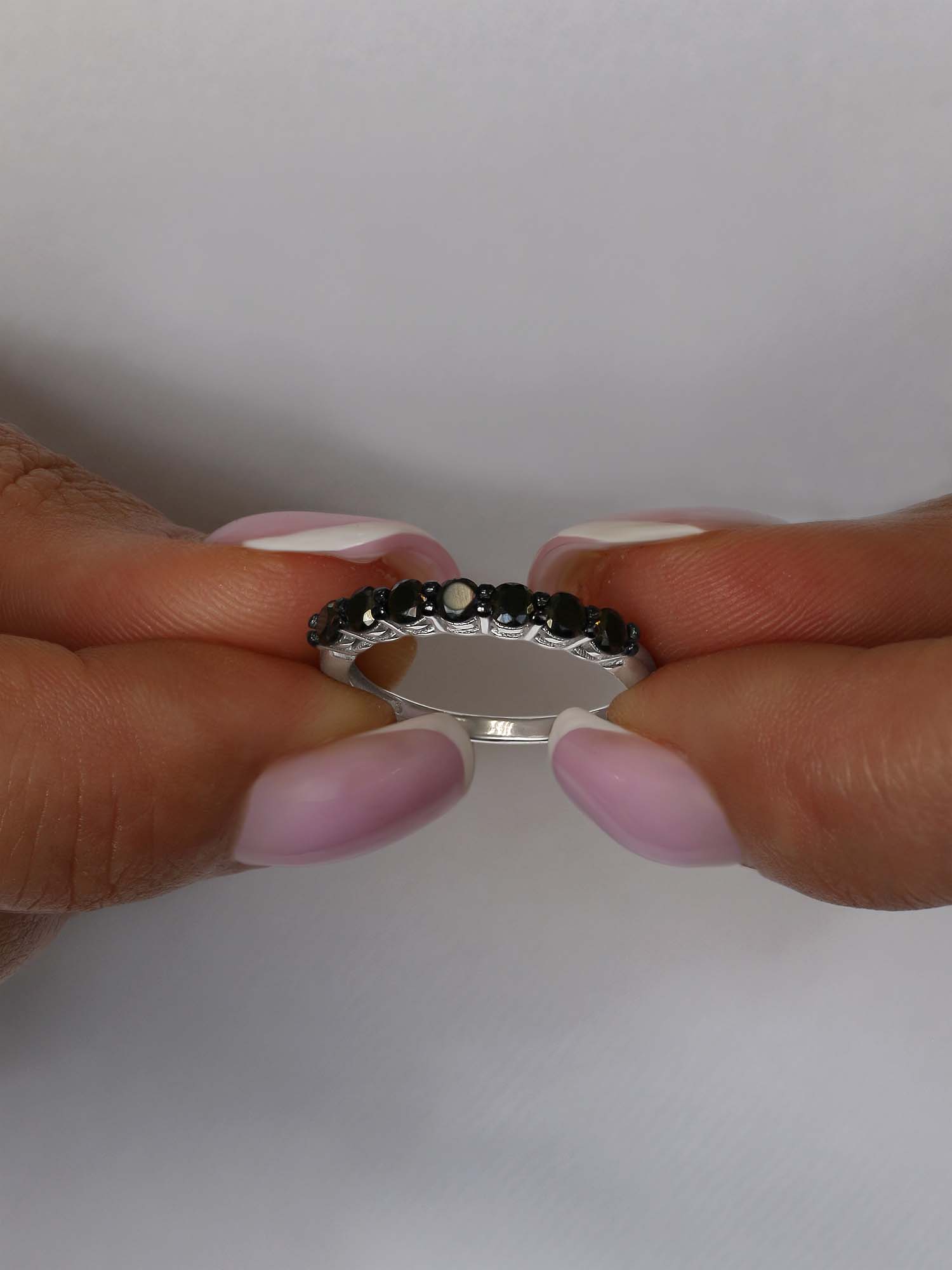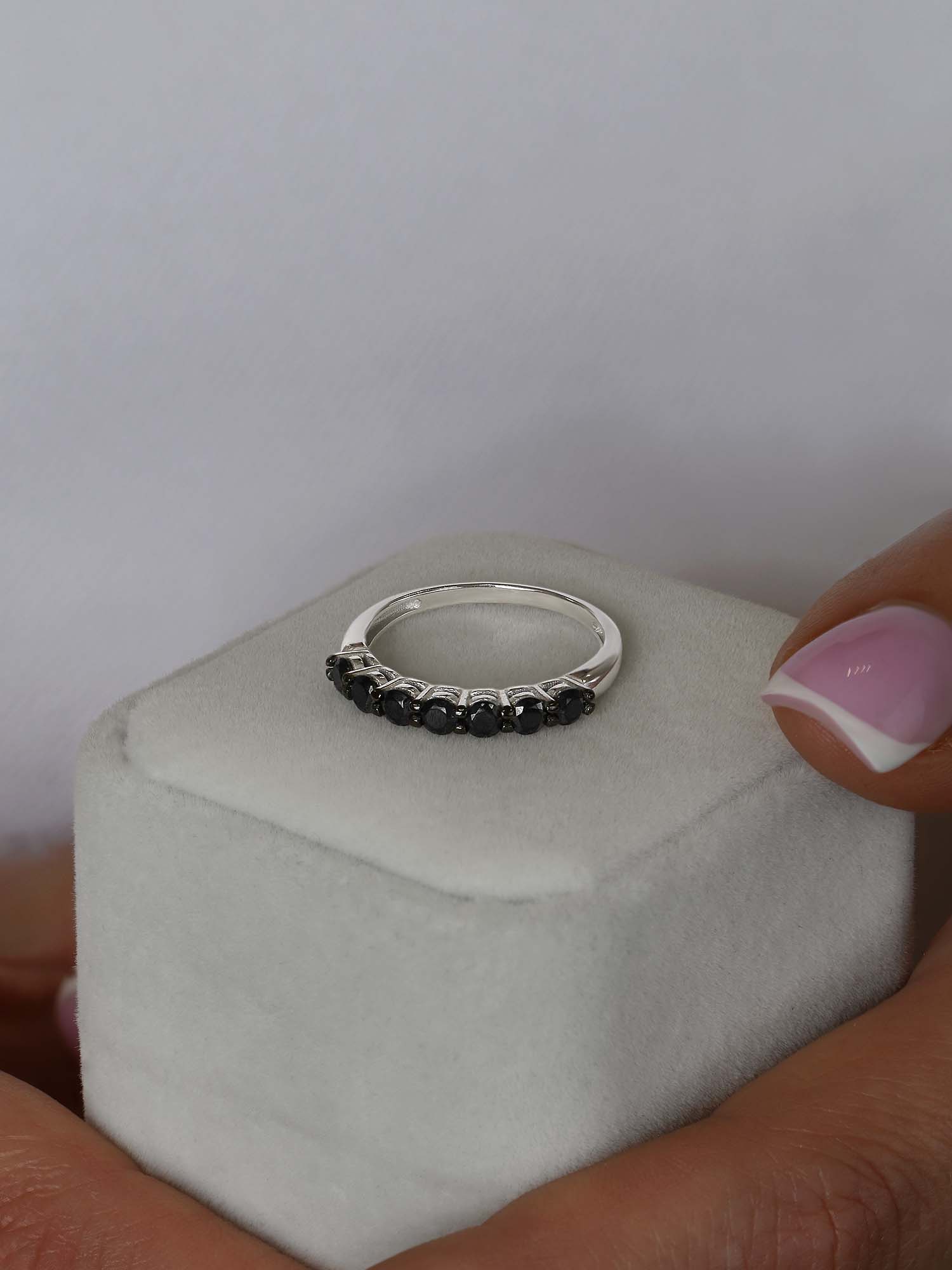 Кольцо из серебра с чёрн. шпинелью родированное