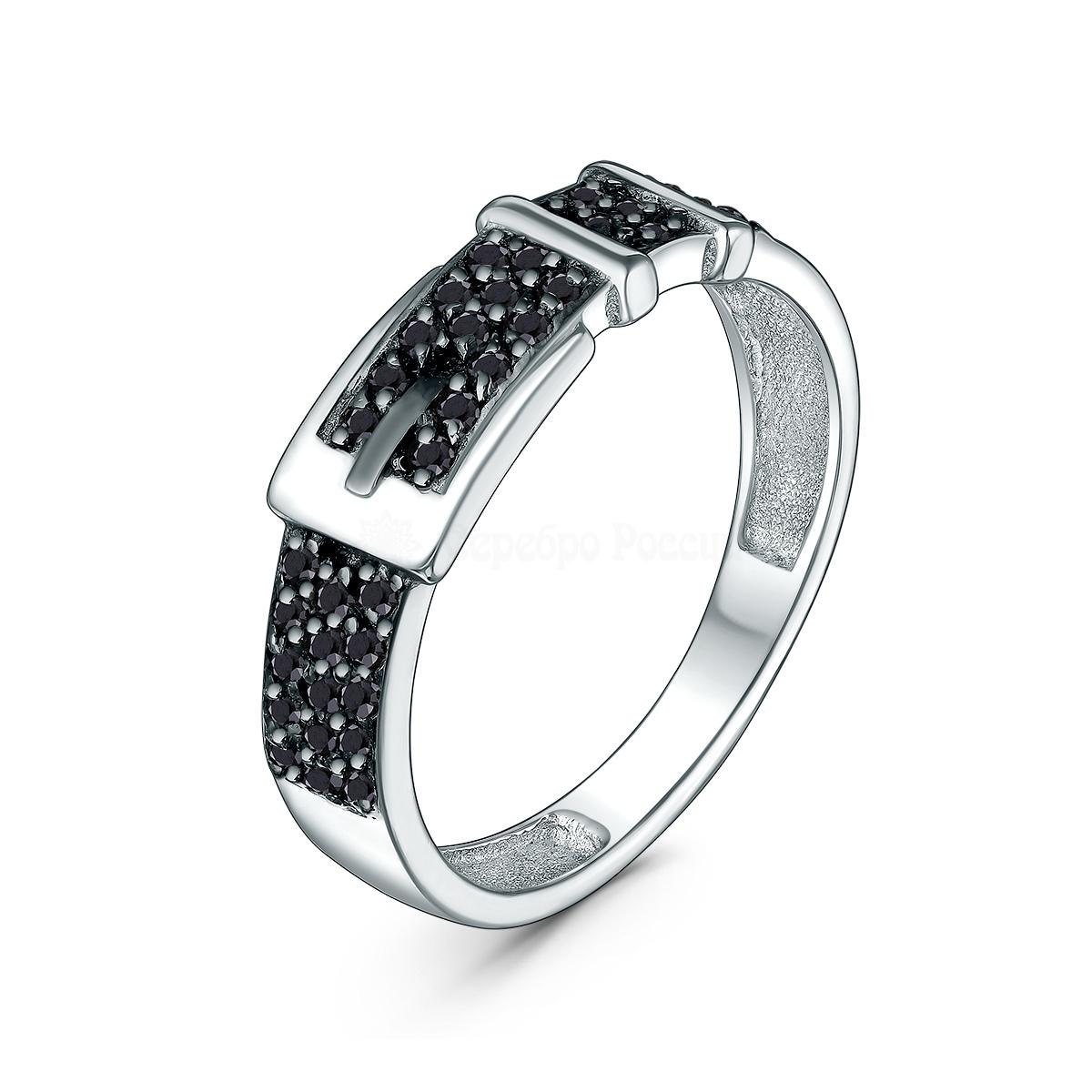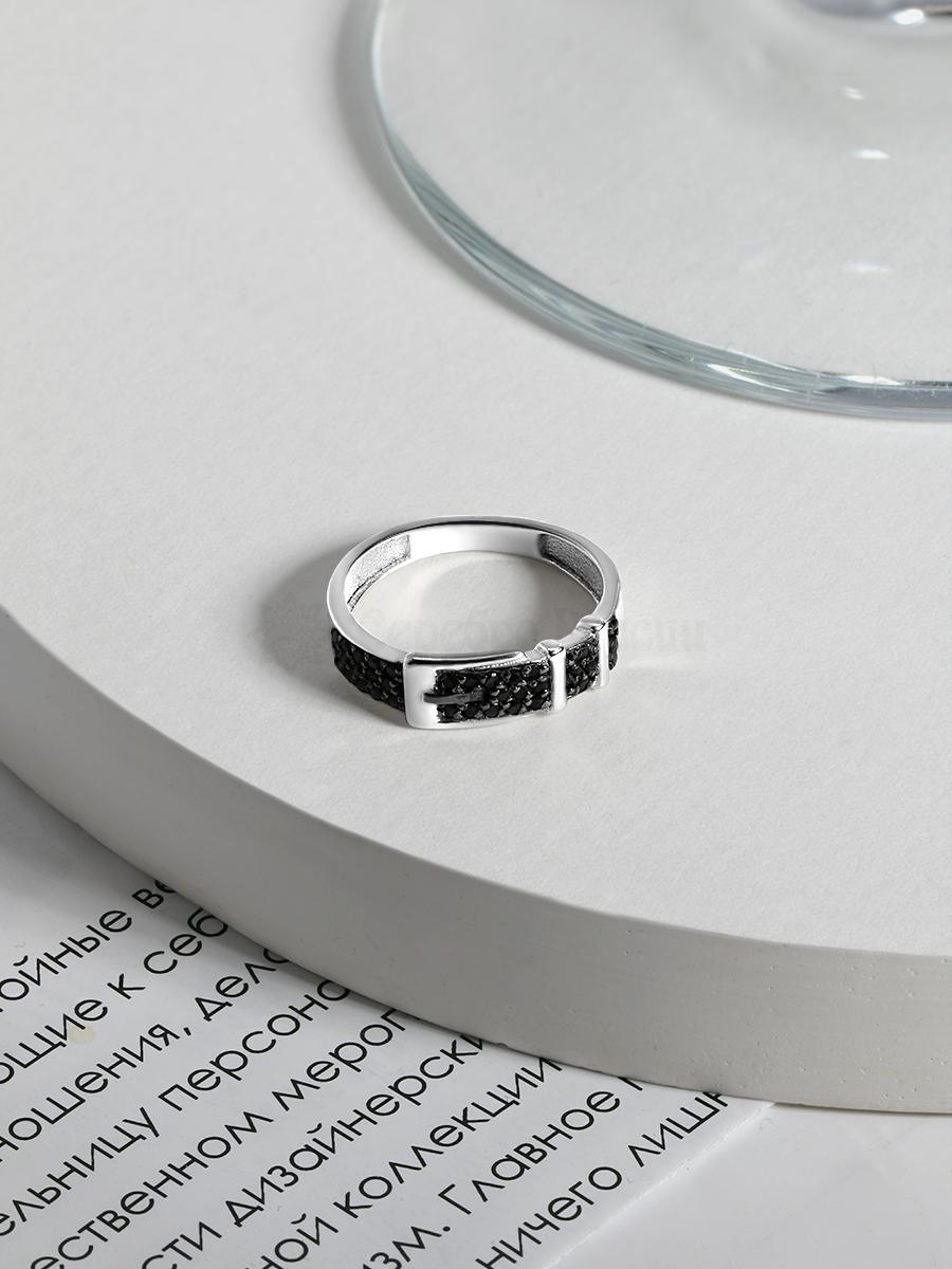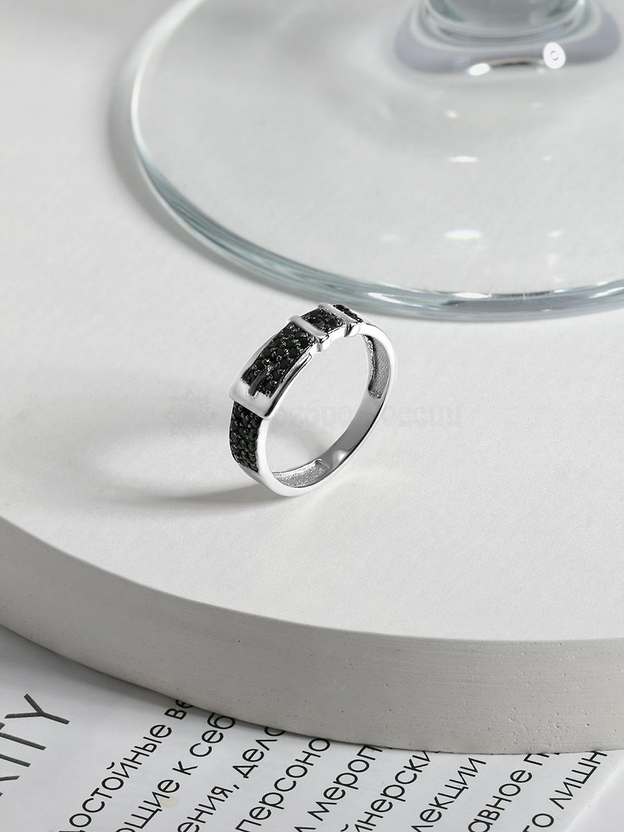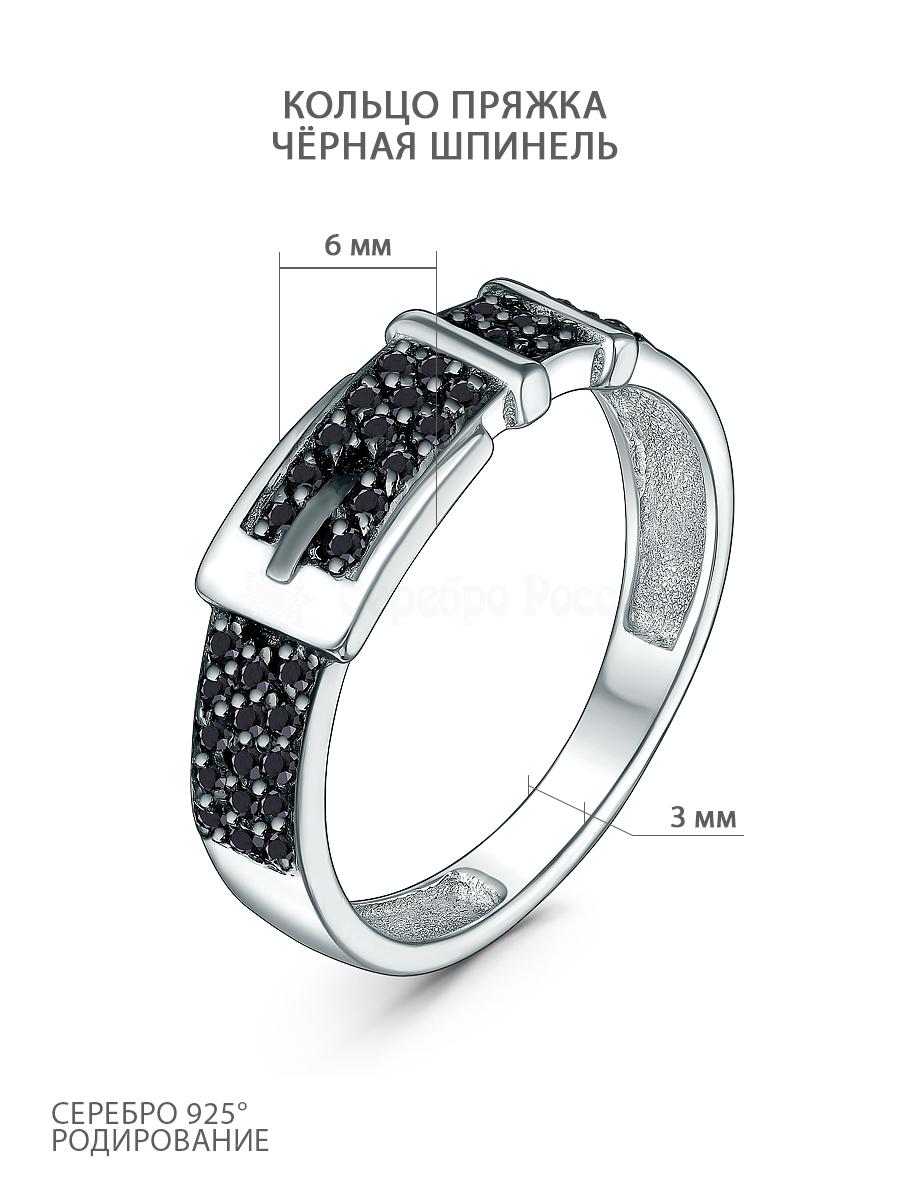 Кольцо из серебра с чёрной шпинелью родированное 1-132рч416