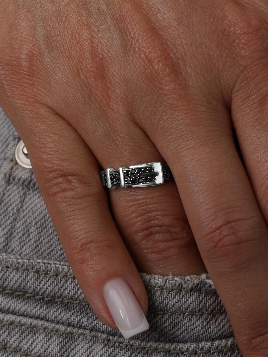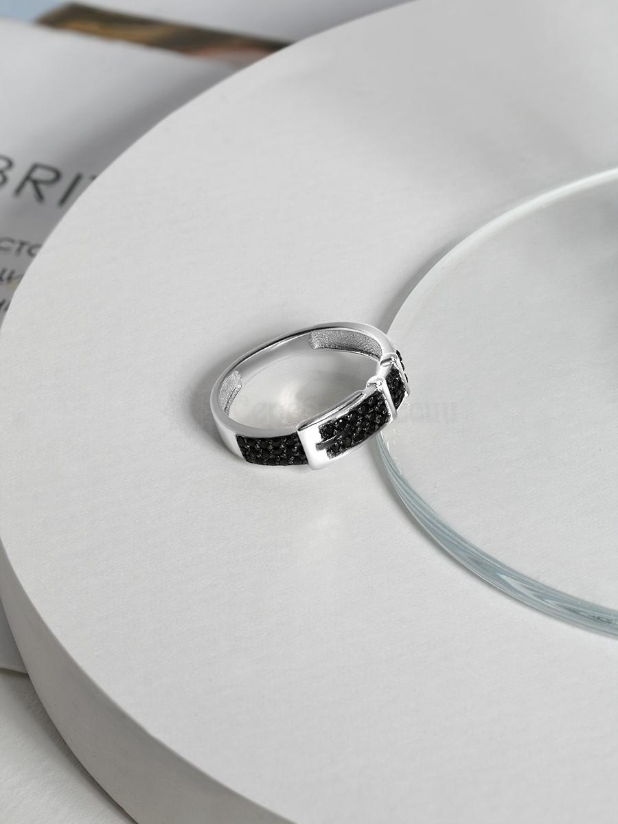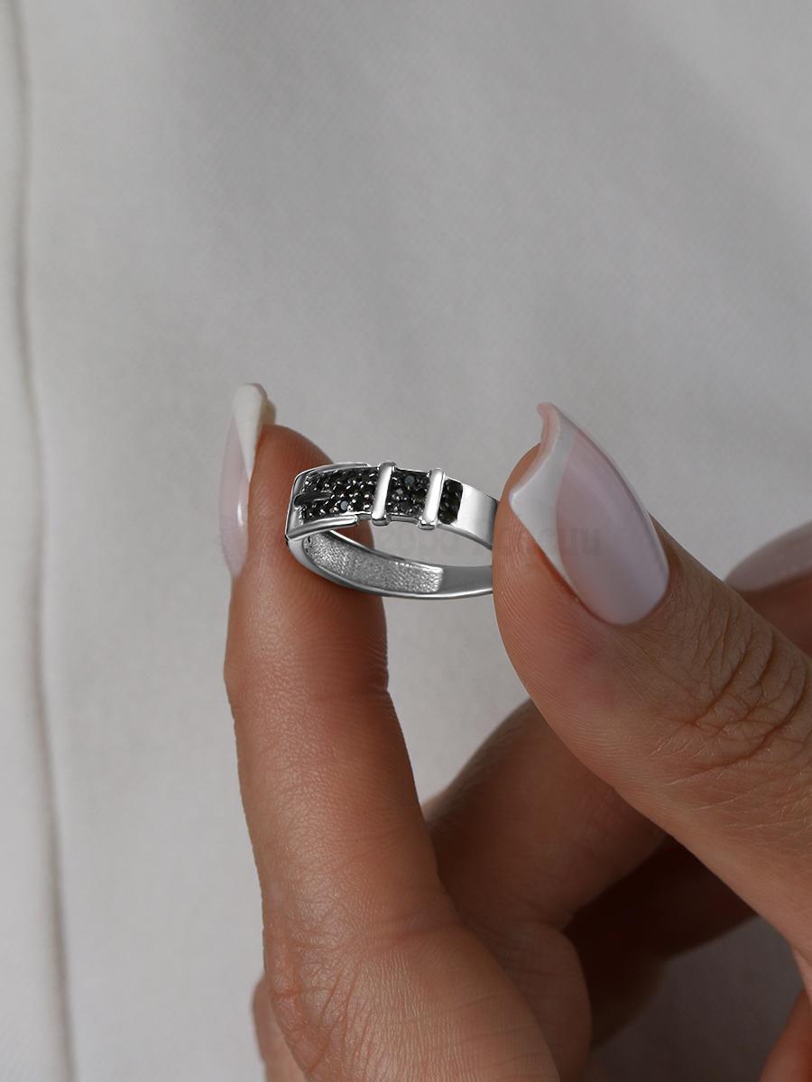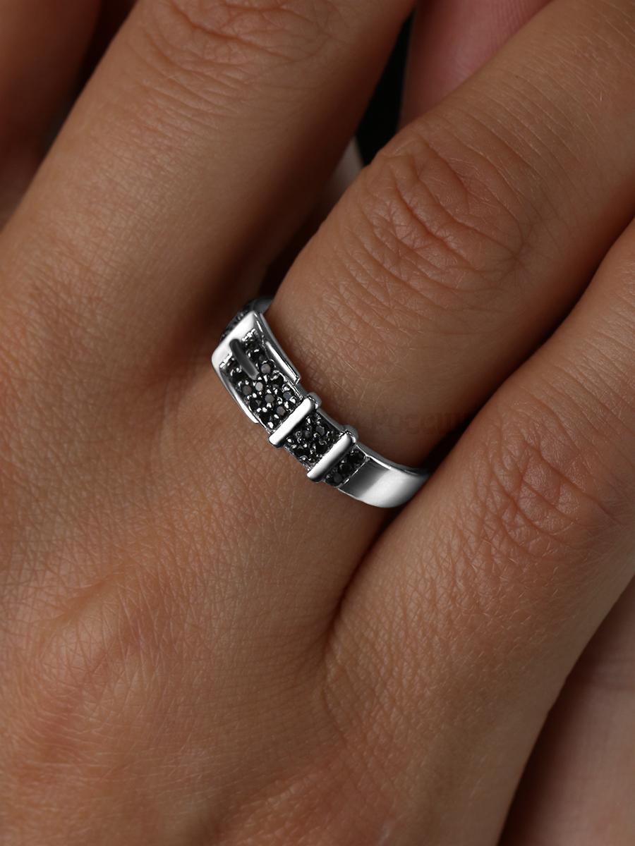 Кольцо из серебра с чёрной шпинелью родированное 1-132рч416