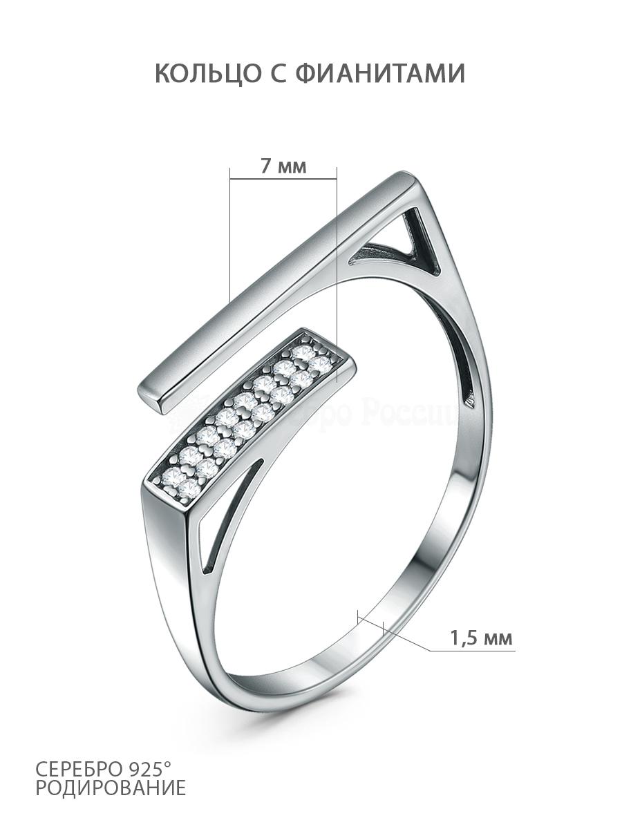 Кольцо из серебра с фианитами родированное