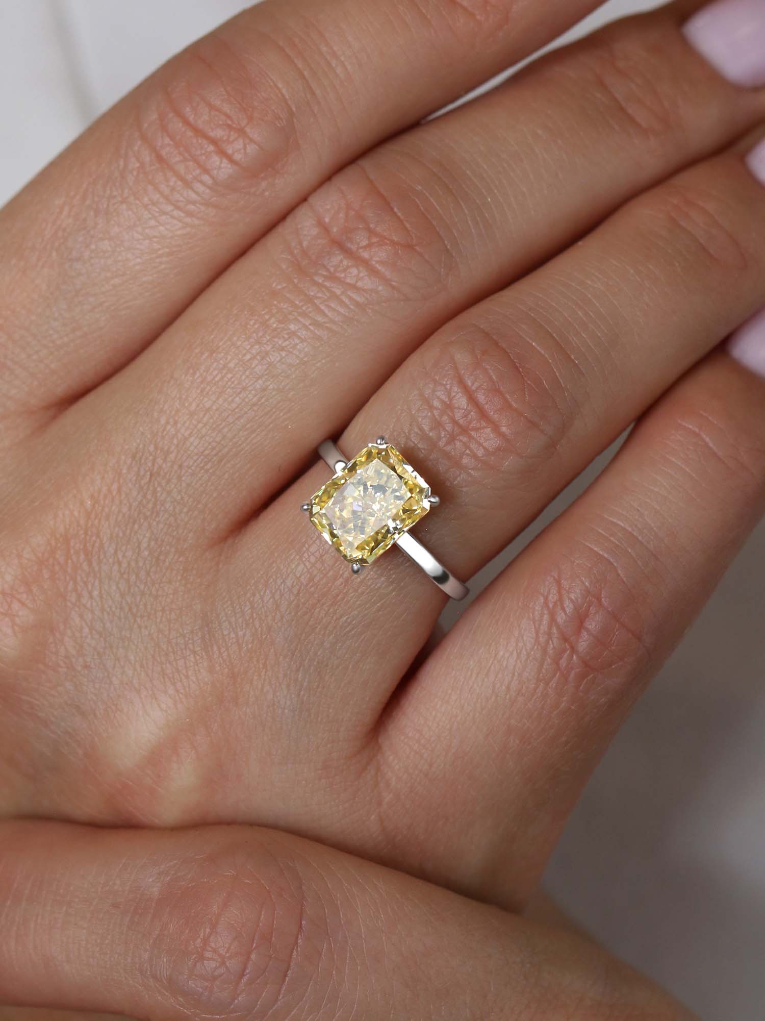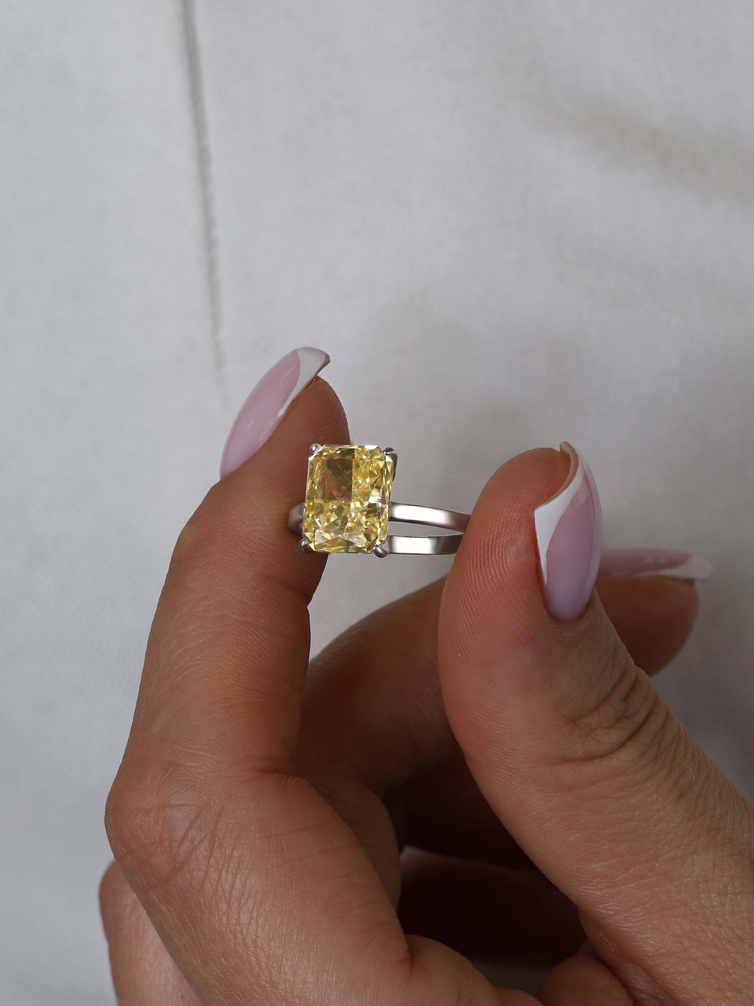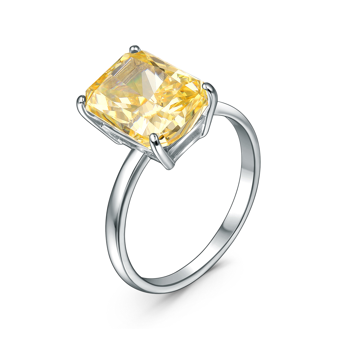 Кольцо из серебра с фианитом цвета цитрин родированное