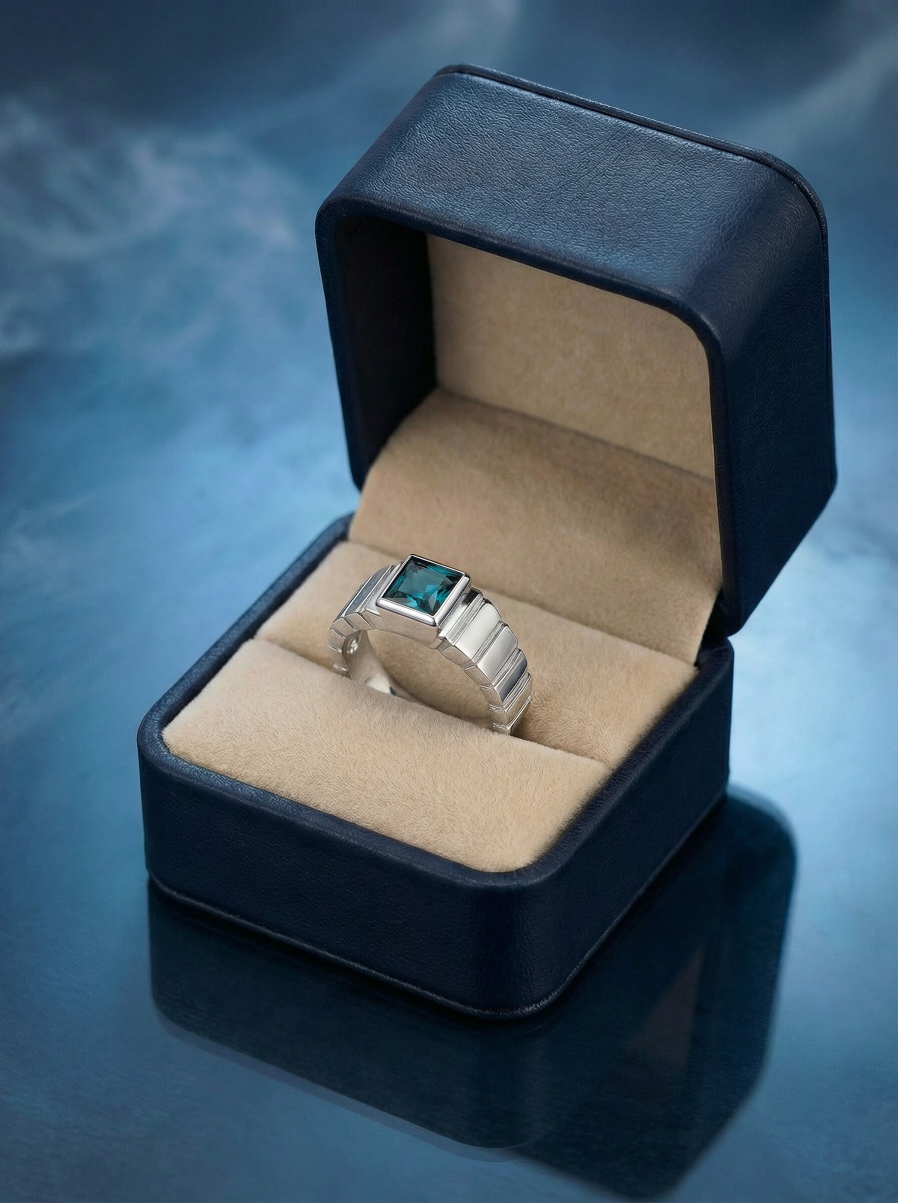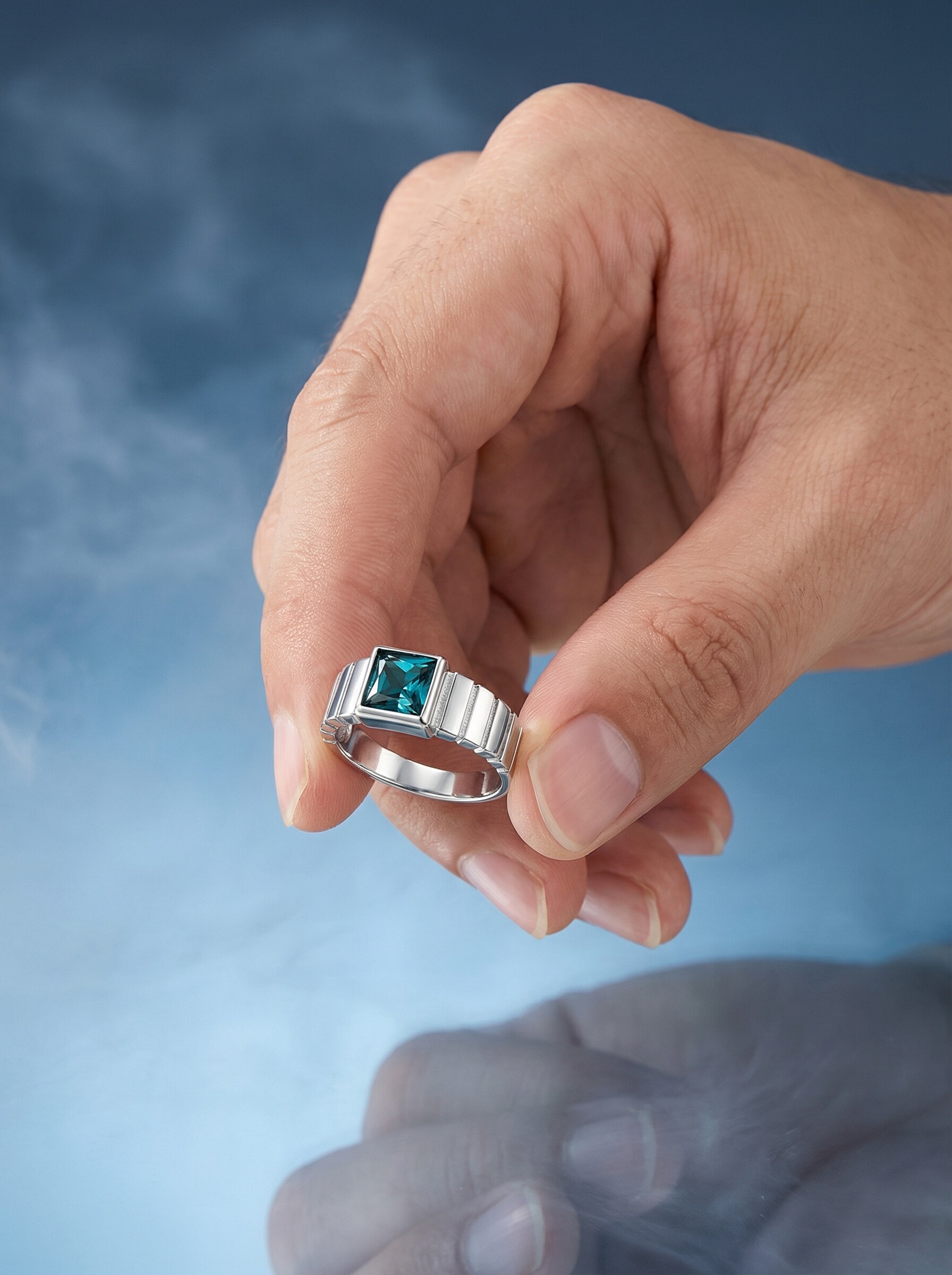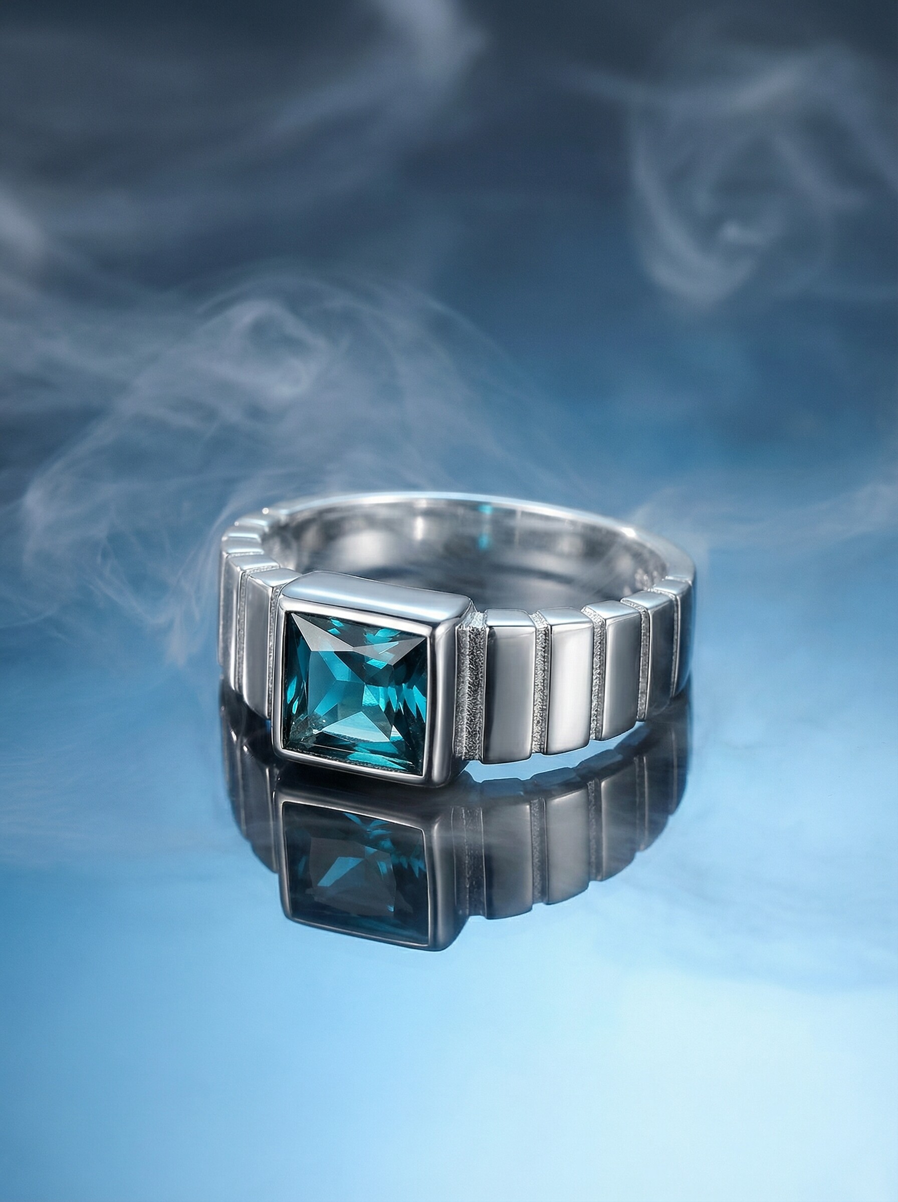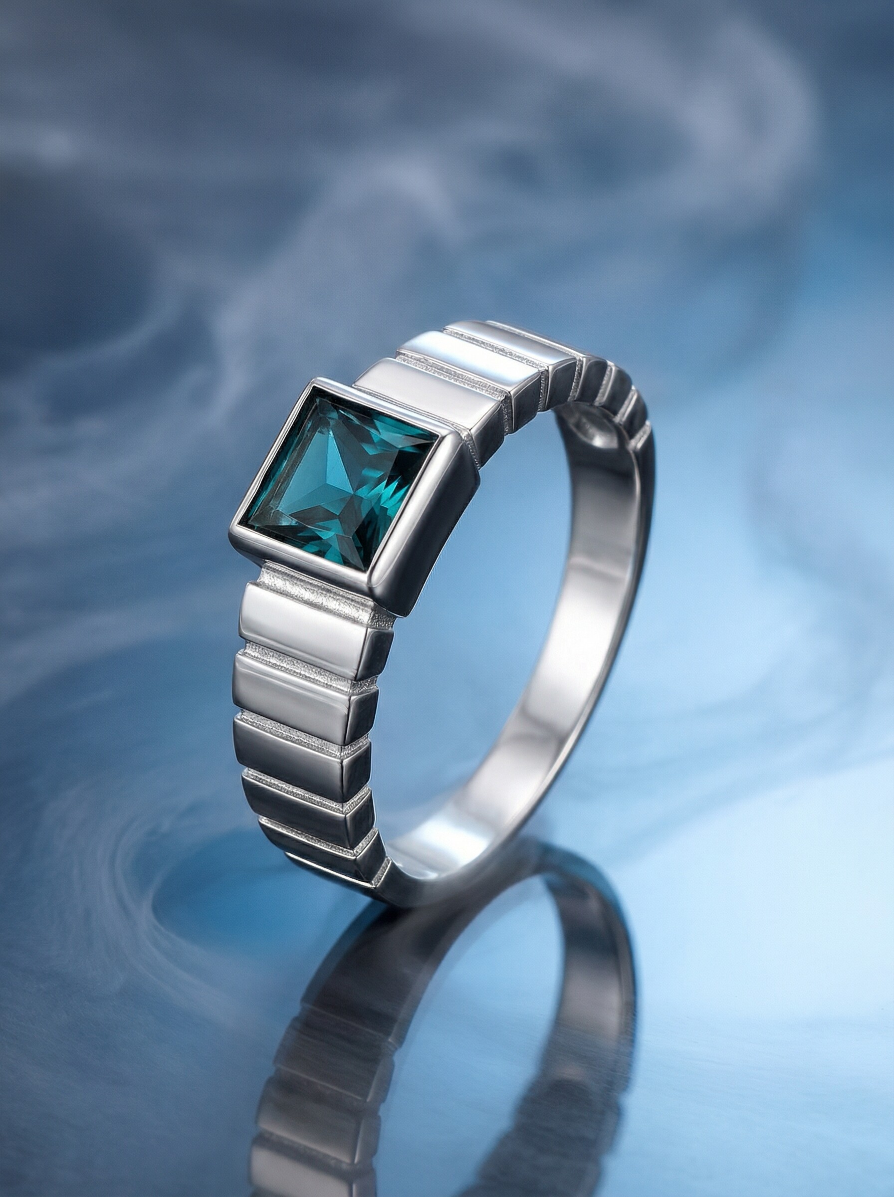Печатка из серебра с фианитом цвета лондон-топаз родированное 925 пробы КП-002р211