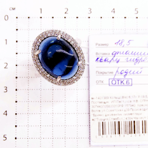 Кольцо из серебра с кварцем гт и фианитами родированное ак-1401389 синий