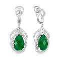 Кольцо из серебра с кварцем зеленый агат и фианитами родированное