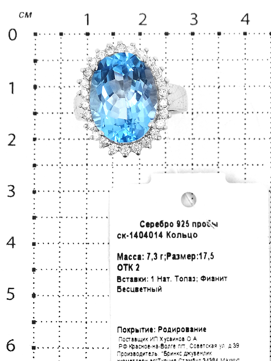 Кольцо из серебра с нат. топазом и фианитами родированное ск-1404014