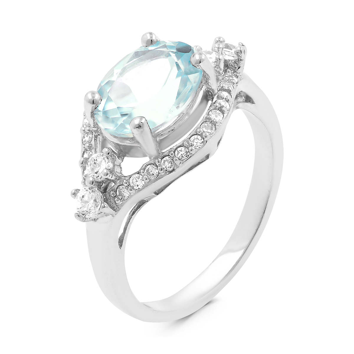 Кольцо из серебра с нат. топазом и фианитами родированное