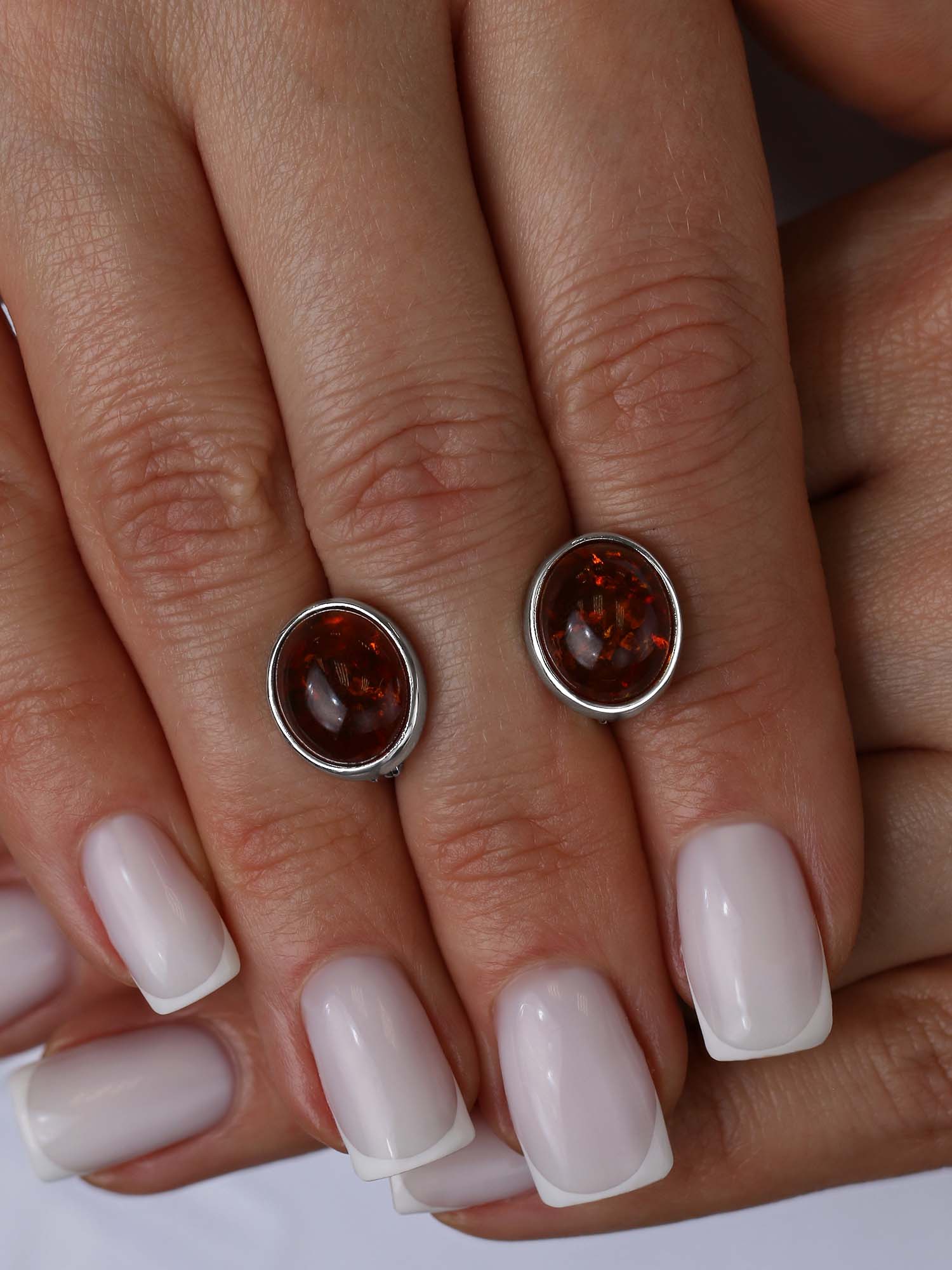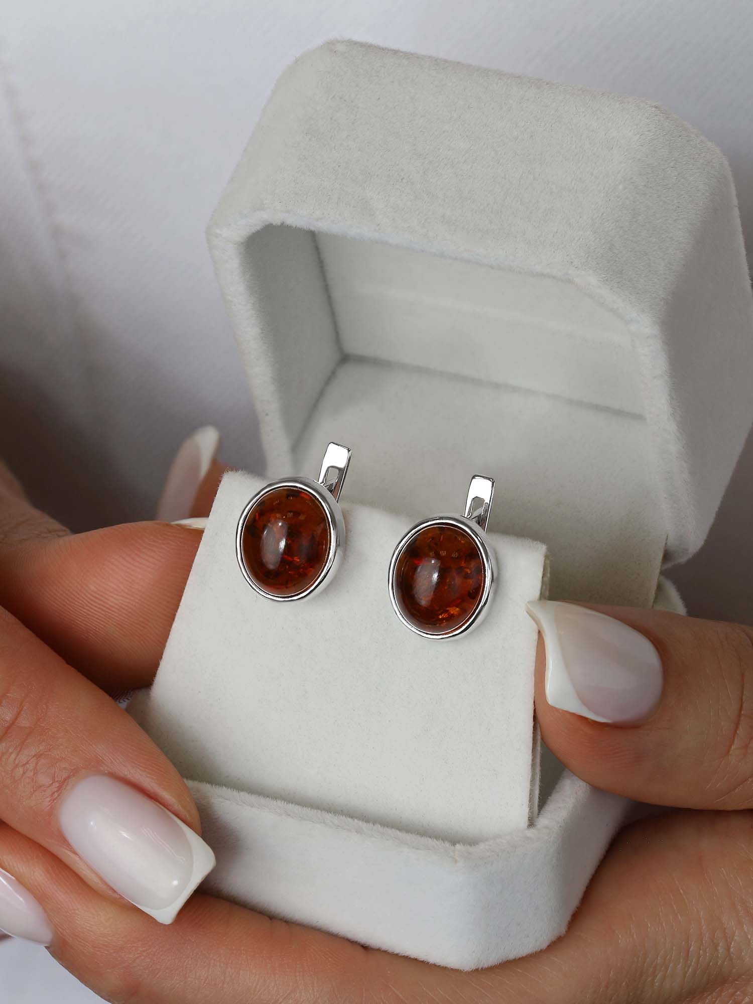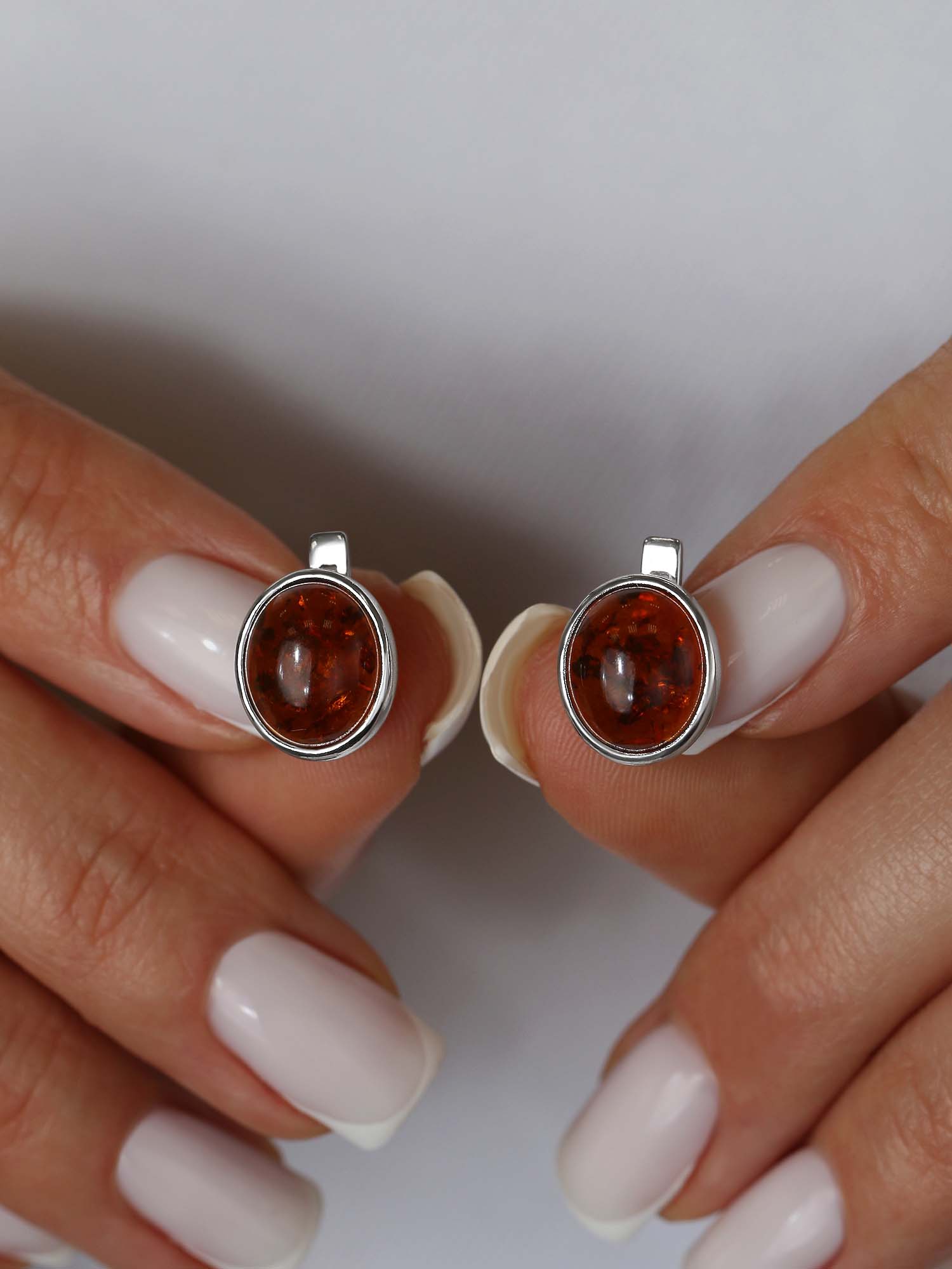 Серьги из серебра с натуральным янтарём родированные 925 пробы 2-422р440