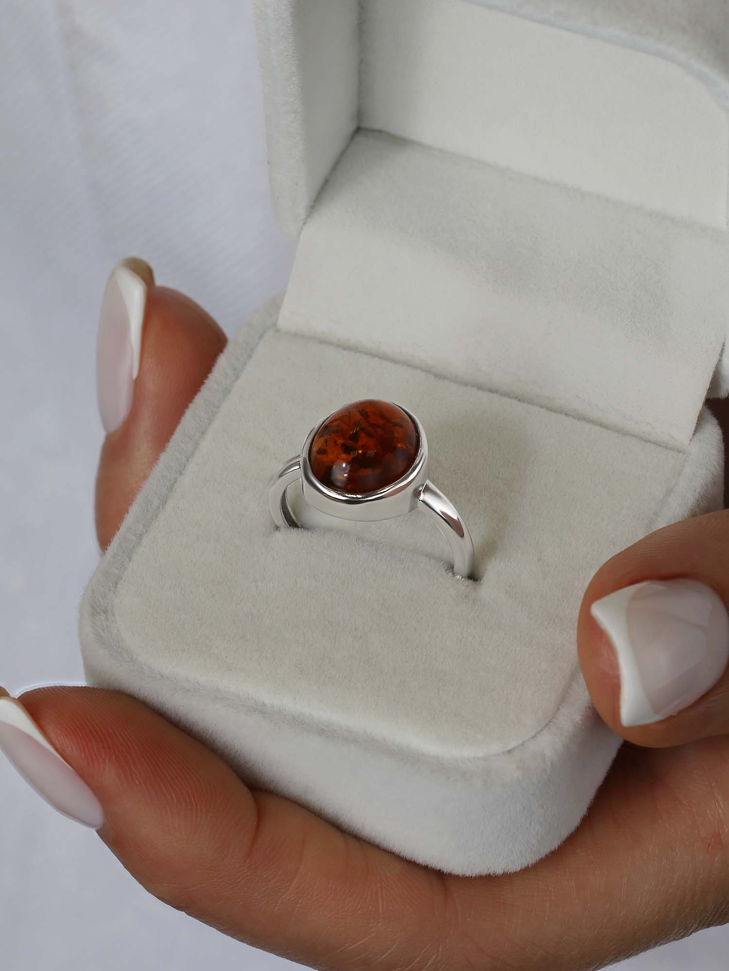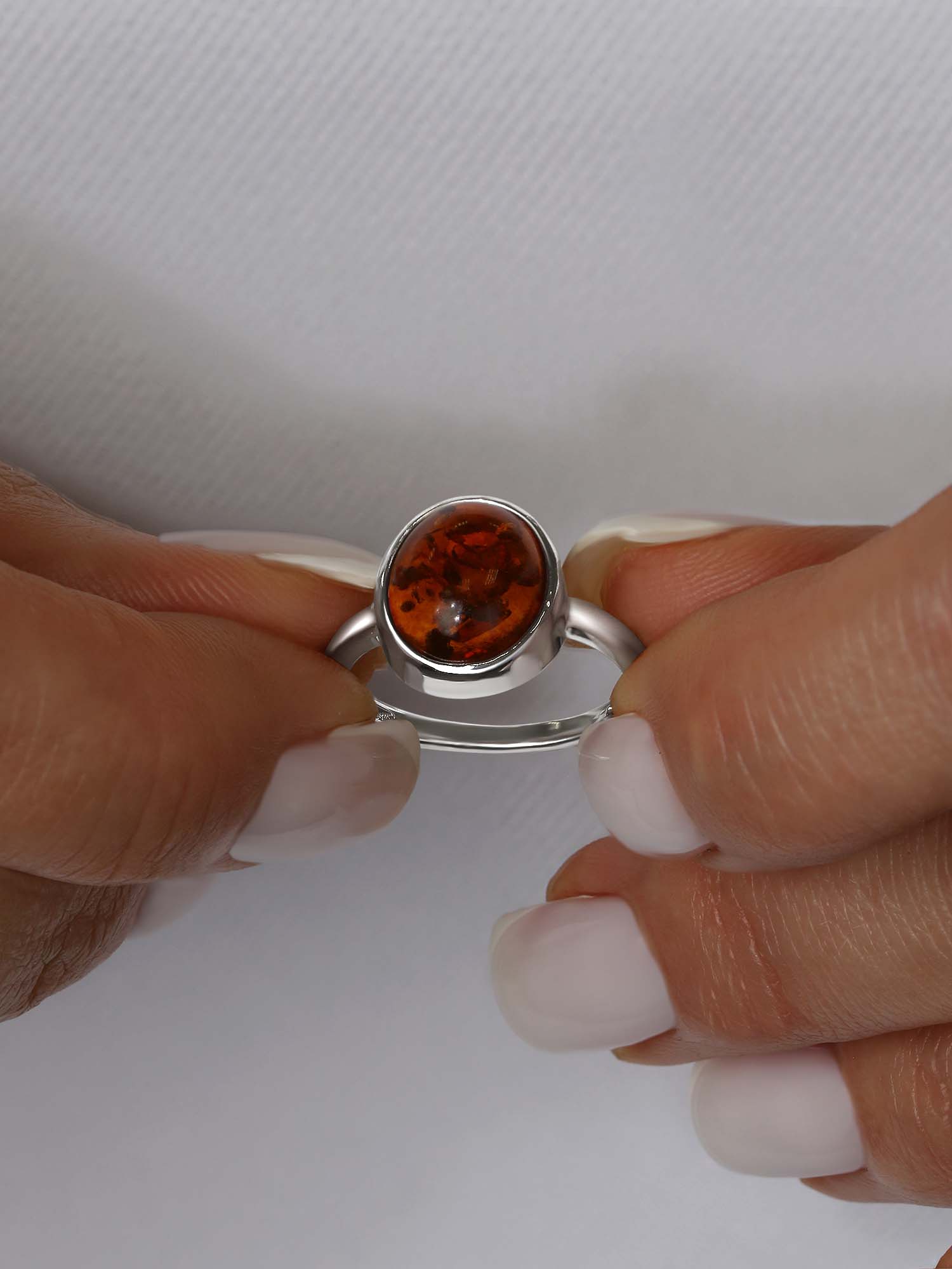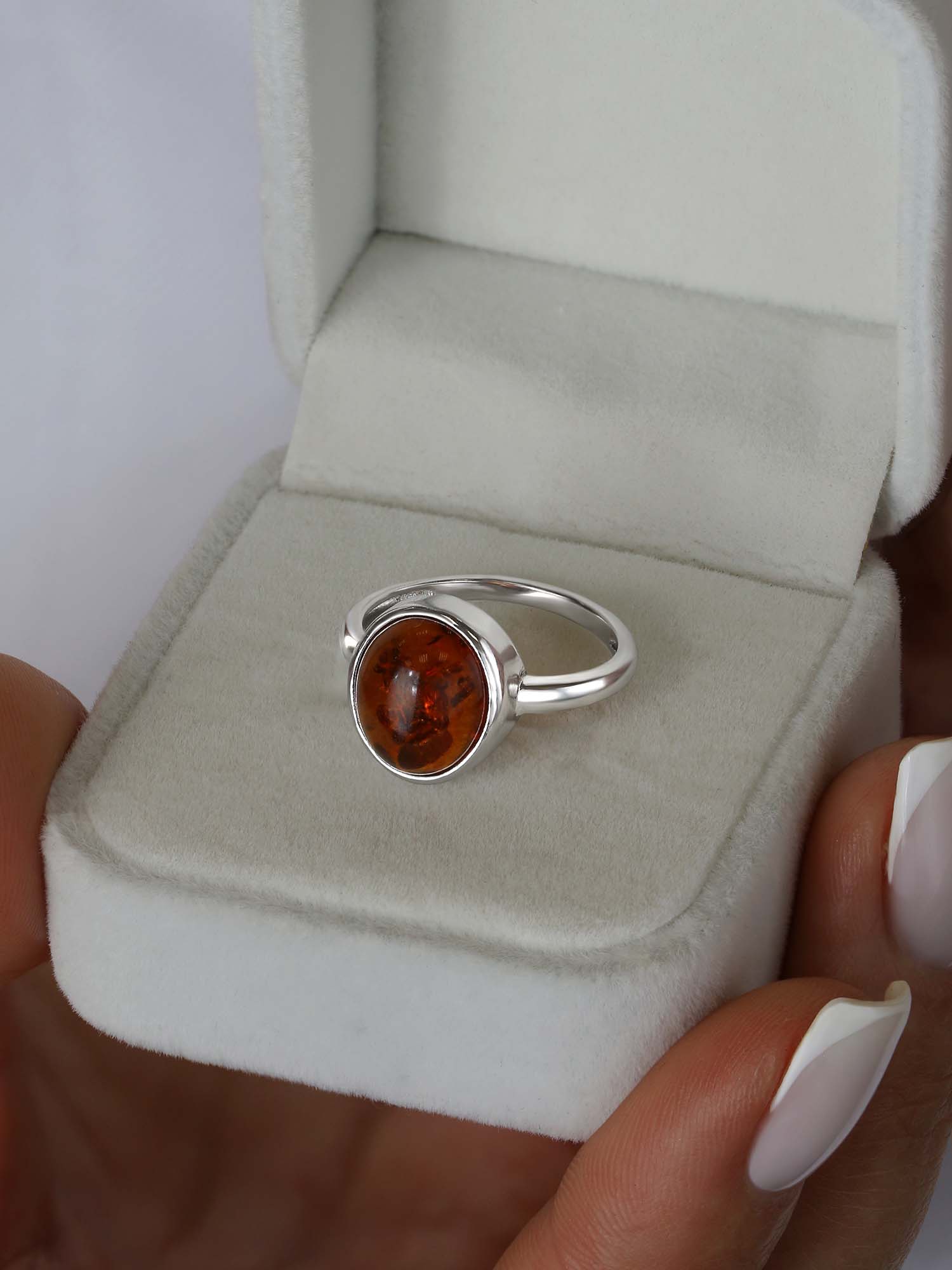 Кольцо из серебра с натуральным янтарём родированное 925 пробы 1-422р440
