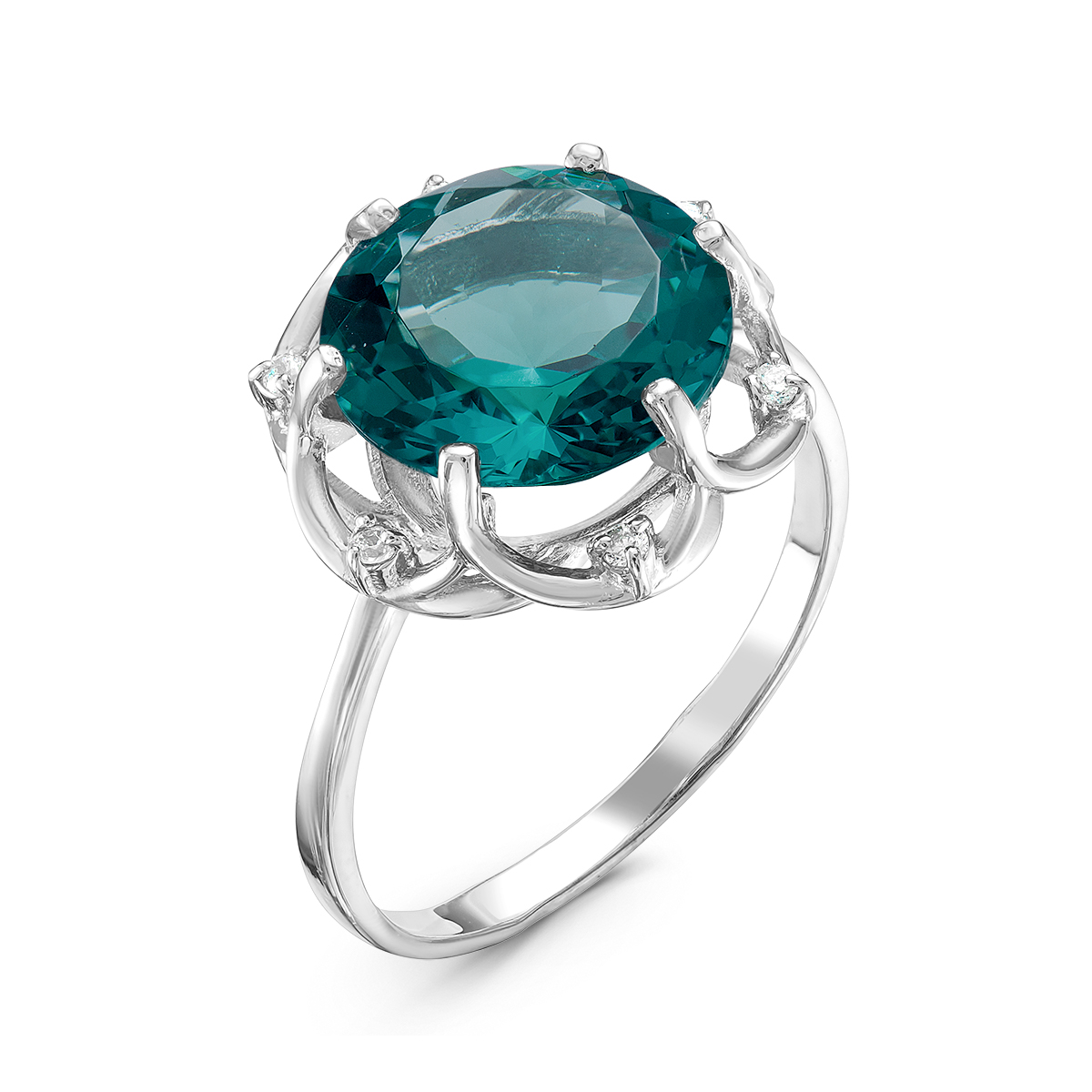 Кольцо из серебра с пл.кварцем цв.лондон топаз и фианитами родированное