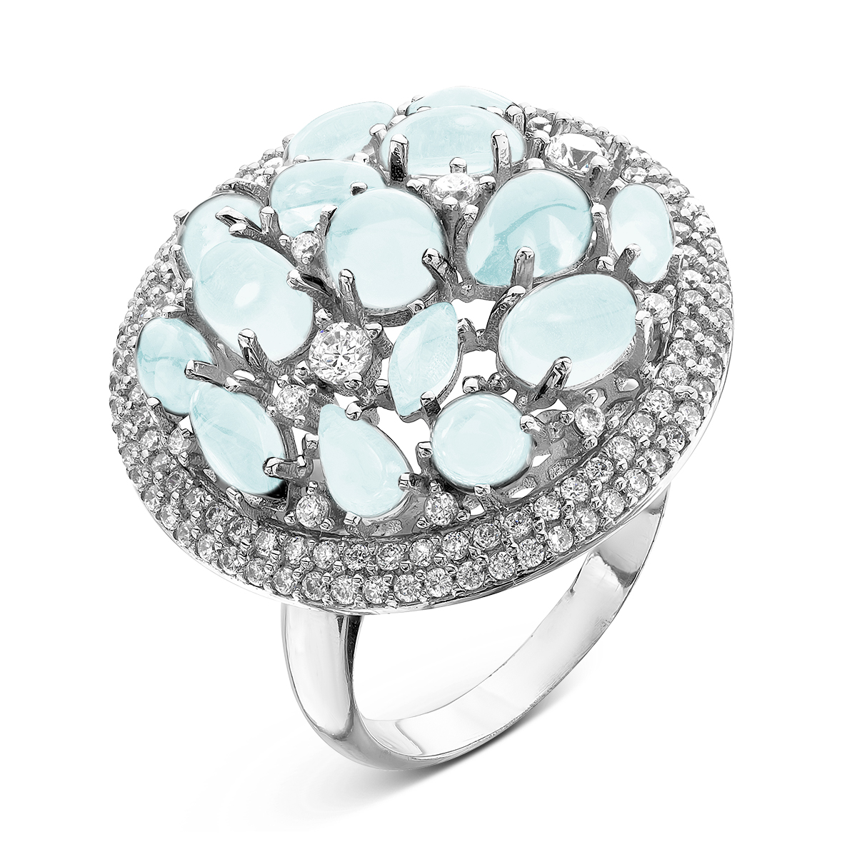 Кольцо из серебра с пл.кварцем цв.топаз и фианитами родированное