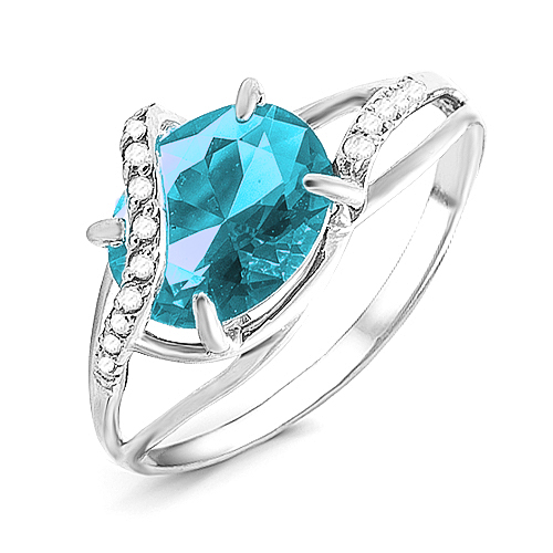 Кольцо из серебра с пл.кварцем цв.топаз и фианитами родированное