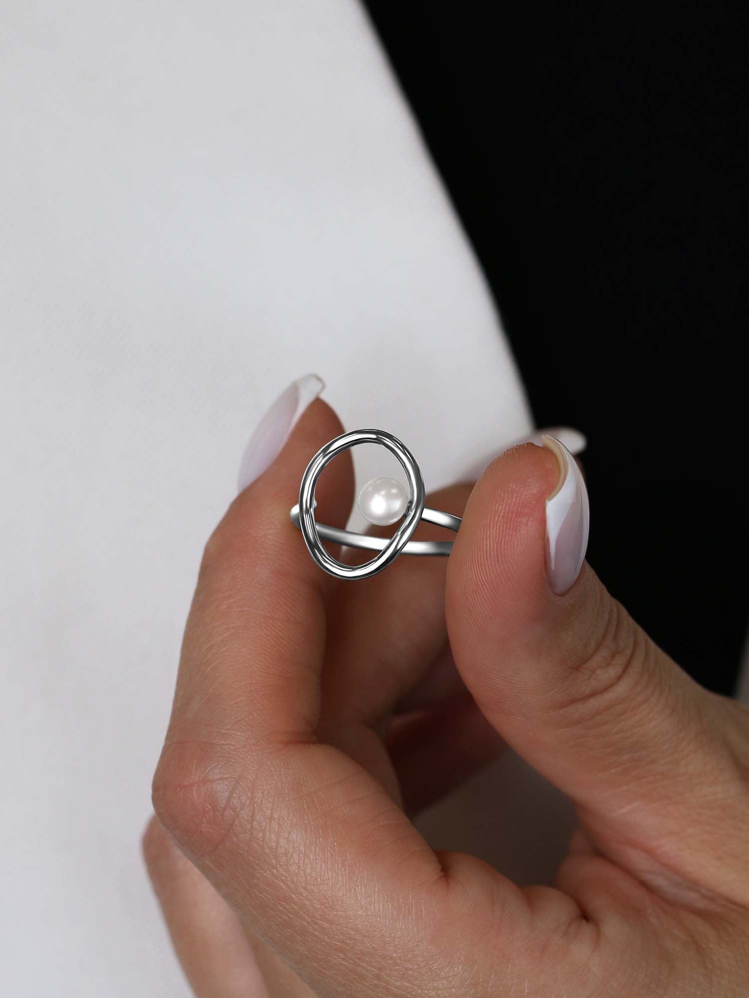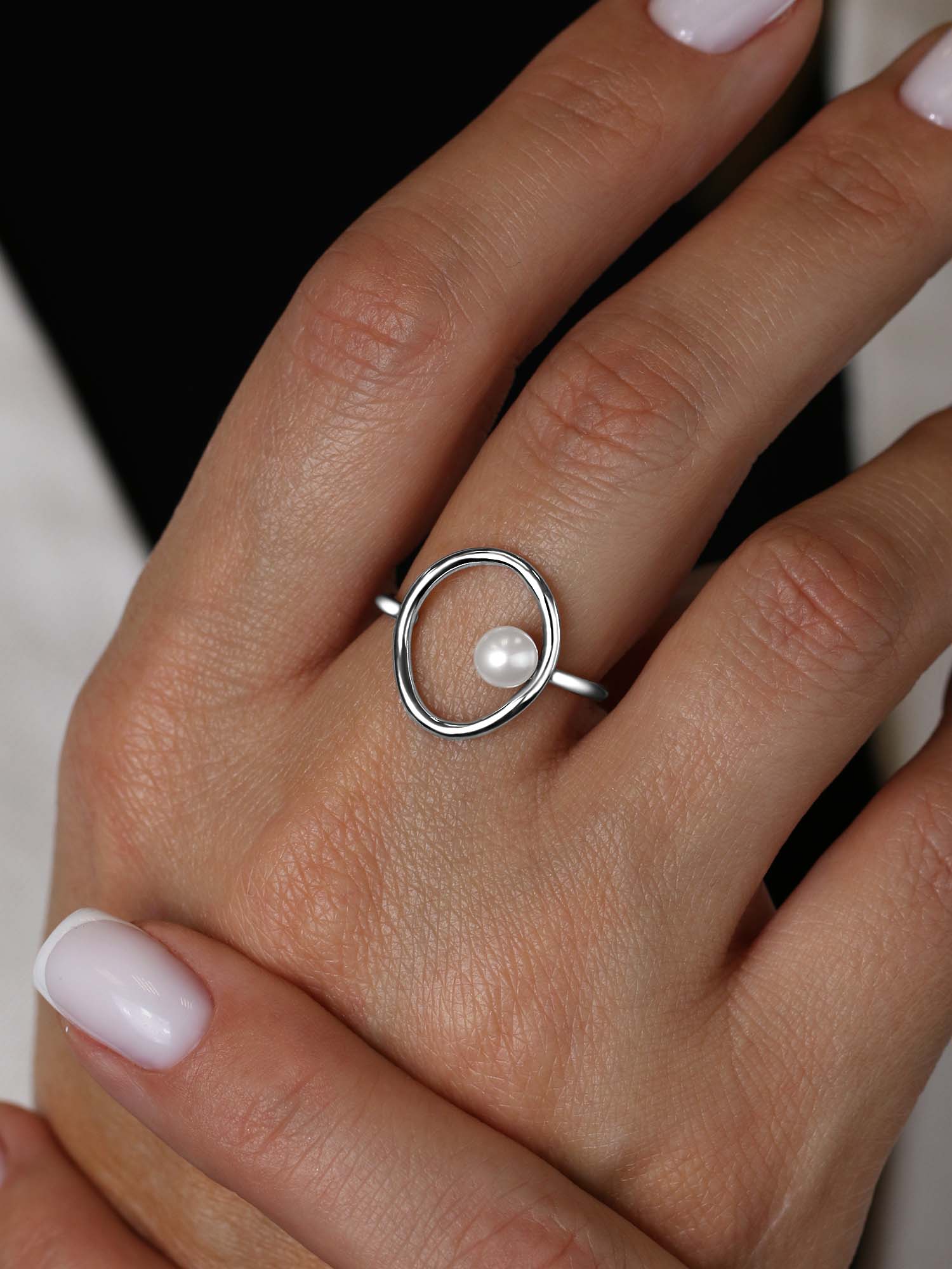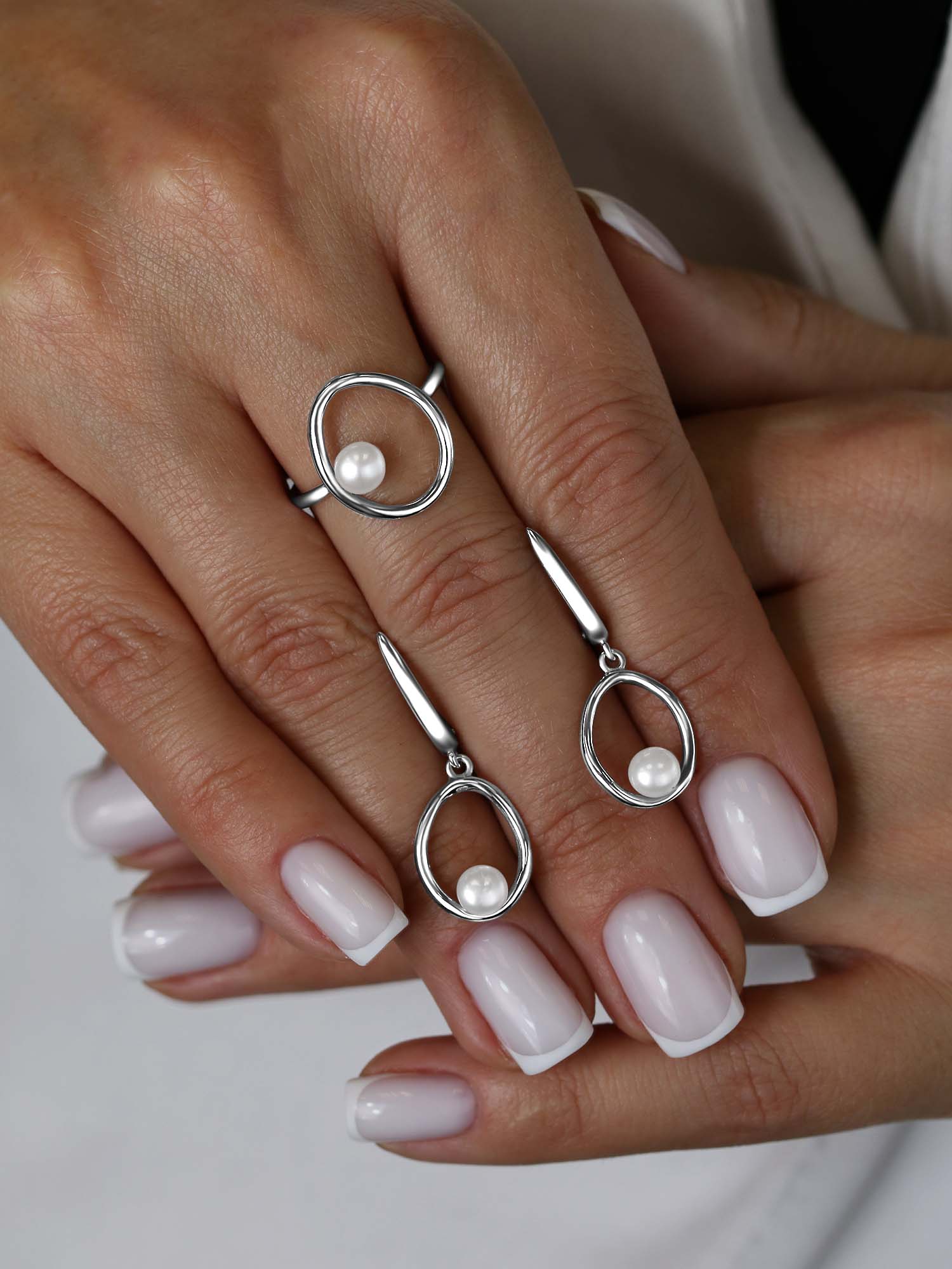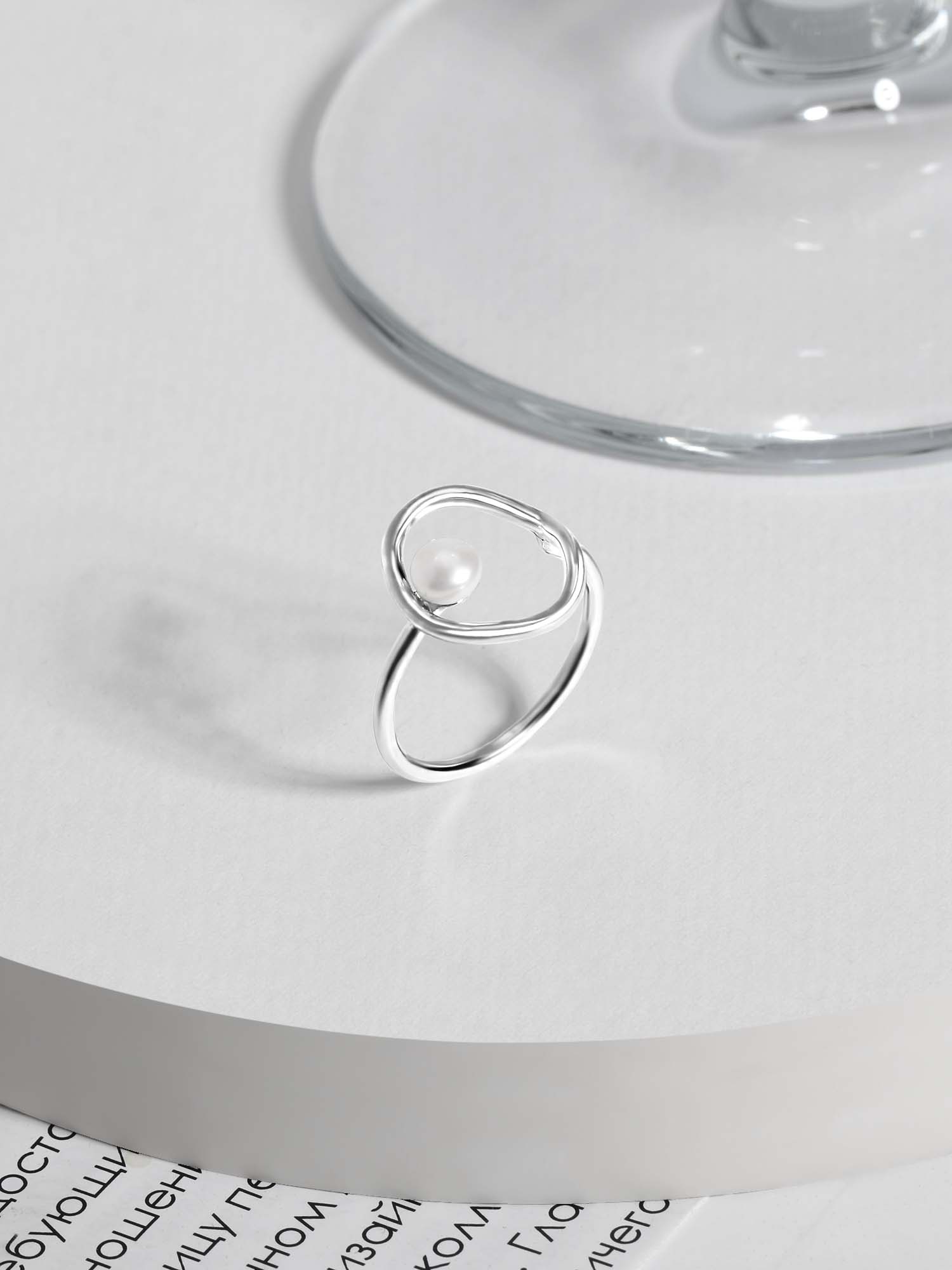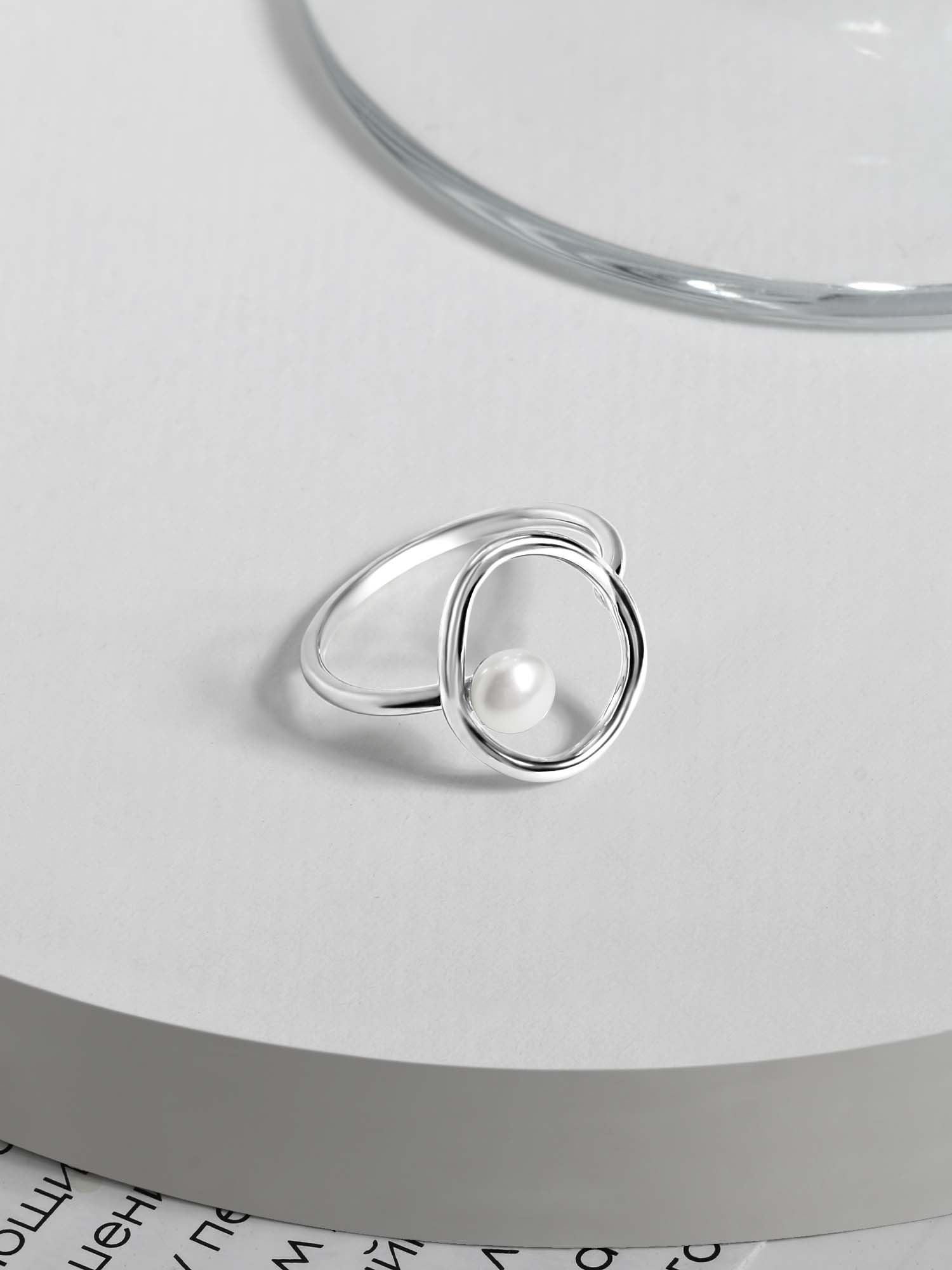 Кольцо из серебра с пресноводным культивированным жемчугом родированное