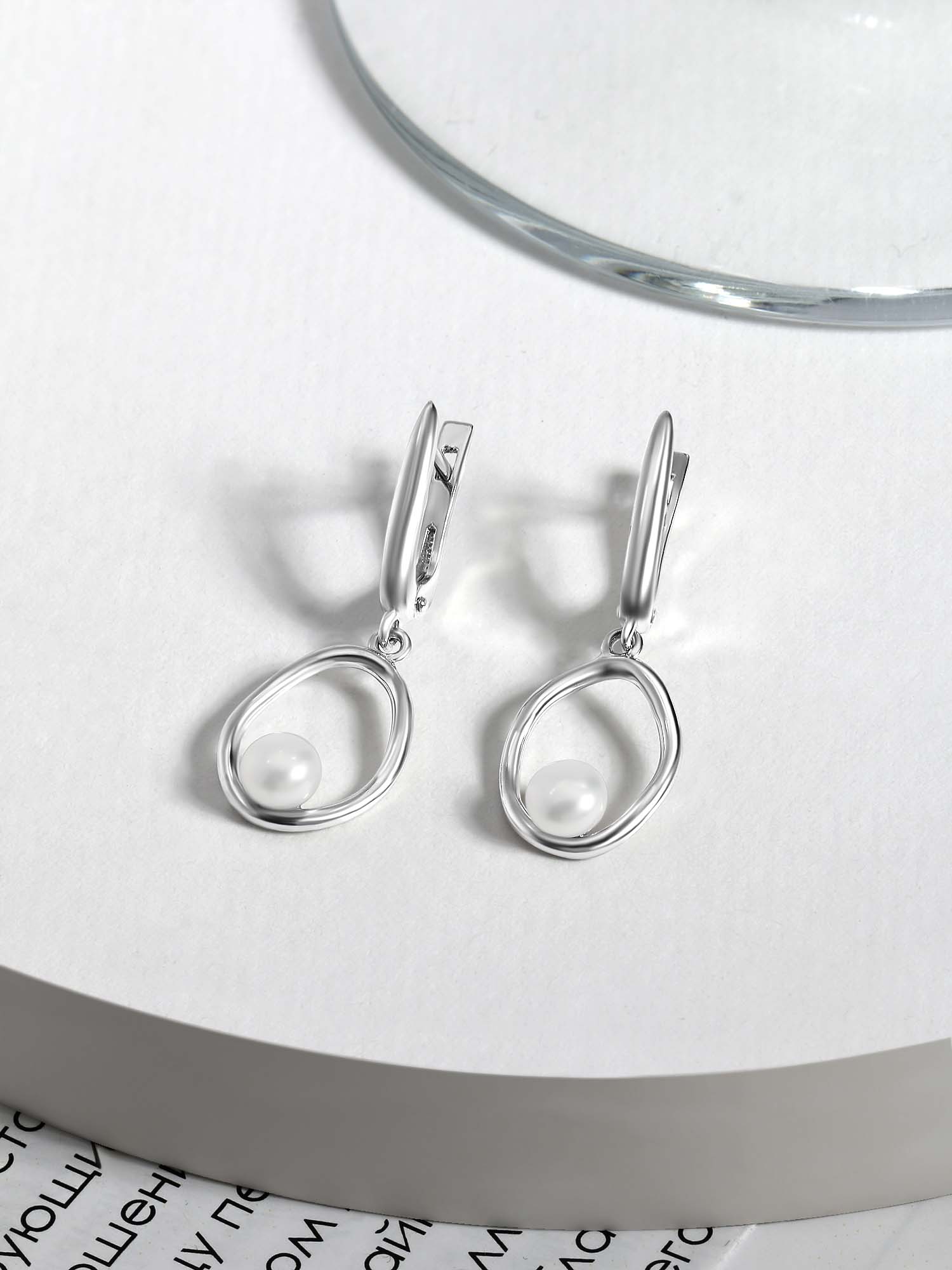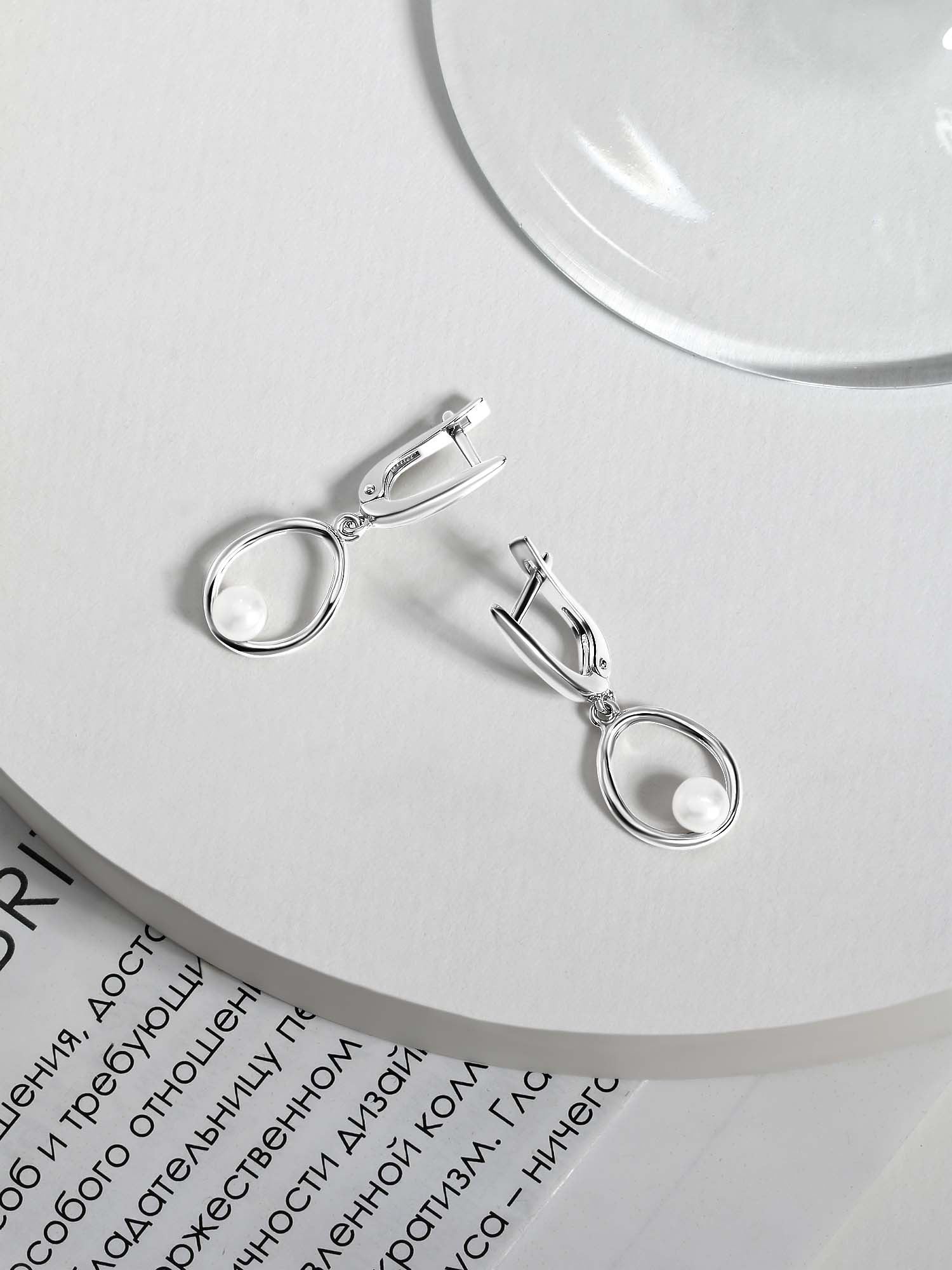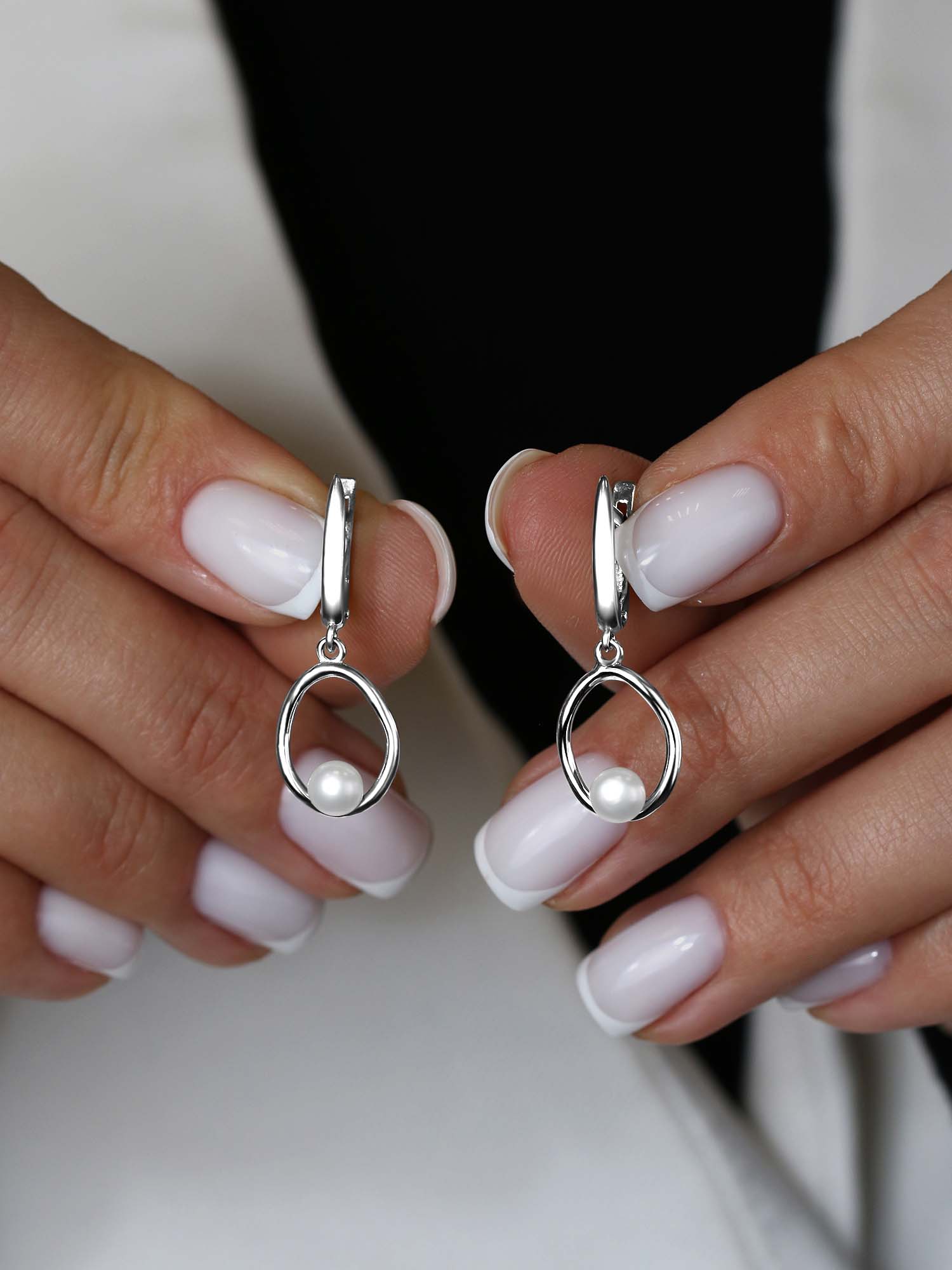 Серьги из серебра с пресноводным культивированным жемчугом родированные