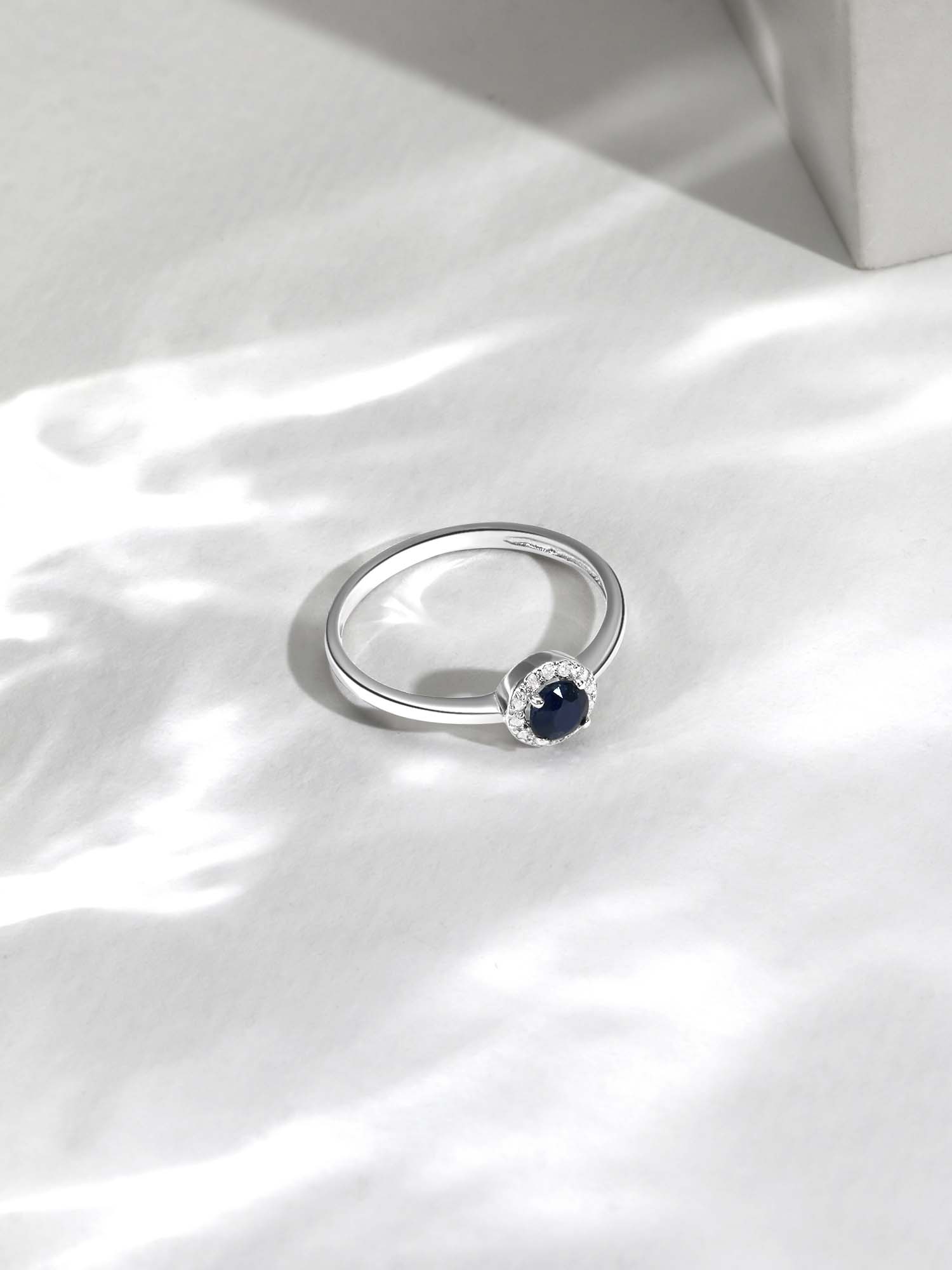 Кольцо из серебра с сапфиром и фианитами родированное К-038р
