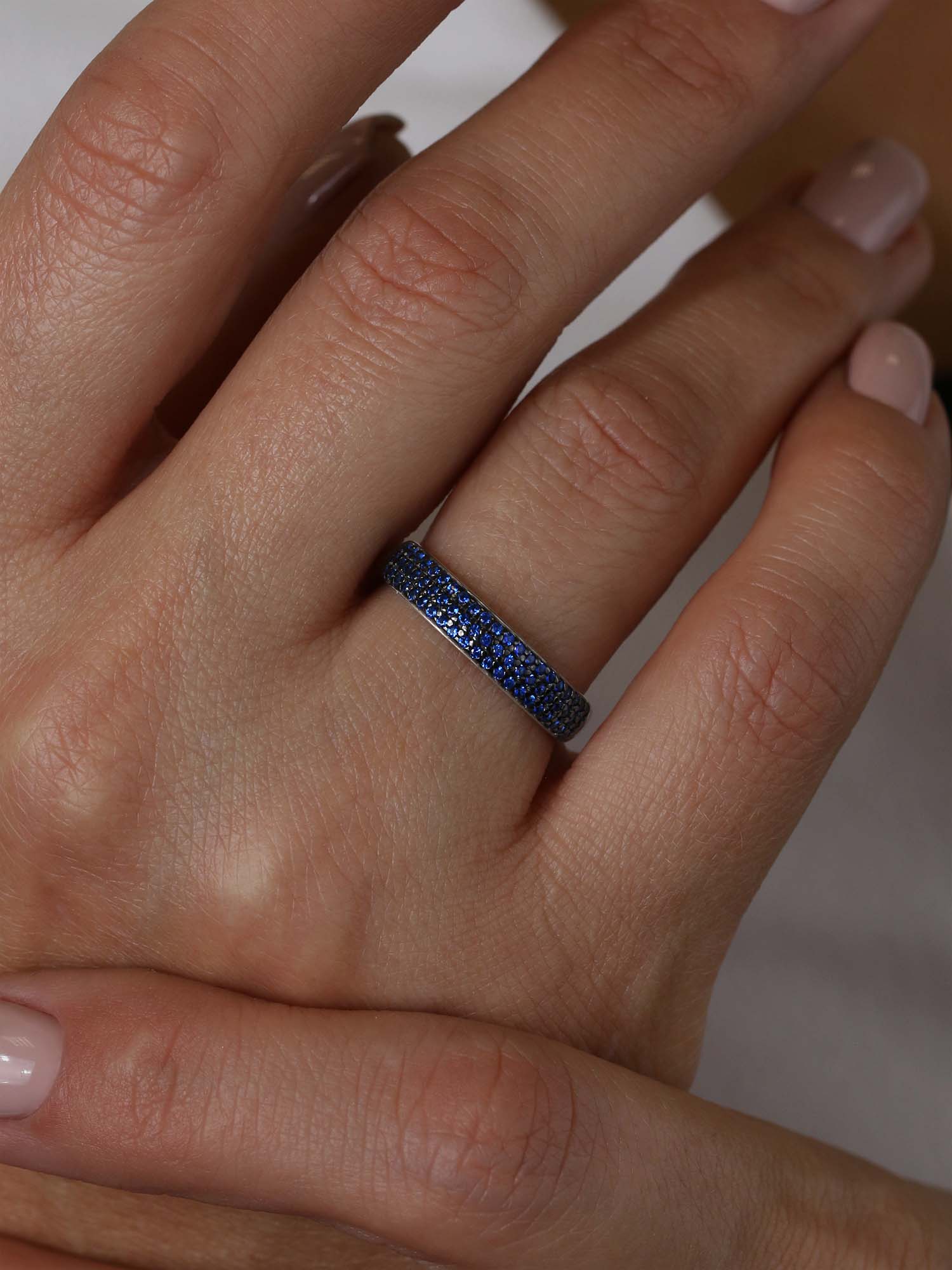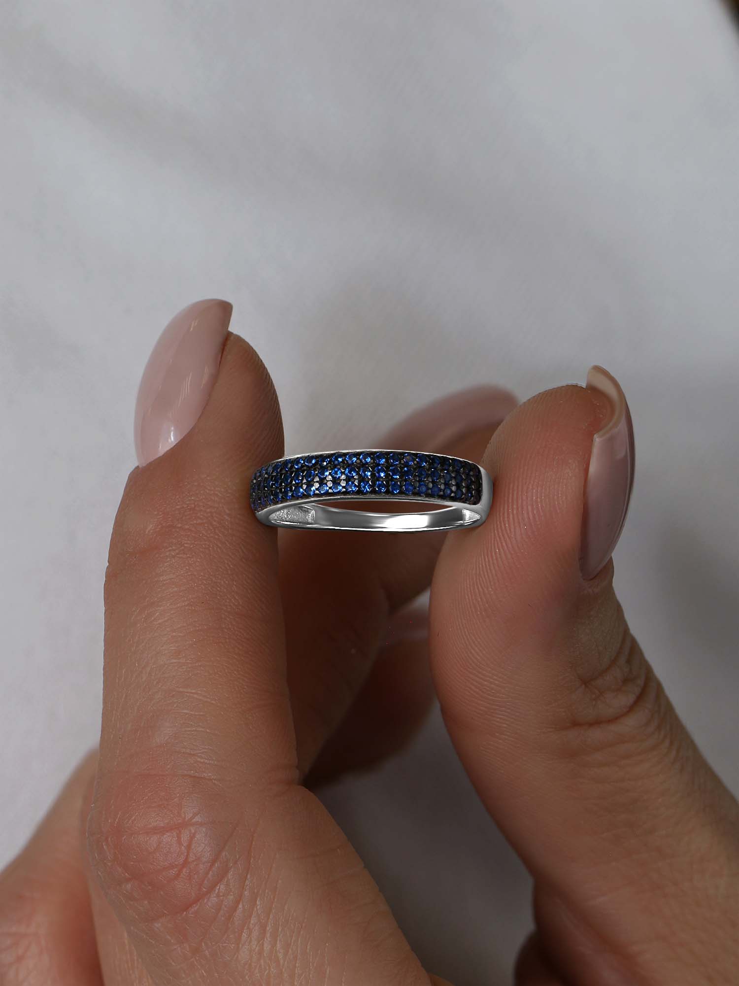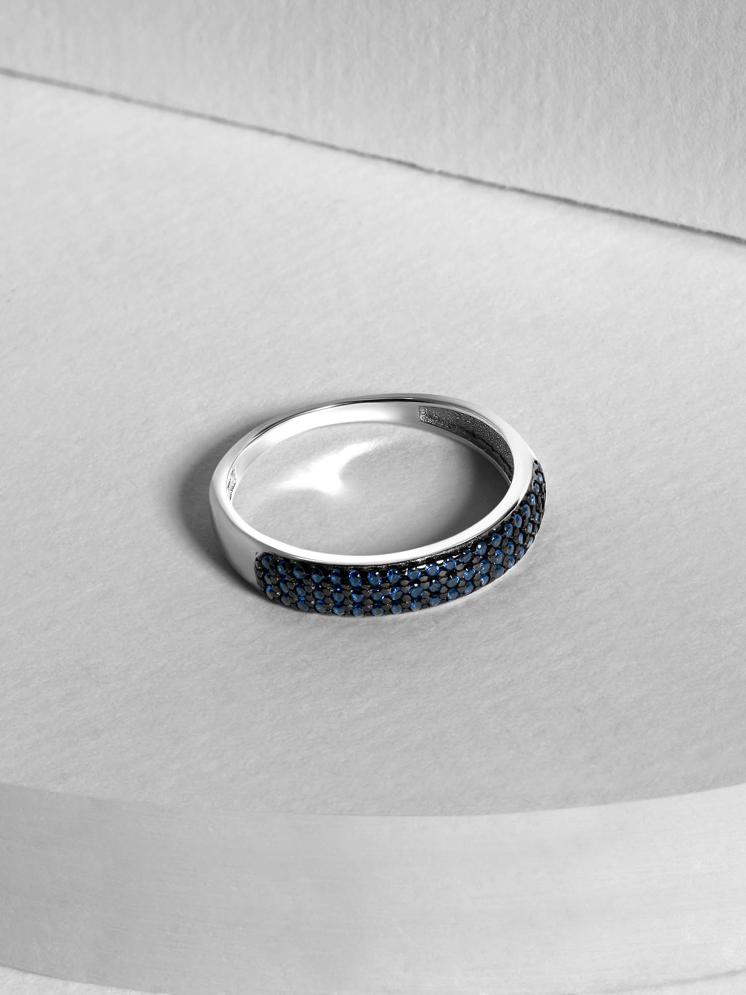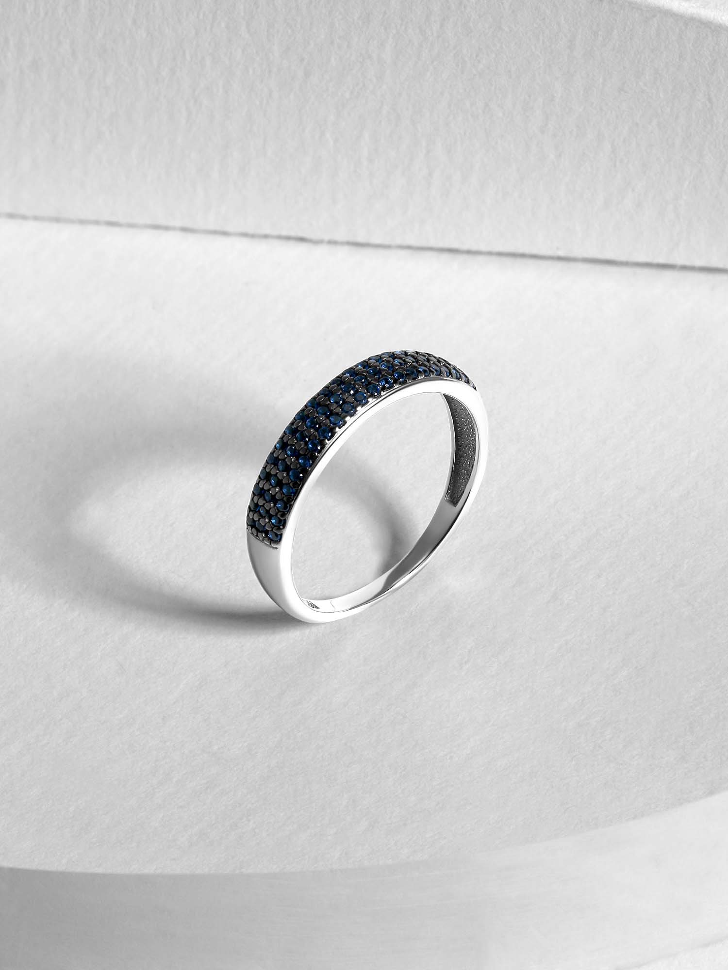 Кольцо из серебра с синей ноношпинелью родированное 925 пробы к-7190р208