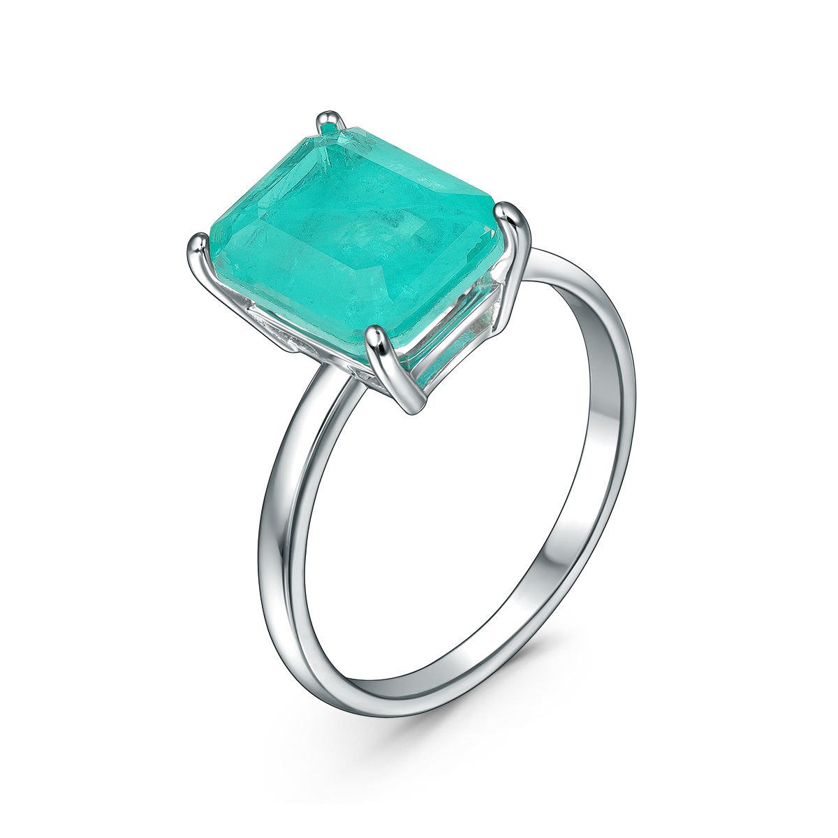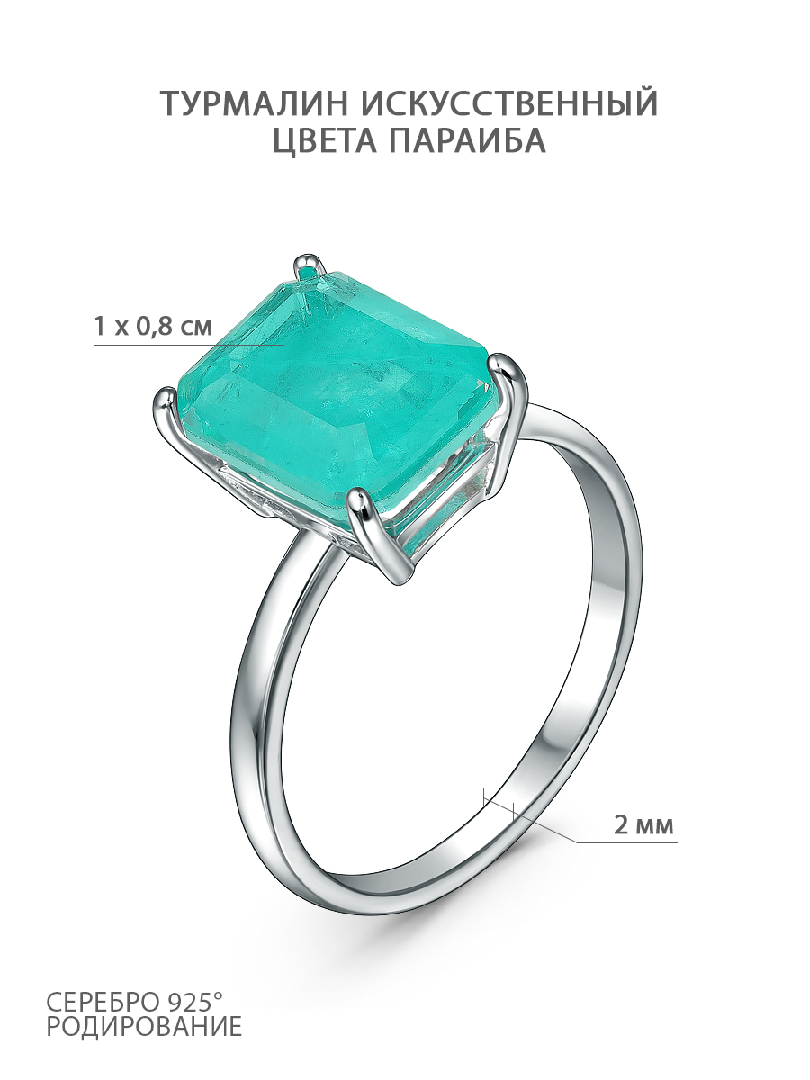 Кольцо из серебра с турмалином искусственным цвета параиба родированное