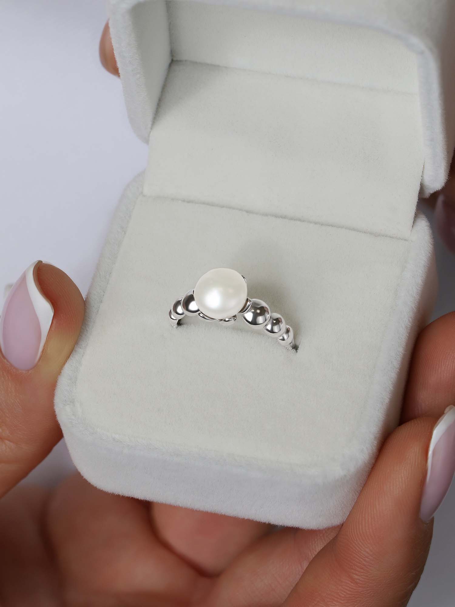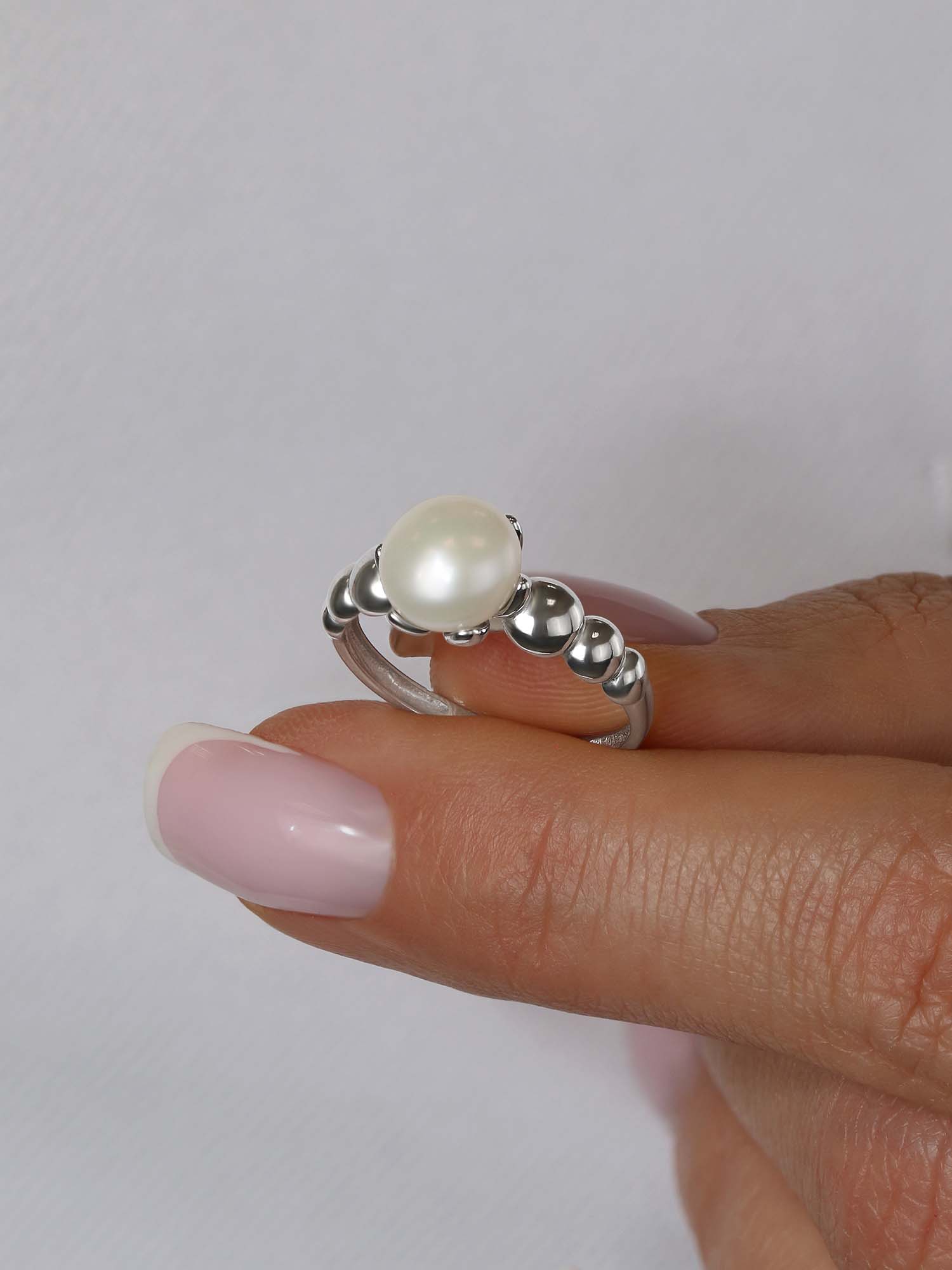 Кольцо из серебра с жемчугом родированное