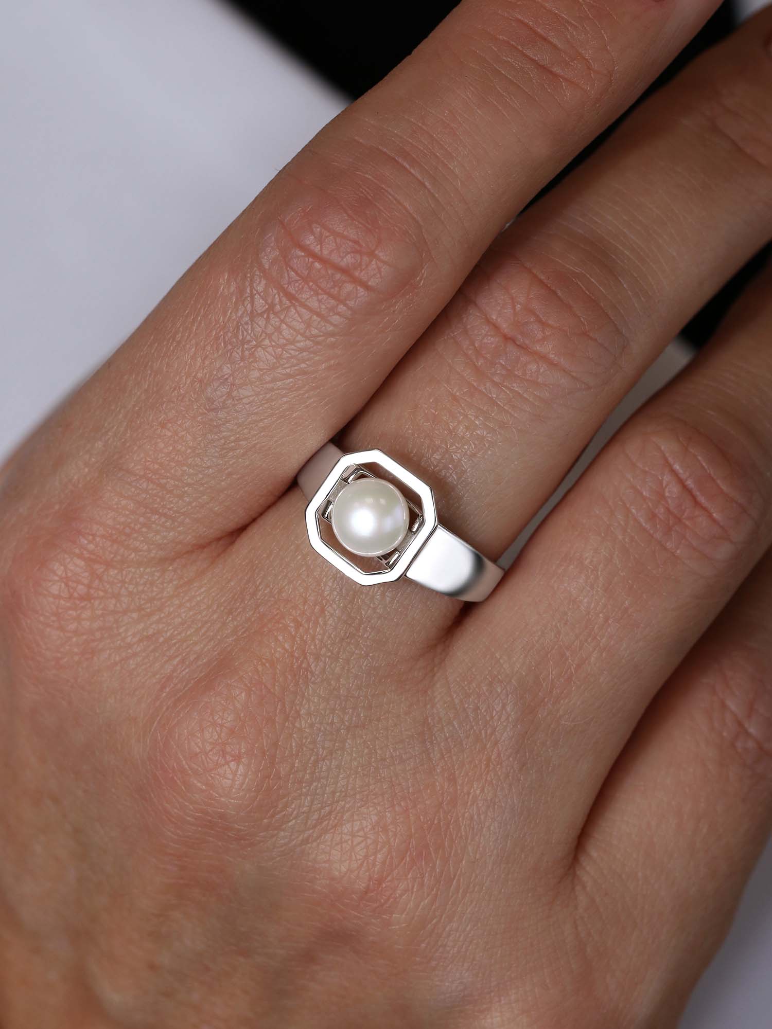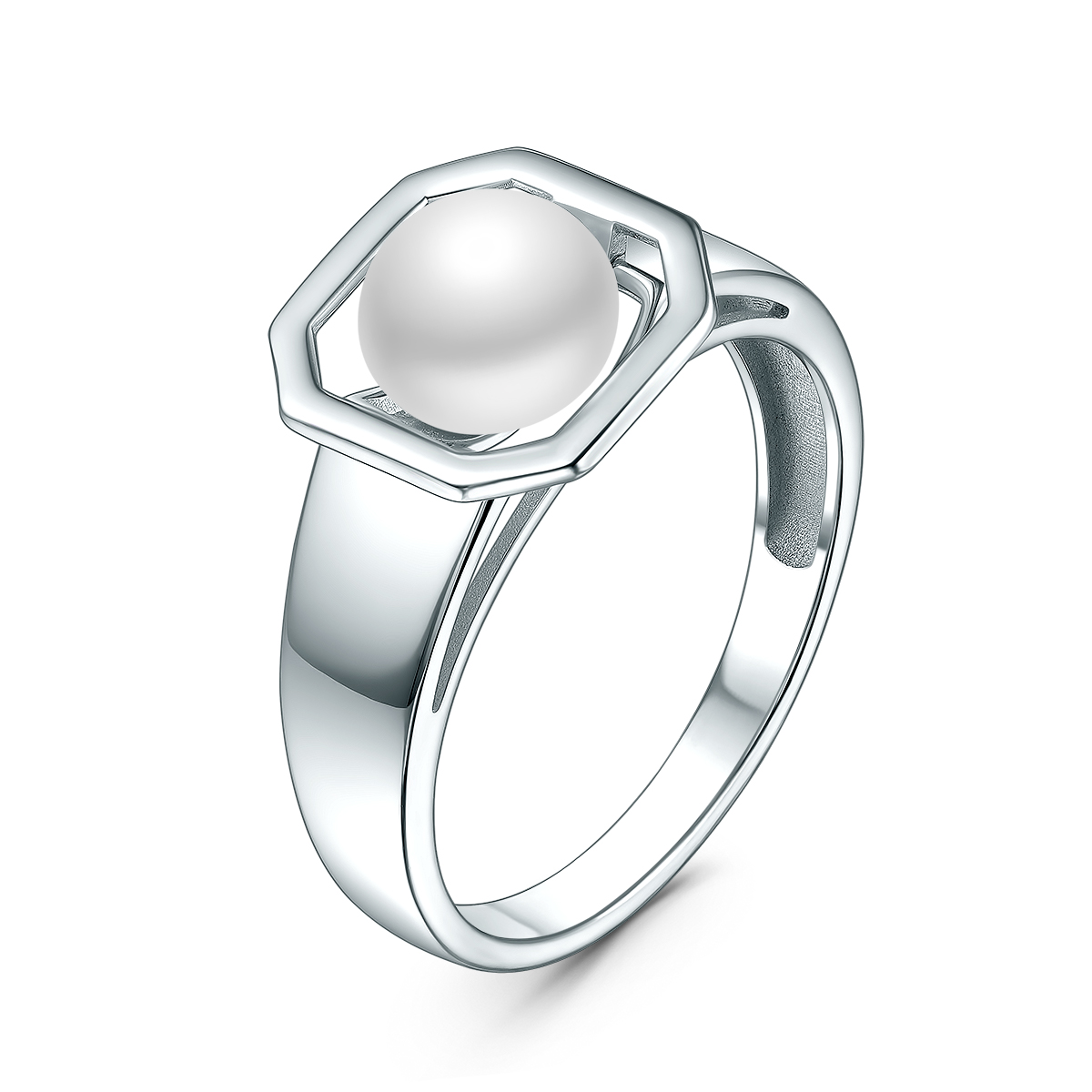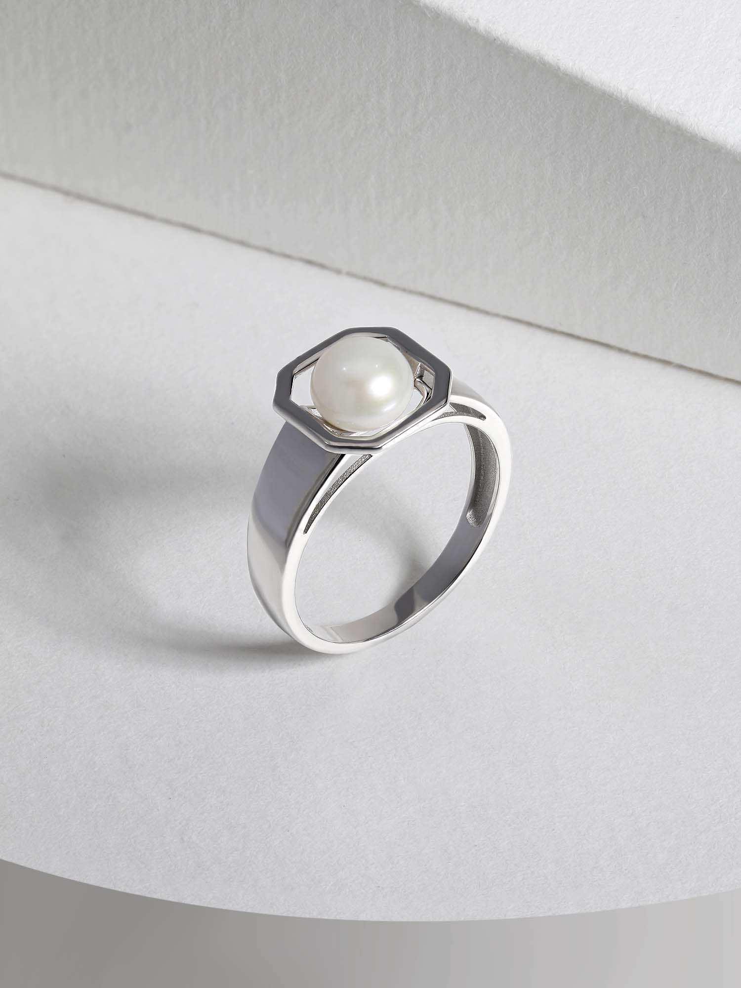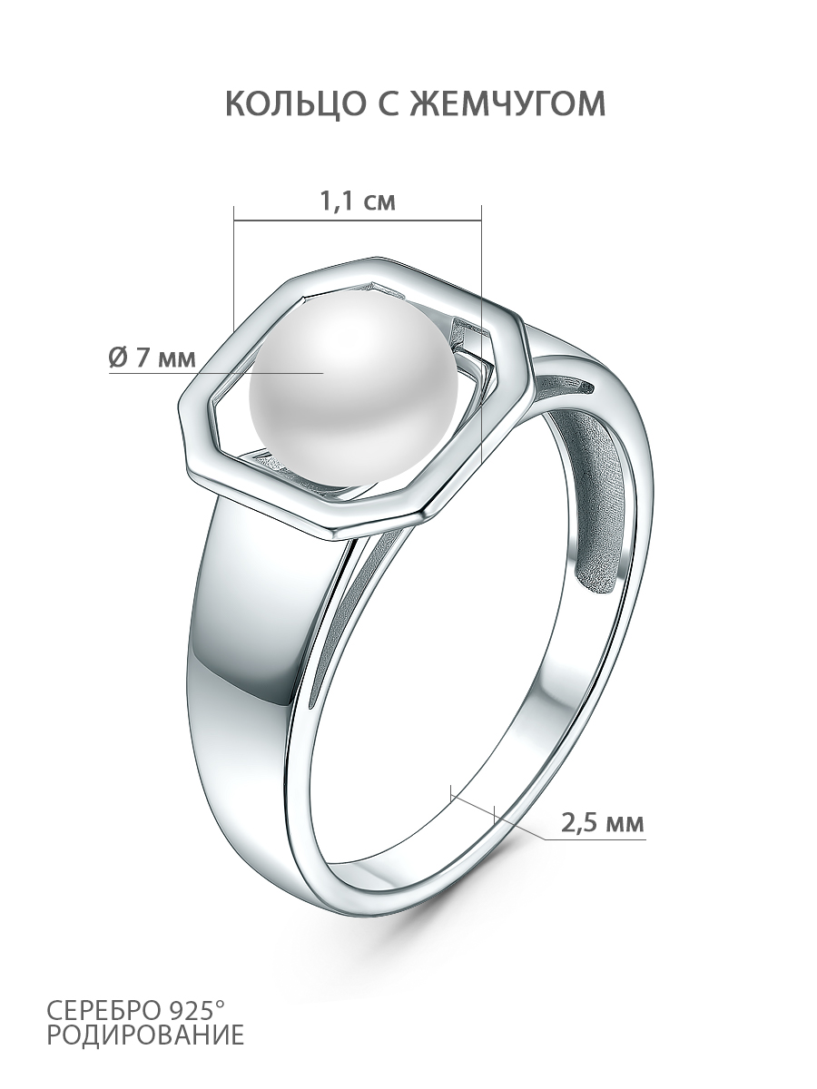 Кольцо из серебра с жемчугом родированное К14100