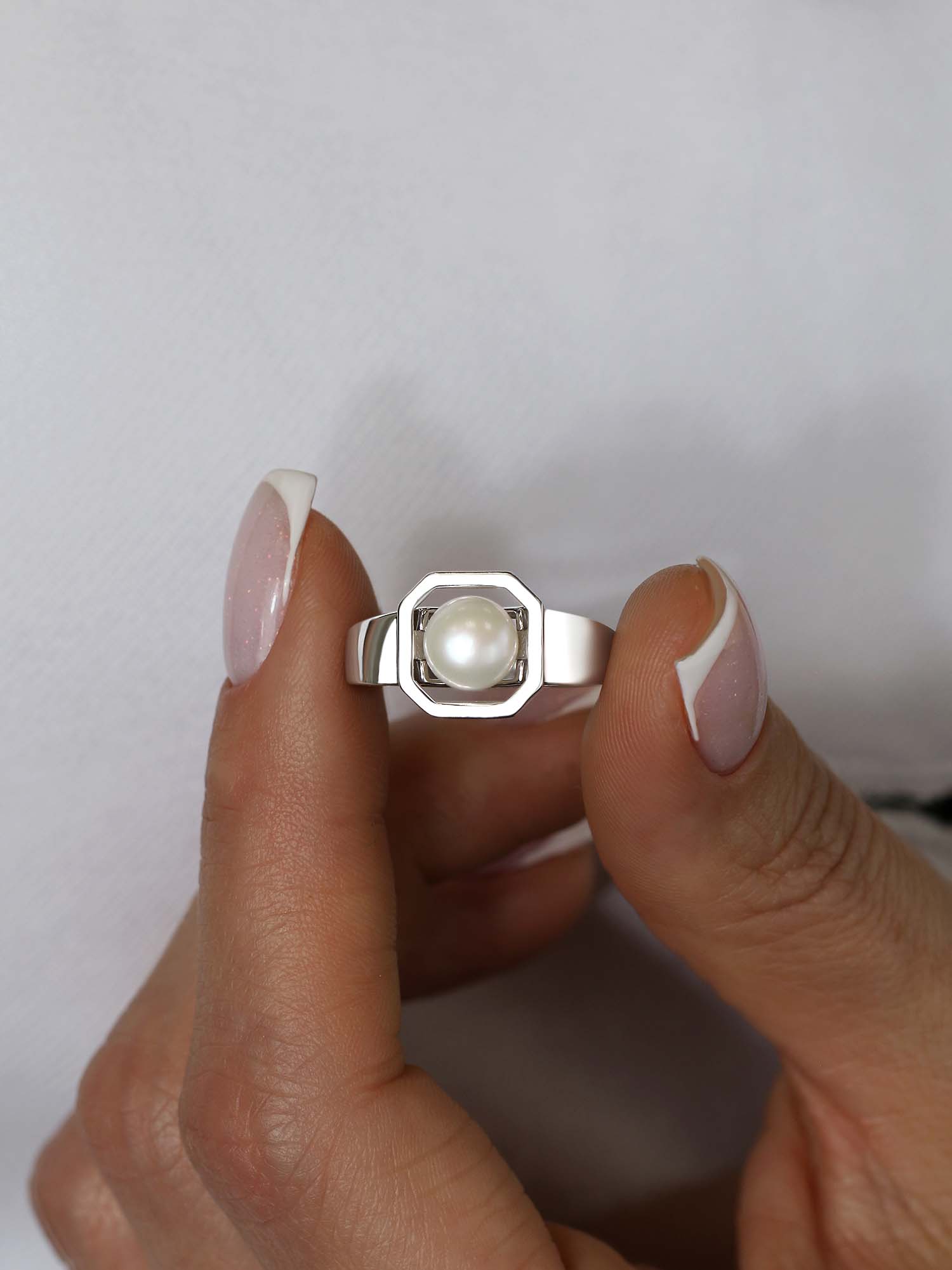 Кольцо из серебра с жемчугом родированное