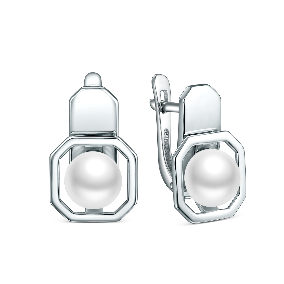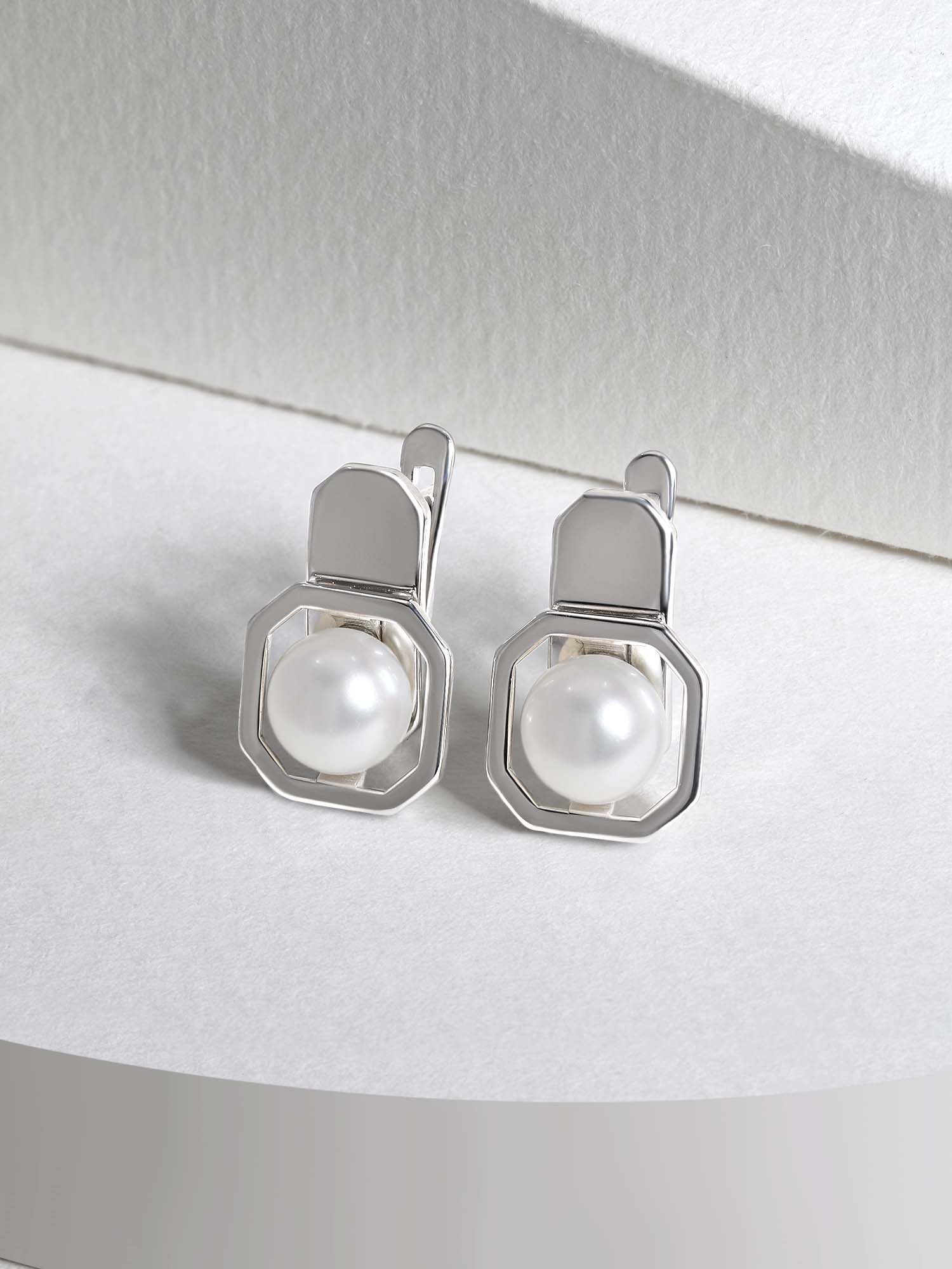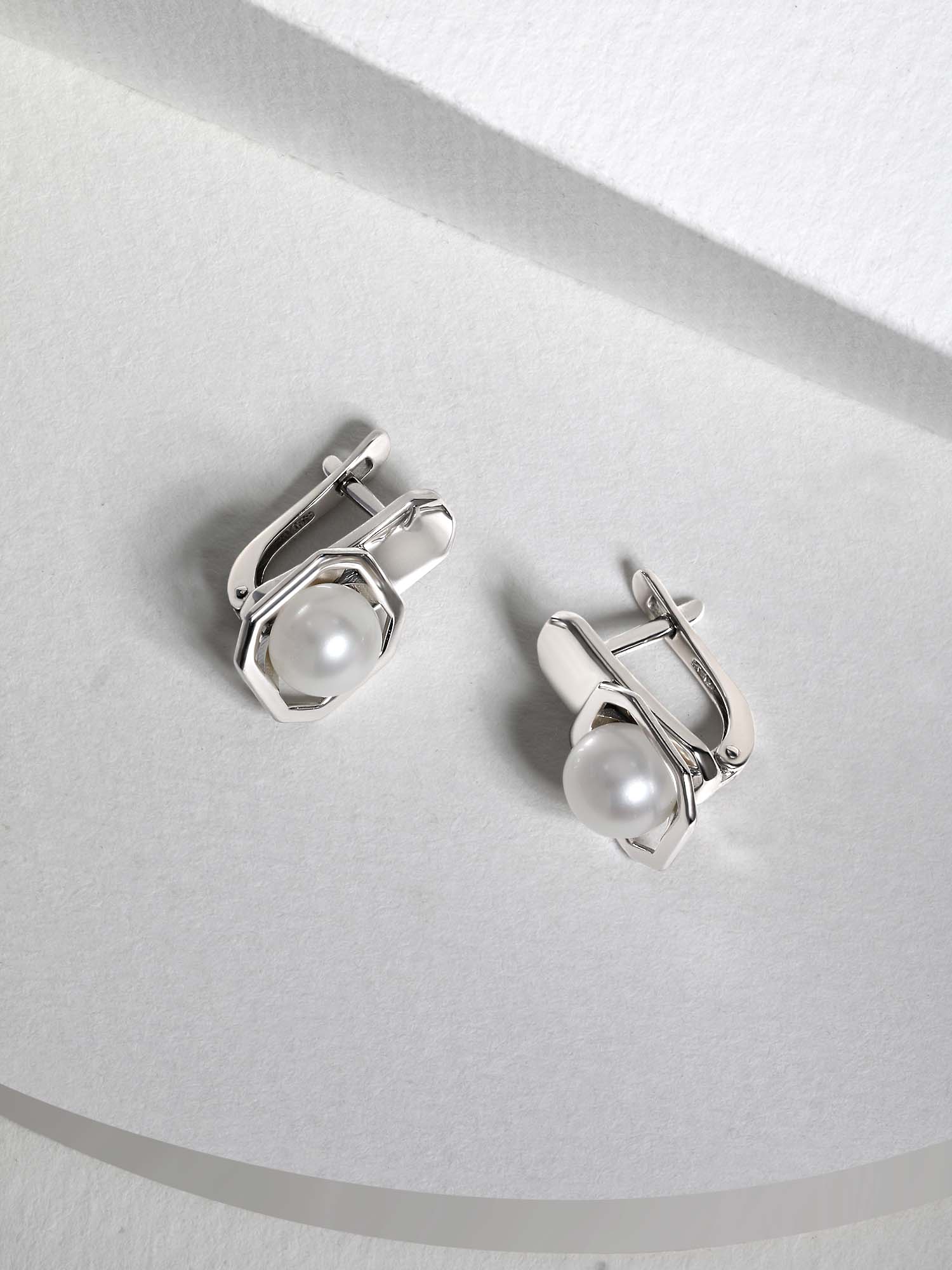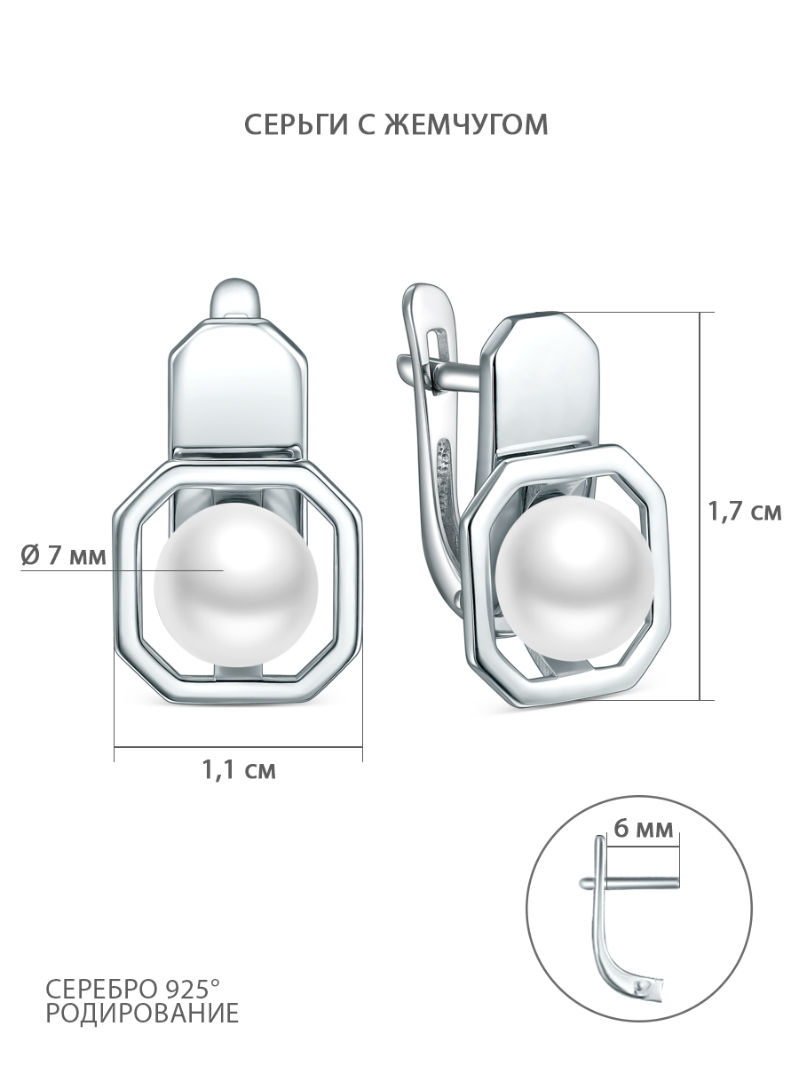 Серьги из серебра с жемчугом родированные