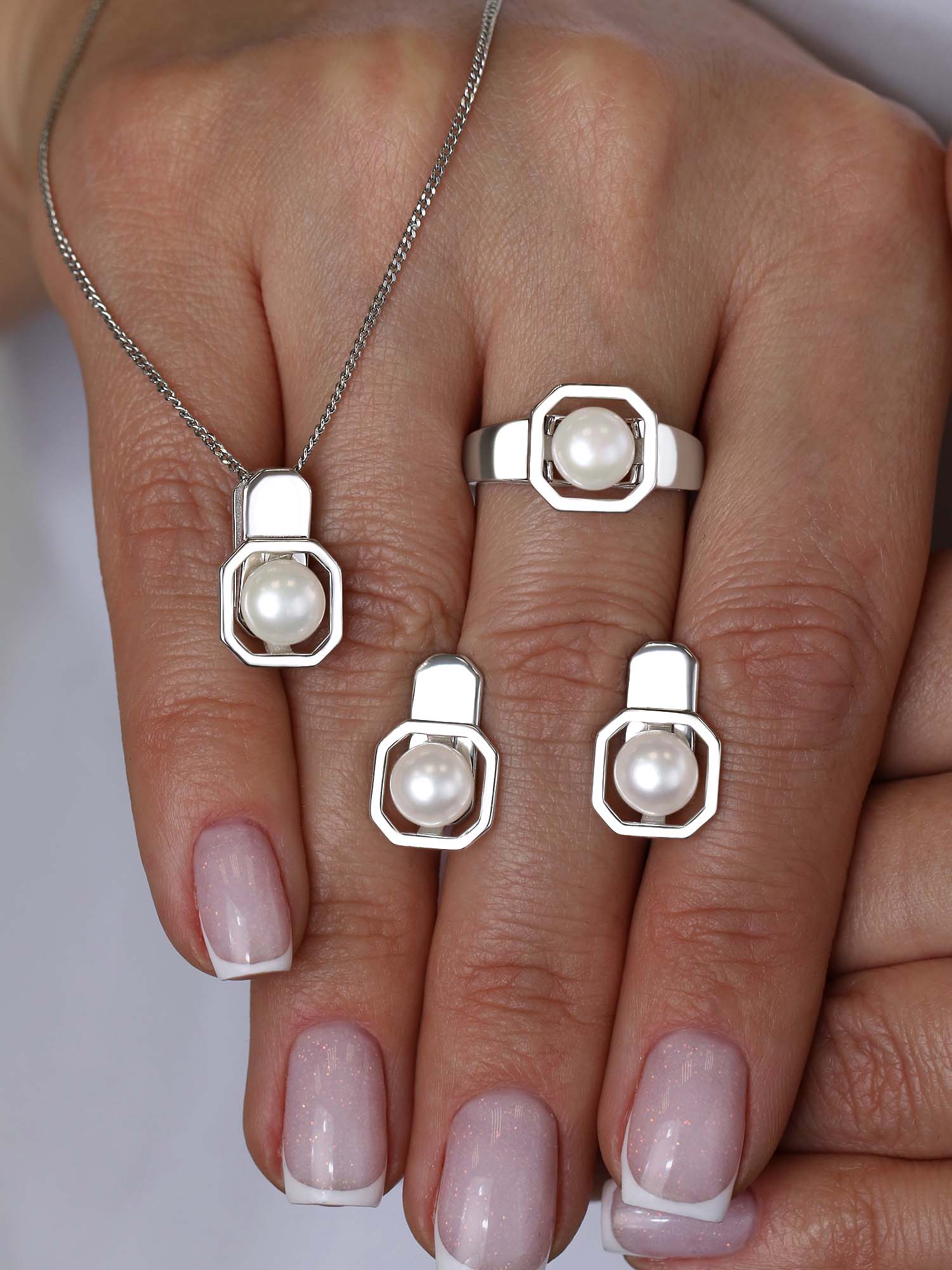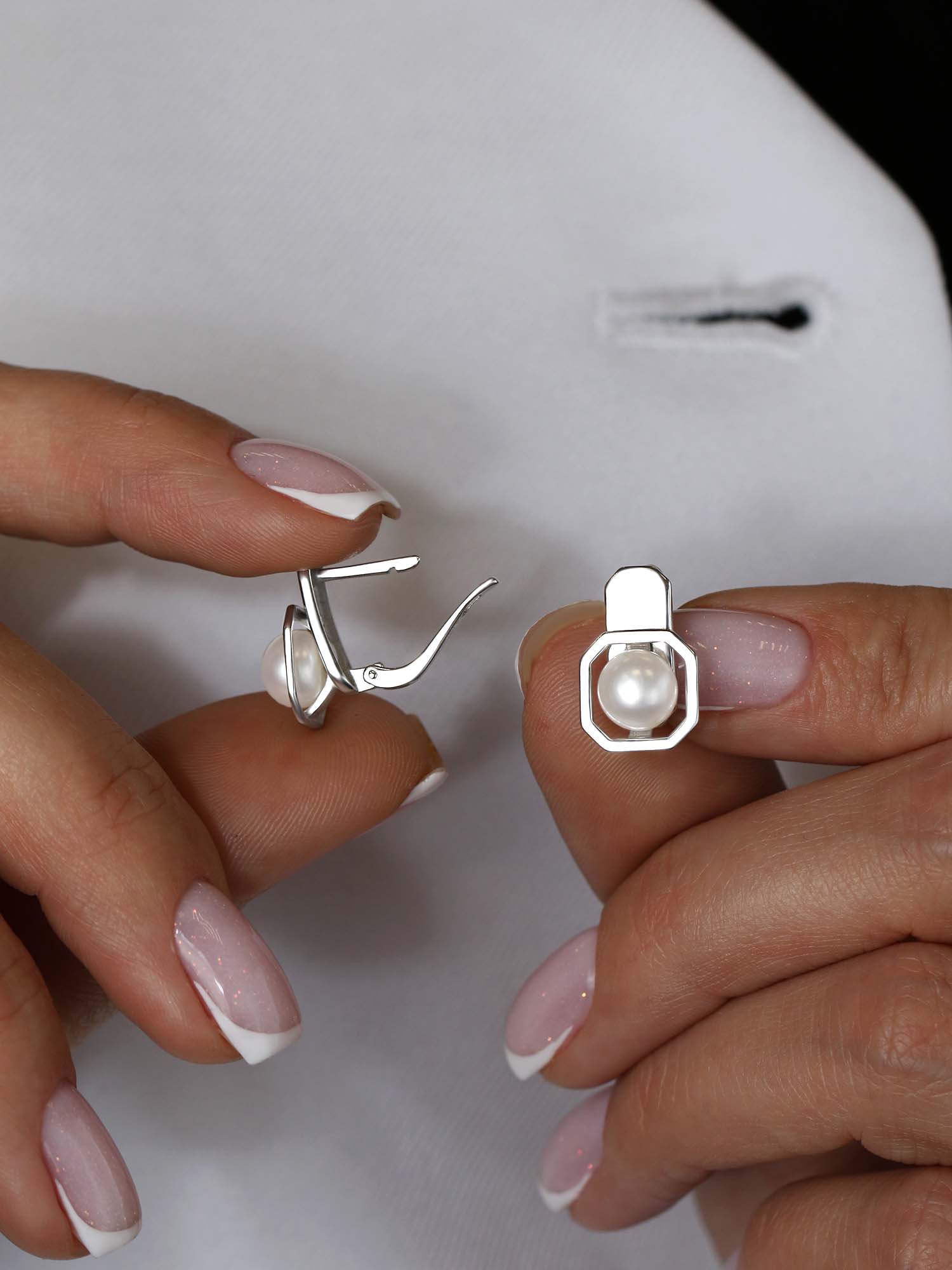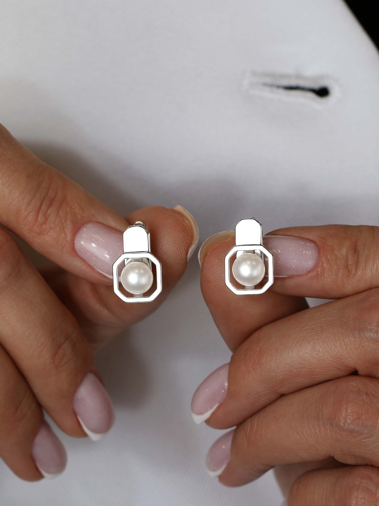 Серьги из серебра с жемчугом родированные