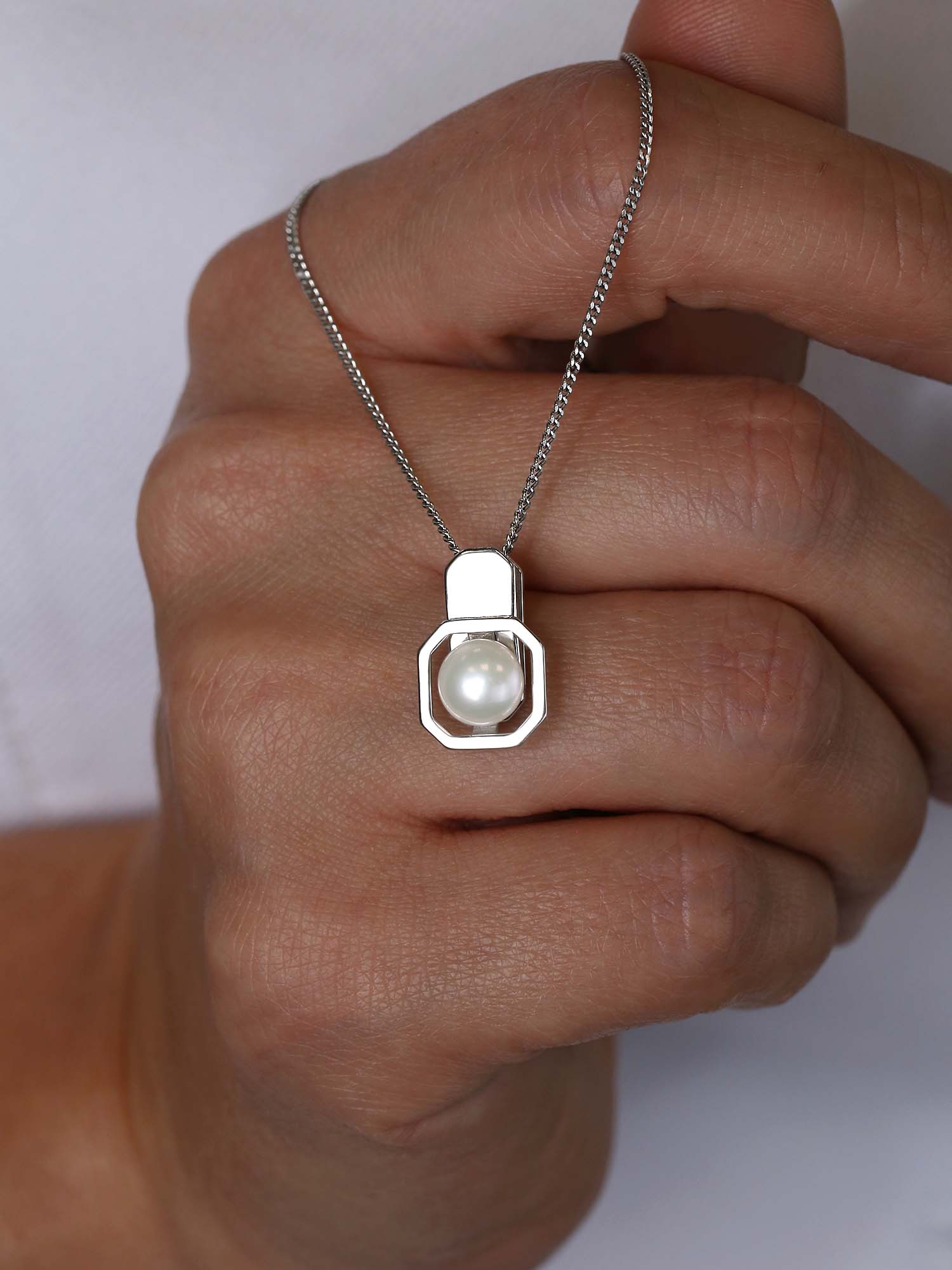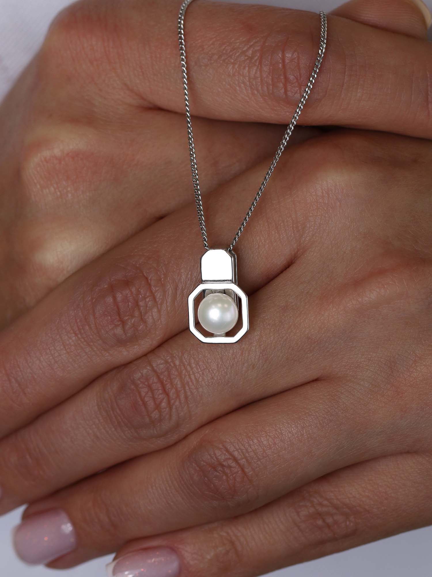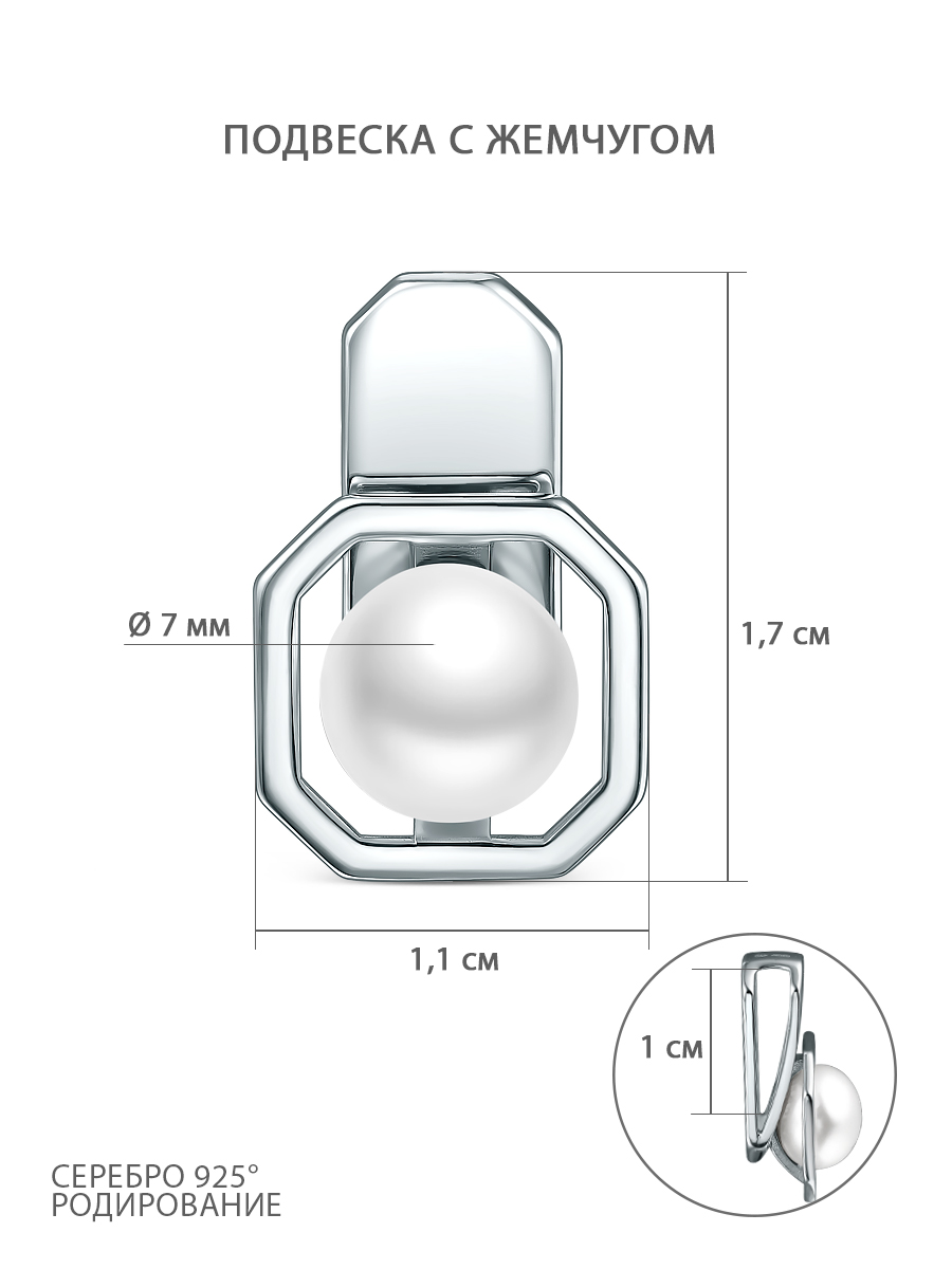 Подвеска из серебра с жемчугом родированная